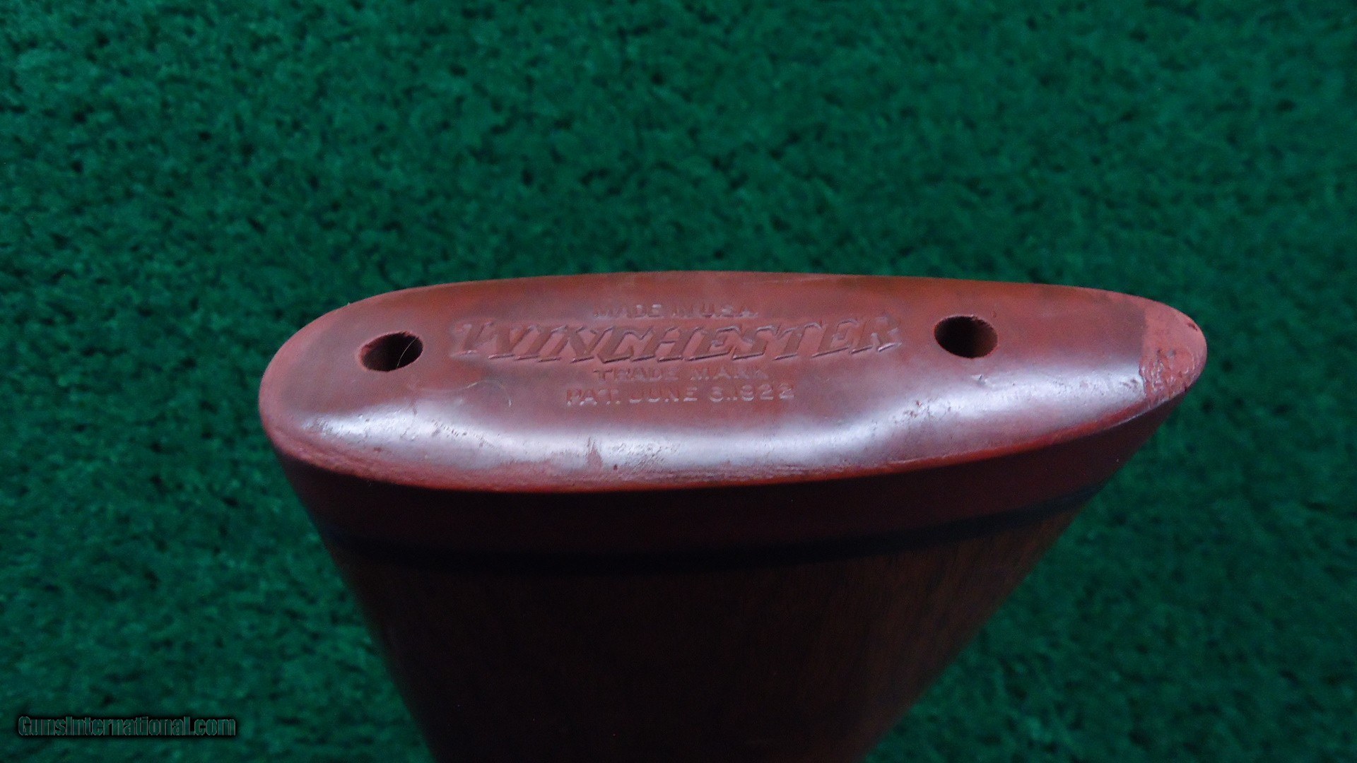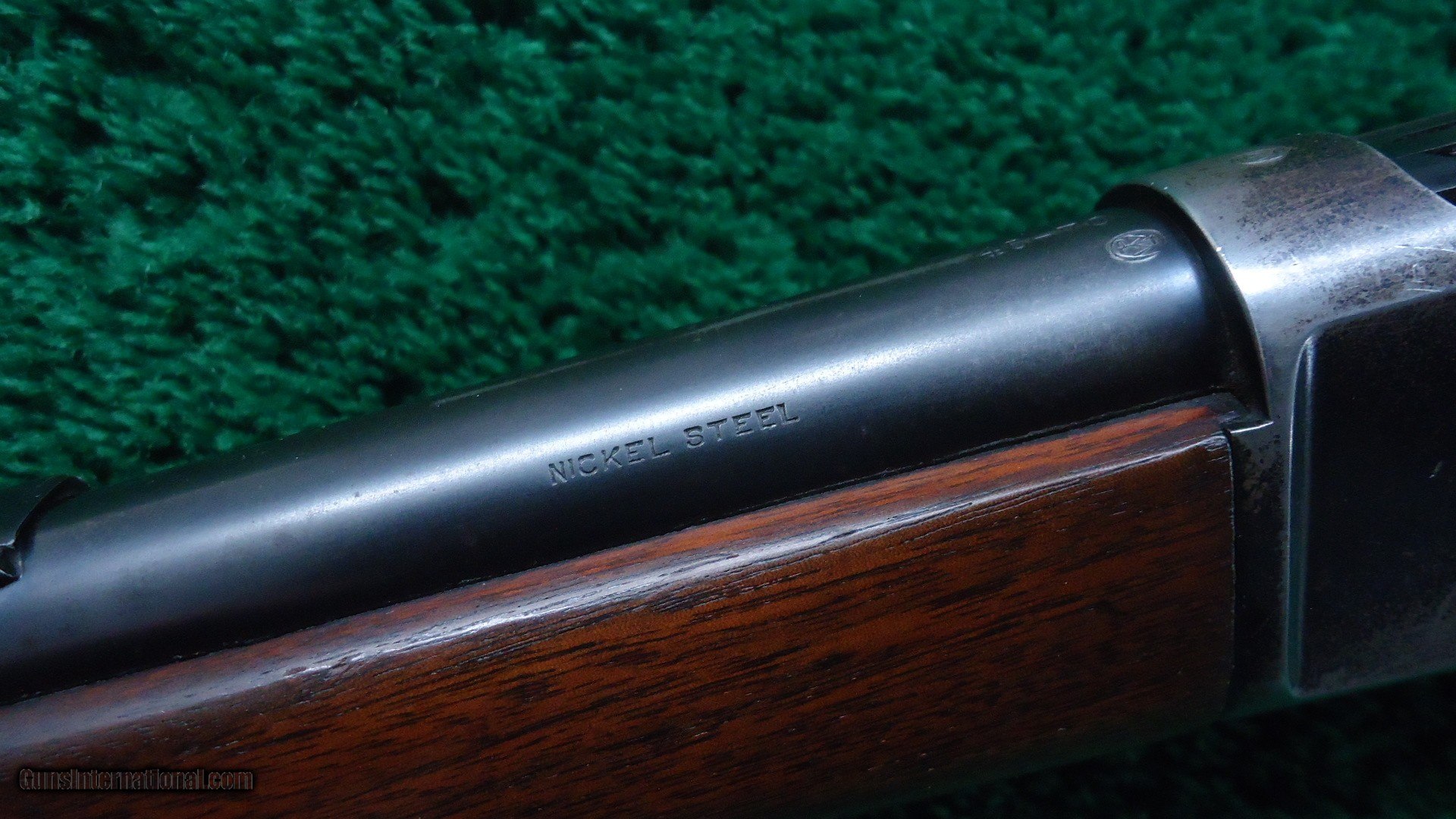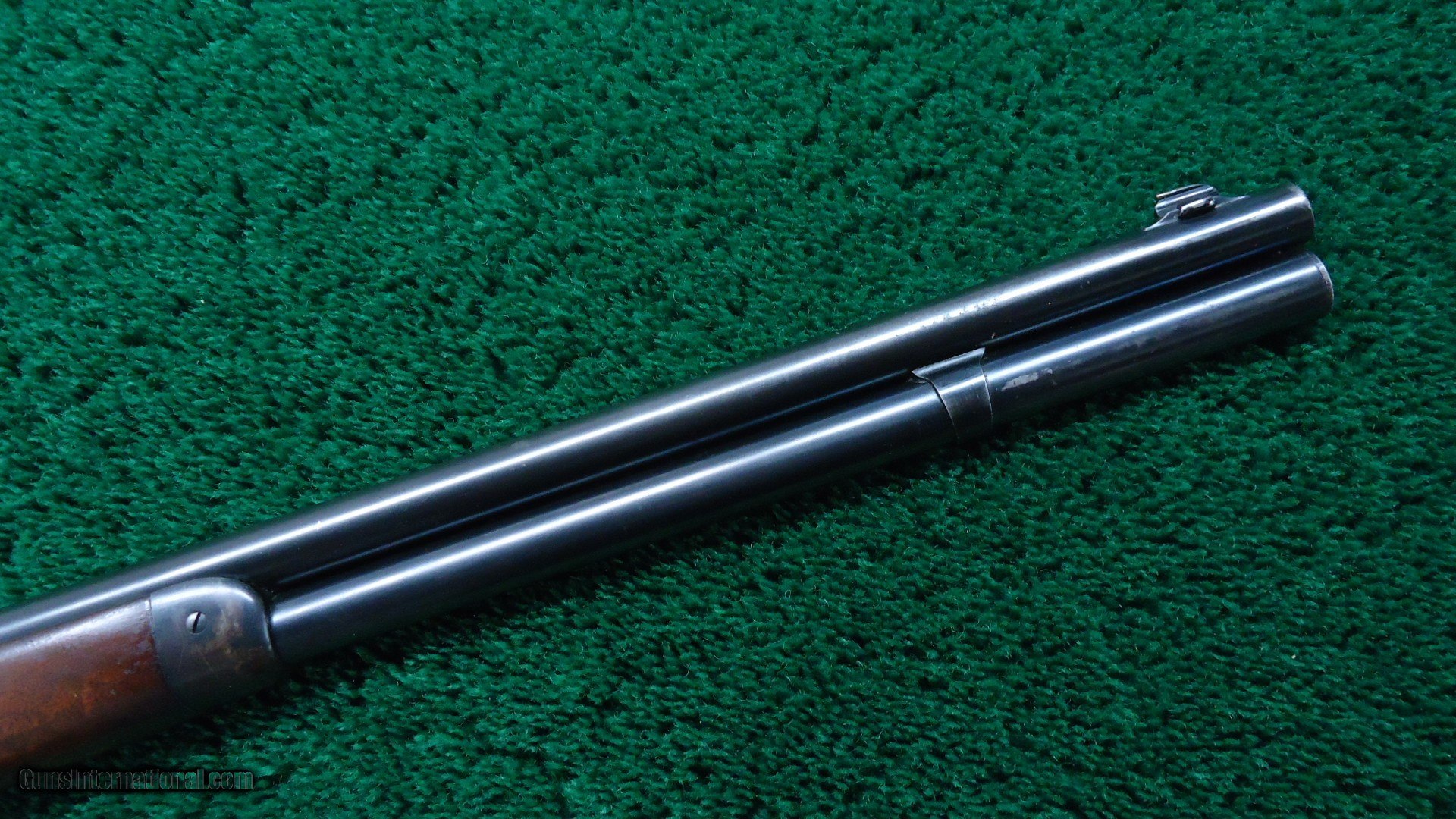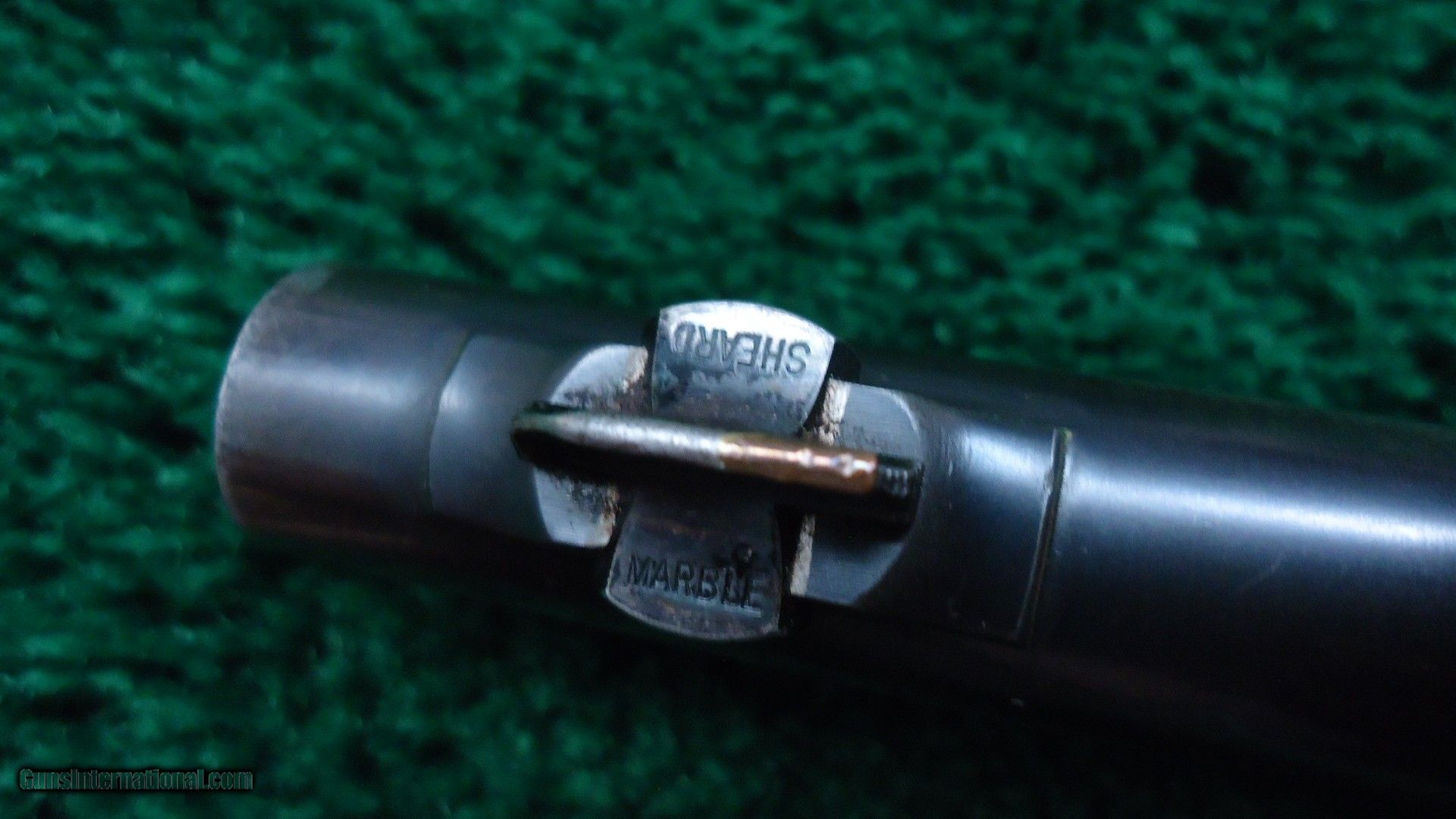 Description: This special order rifle is unusual in that it has double set triggers and a full length magazine tube. Features a 22 inch tapered round nickel steel barrel with a bright shiny near excellent bore chambered in the desirable 45-70 Govt. caliber. In fact the diameter at the end of the magazine is actually larger than muzzle of the barrel. Sights include a Marble's Sheard brass bead front with a blank filler in the rear and a Lyman 21 receiver sight. Receiver and barrel show Winchester "WP" factory proof marks indicating that the rifle went back to the factory sometime after 1905. The mag tube retains most all of its original blue and the barrel shows some thinning of the blue but still retains most all of it as well. Receiver has about 70% original blue with a little flaking and worn to a pewter gray on the bottom at the carry point. Hammer and lever are blued. Good legible markings. Smooth walnut stocks are in very good condition and good fitting with just minor handling and usage mars. The shotgun butt is fitted with a Winchester solid red rubber pad. Nice crisp action and set trigger works fine. This is an interesting Winchester rifle that was made in 1897 and went back to the factory for some upgrades to an unusual configuration. Should be a handy shooter. Leroy Merz Antique Firearms specializes in antique and vintage Winchesters and other fine American firearms. Since 1965 Mr. Merz has taken part in the world of firearms and has been a contributor to many well known reference books. We have hundreds of additional guns in every price range at our home online. Search for Merz Antiques in google. SOLD Antique: Yes Rifle Caliber: .45-70 Government |