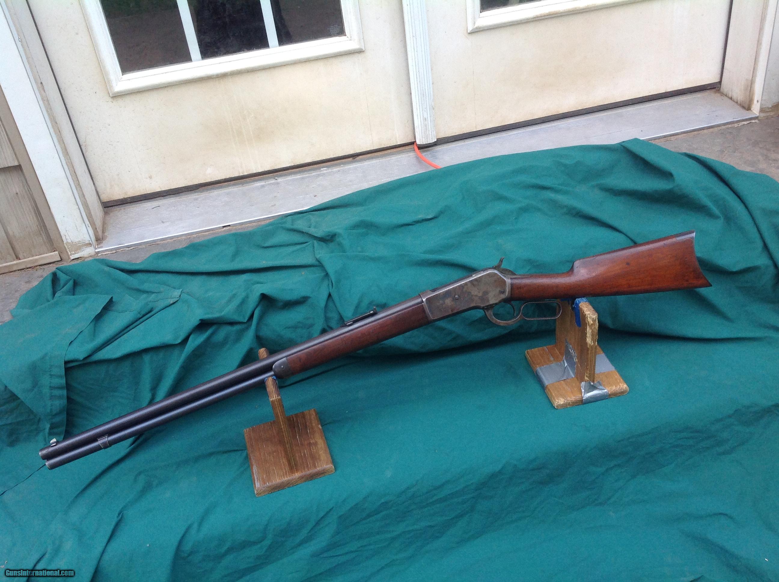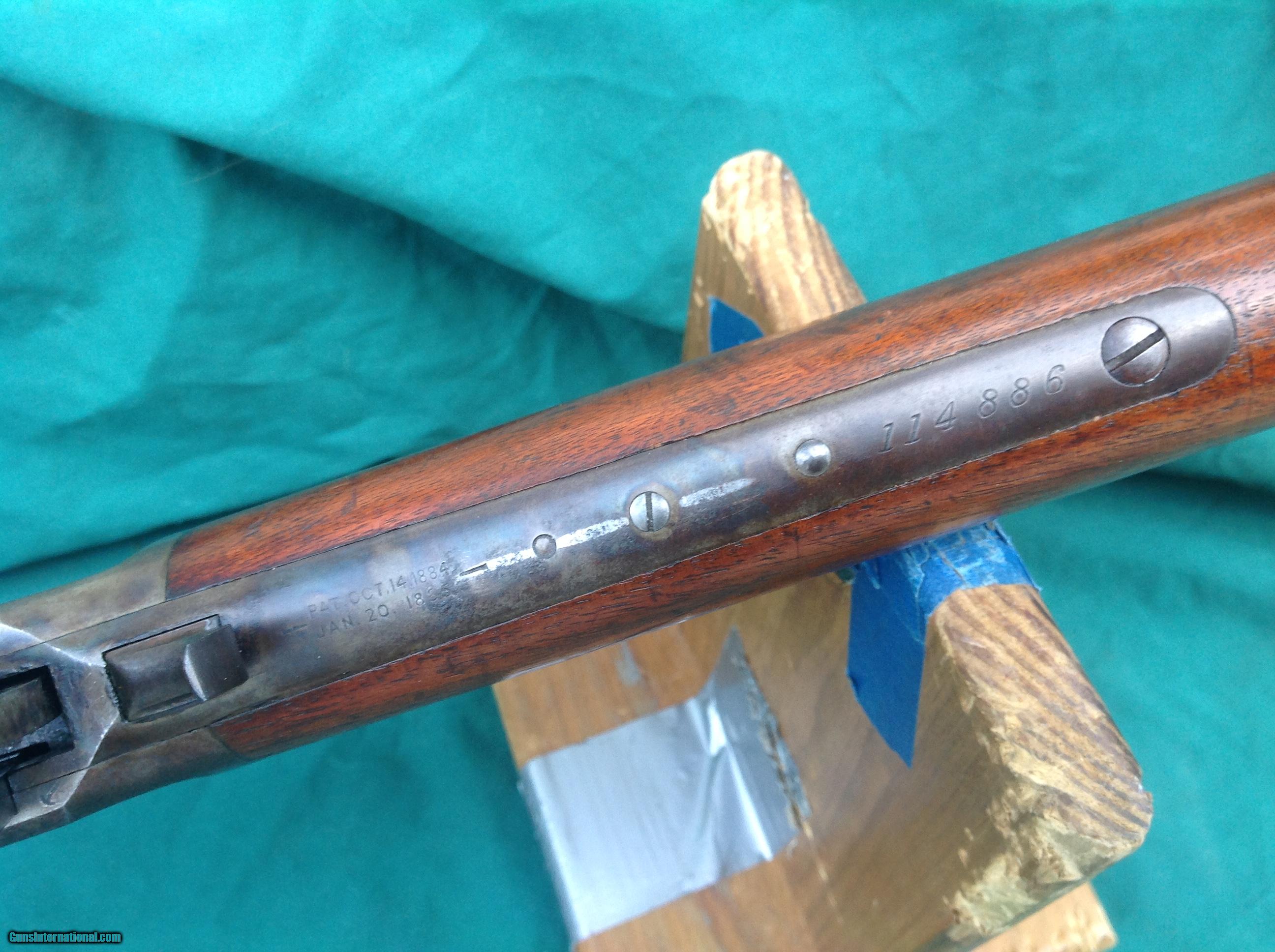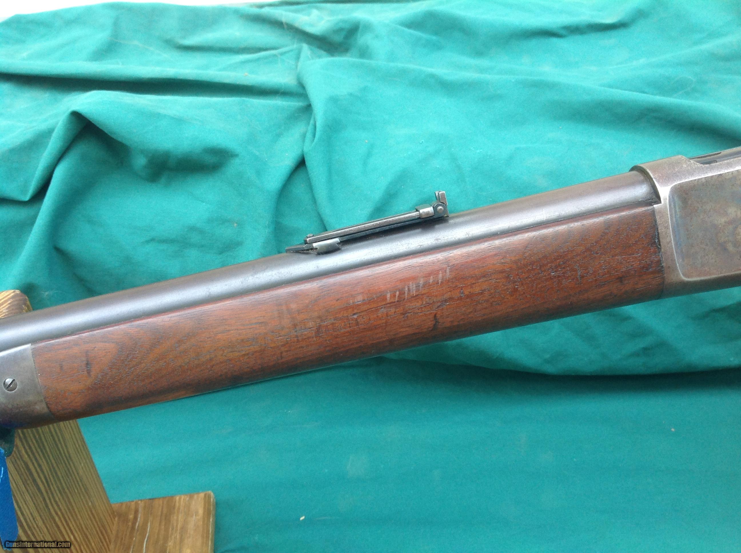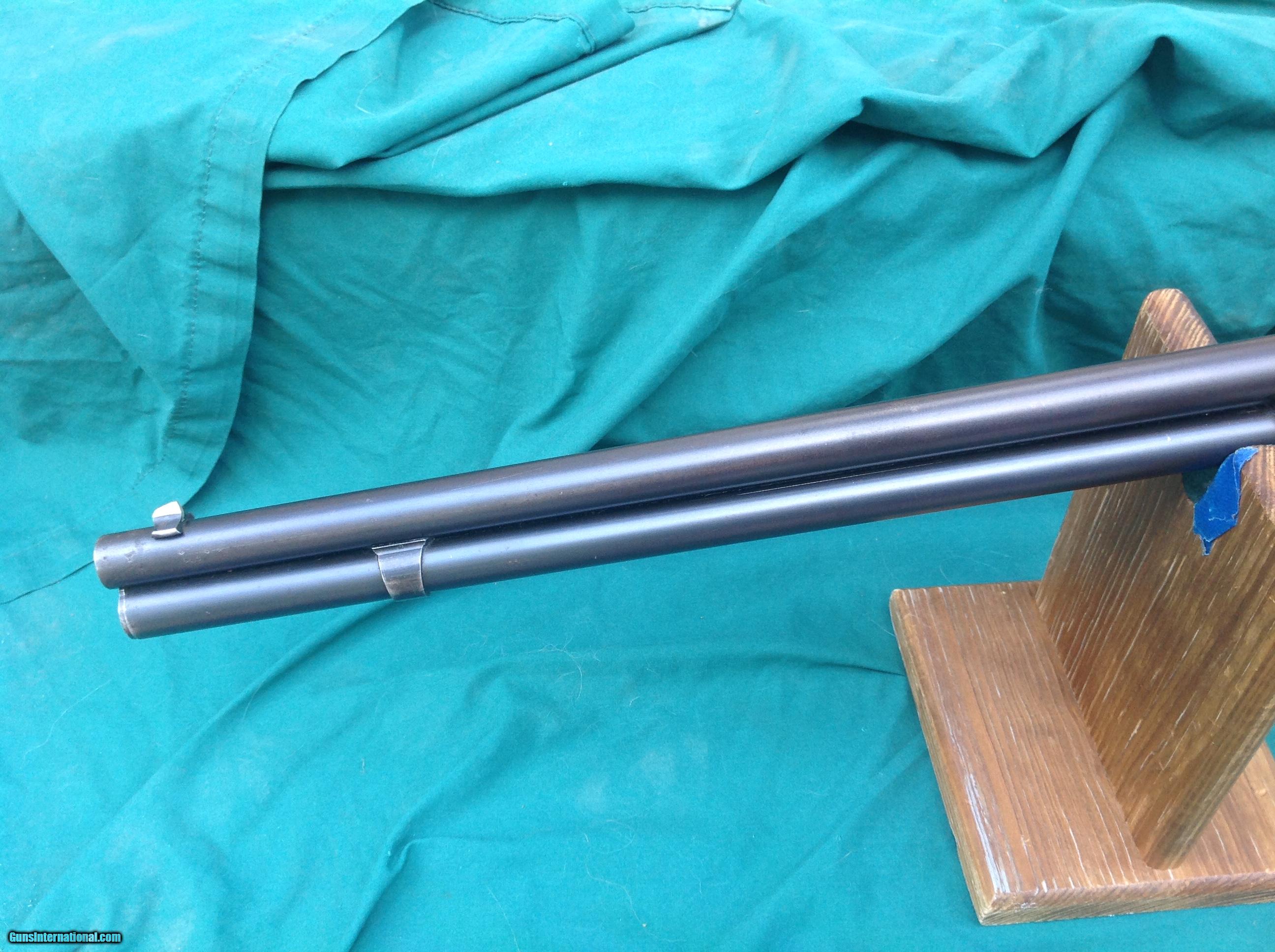Description: 1886 Winchester 45-70 Rifle. Serial number 114,886 manufactured in 1898. 26" round barrel with full magazine tube. I will rate the bore a 7 maybe an 8 on a scale from 1 to 10. Correct and original front and rear sights. Barrel and magazine tube retain a soft 70 to 75% original blue. There is a couple tiny areas of tiny pitting near front sight. Great markings. Left side of receiver retains 60 to 65% original case colors and the right side retains about 20% original. Very nice case colors on hammer and lever. Both forend and buttstock are in very nice condition, never sanded or refinished in anyway. Both pieces do show the normal handling marks, bumps, and scratches. Very nice 1886 Winchester in a great caliber, don't miss out! Please feel free to ask questions. 315-374-3706. SOLD Antique: Yes Manufacturer: Winchester Model: 1886 Caliber Info: 45-70 Condition: Very Good |