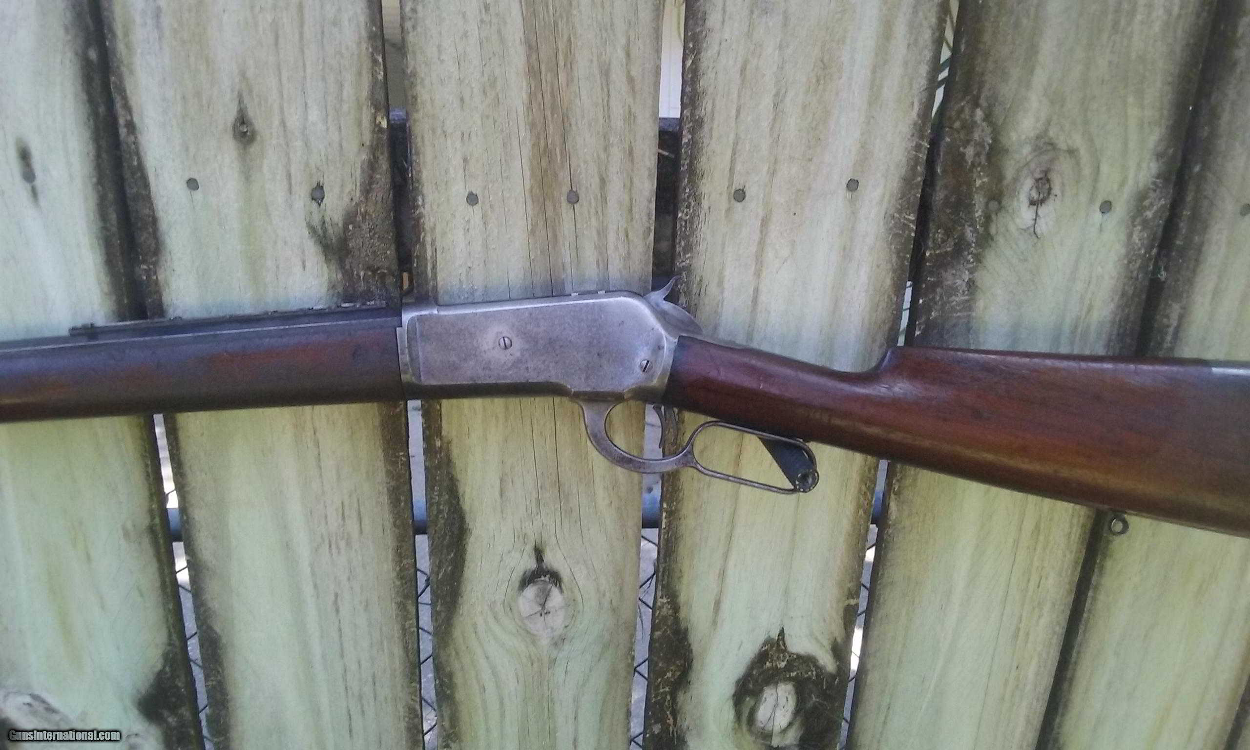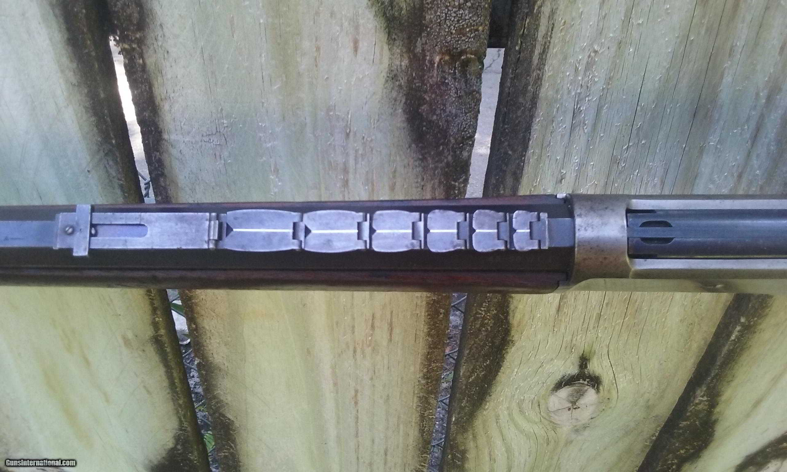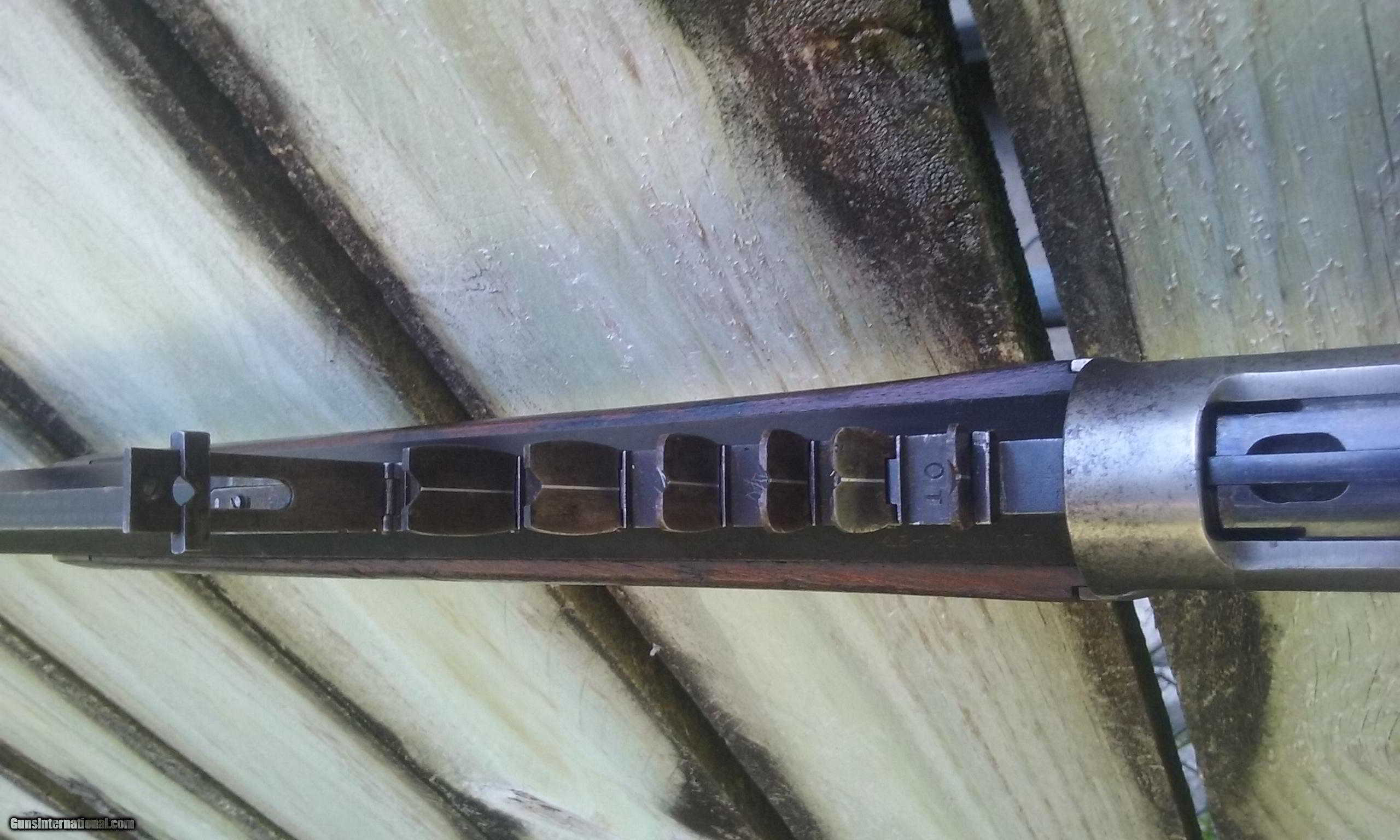 Description: Serial # 10942X .45-90 WCF with a 26" barrel. Factory research lists as follows: Serial number applied May 22nd, 1896; Type: rifle; Caliber: .45-90; Barrel type: octagon; Barrel length: (I have researched this rifle with This offered rifle is listed as a ditto mark. Question arose as the ditto followed the blank, which would indicate a 26" barrel. The next 6 rifles in the order with seven leaf sights all list with 26" barrels. It is obvious that this rifle is all original with a 26" barrel with all proper measurements, and an actual copy of the shipping record will accompany rifle.) Trigger: Set; Sights: Seven leaf Express and Beach; Screw-eyes; Received in warehouse February 6th, 1897; shipped February 10th, 1897. The only feature not listed in factory letter is the full magazine, as this was standard issue. All other features of this rifle are as recorded. Standard finish for this era, which is not listed on letter, would be case colored. The barrel and tube are a lovely mix of soft blue with the patina blending, some light high edge wear with sharp edges and some usual minor age freckling. Barrel legend is sharp. Caliber legend stamped on left flat at breech due to special rear sight. Front sight is replaced. The frame colors have nickeled out with traces of origional case coloring.. The bolt retains approximately 80% of the original factory high polish blue. Express sights features the platinum center lines and are numbered one through six and flip up long range express sight has graduations from seven to ten. They are in excellent condition with no damage and the spring still exhibits fire blue finish. All screws are excellent with just some minor disfiguration. Loading gate spring has a replaced screw. It has the close set double triggers with the original sling eyes intact. The walnut stocks are excellent, all original, proud to metal with no cracks and usual surface abrasions, retaining generous amounts of the original factory finish with some minor age checking at comb. Action is perfect. Strong rifled bore with some very minor black powder abrasion. With the exception of the front sight and one replaced screw, the gun is all original, untouched, just as it left the factory in superb condition and is chambered for the second most popular caliber ever manufactured, the large .45-90. Probably the most difficult rifle to find today is the '86 with the 7 leaf rear sight. Please let me know if you have any questions on this piece. SOLD Antique: Yes Stock Cast: 9 |