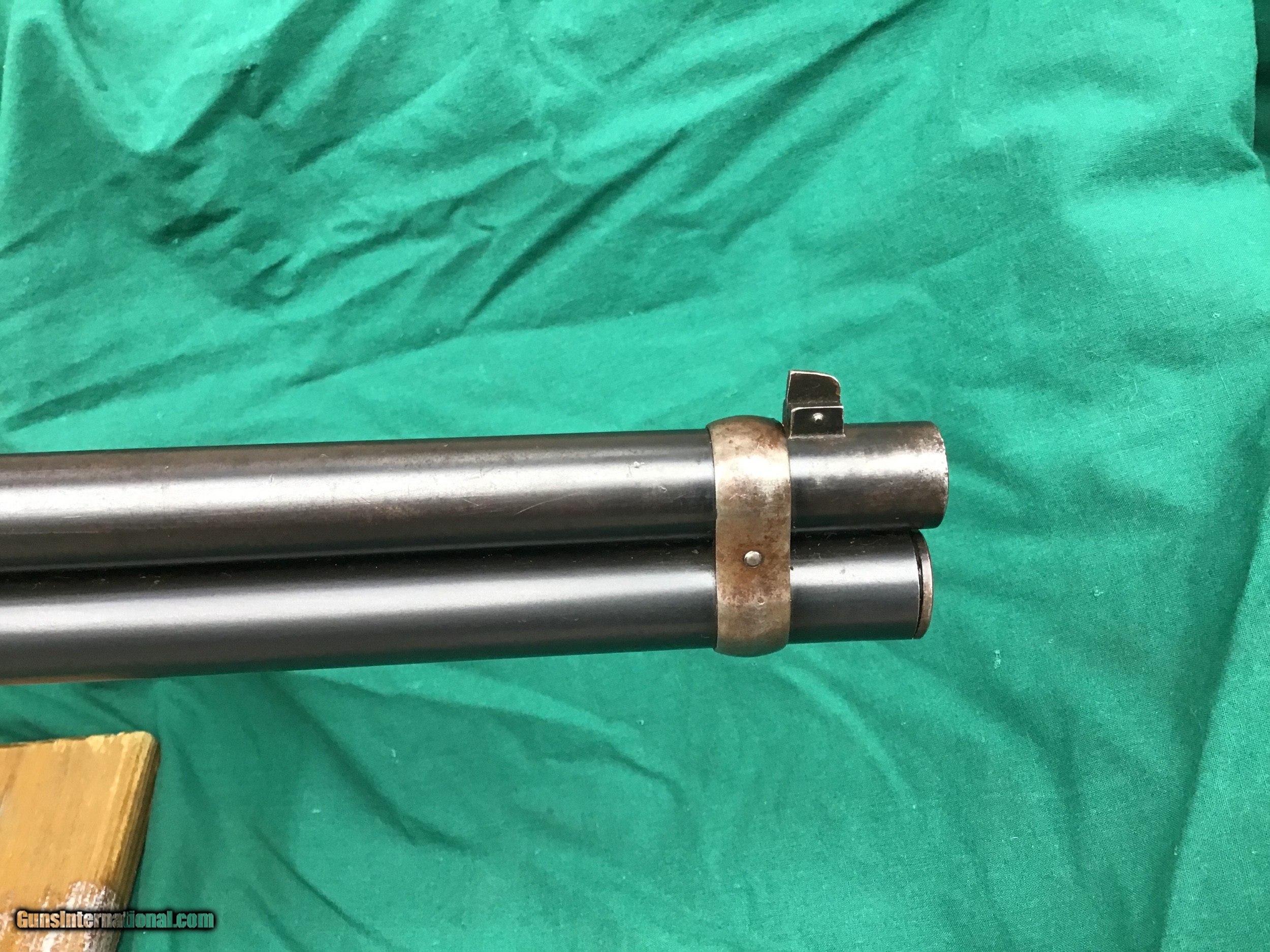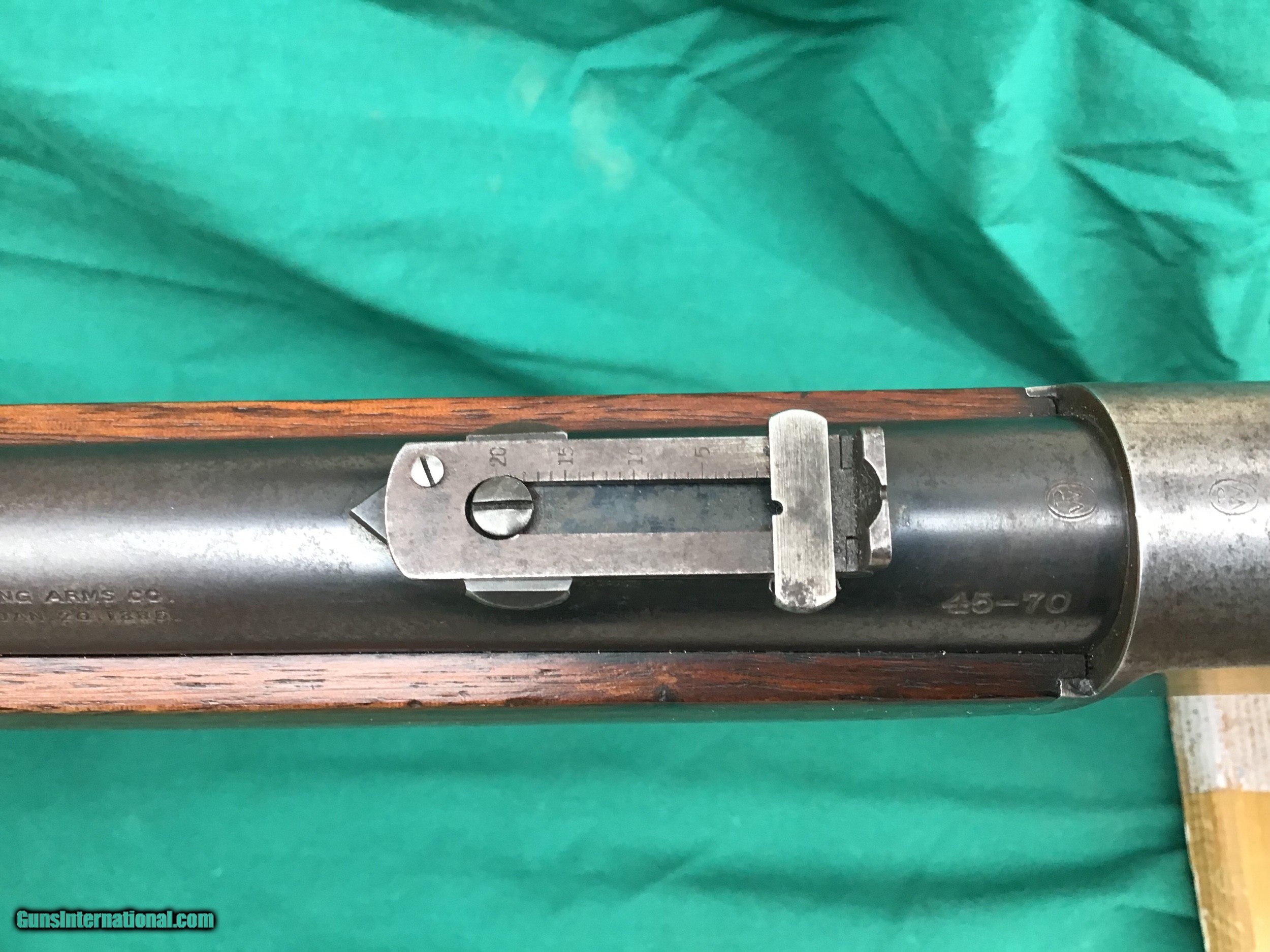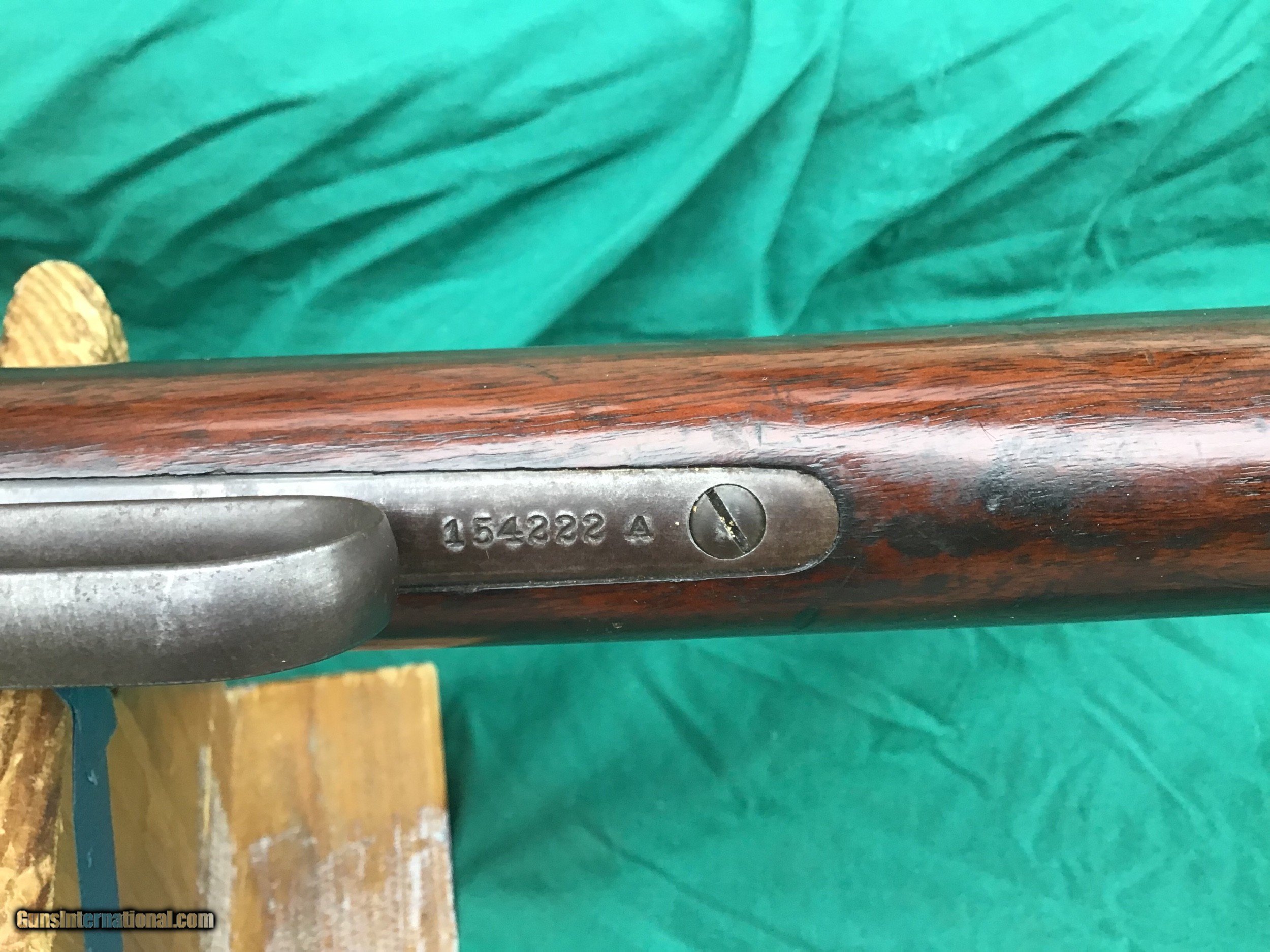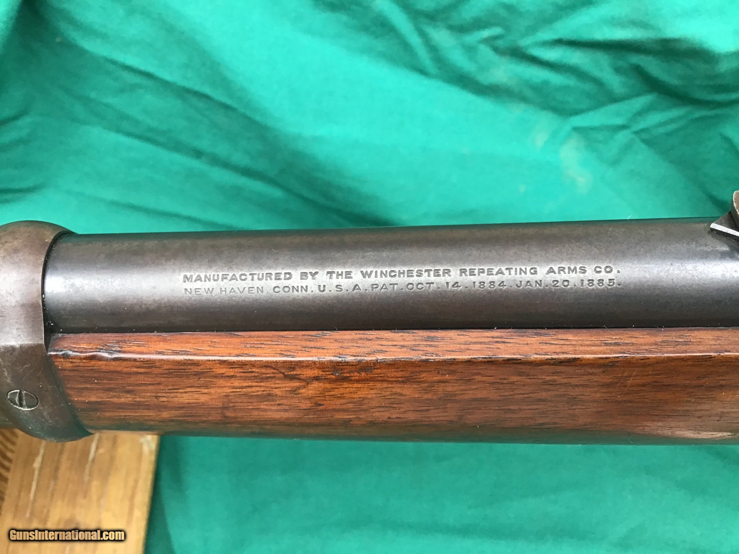 Description: Rare 1886 Winchester Saddle Ring Carbine in 45-70 shipped to France during WWI. See picture of Confirmation Sheet. You don’t usually get that much info pertaining to 1886 Winchester’s, but check out the detailed info on this gun. 22” barrel and full magazine retain 70 to 75% original blue with the remaining turning a gray / brown patina. Excellent markings: barrel, receiver, and tangs. I will rate the bore a very nice 8 on a scale from 1 to 10. Original front and rear sights. Receiver is a nice gray / brown patina with traces of original blue in protected areas. Action functions very well. Both pieces of wood are in above average condition, no apparent cracks or chips. 86 SRC’s are rare to begin with, then throw in the fact the info on where it was sent, is even rarer. Don’t forget most 86 SRC’s you normally see for sale are in the unpopular calibers, this one is in the ever popular 45-70. Please feel free to ask questions. SOLD Curio/Relic: Yes |