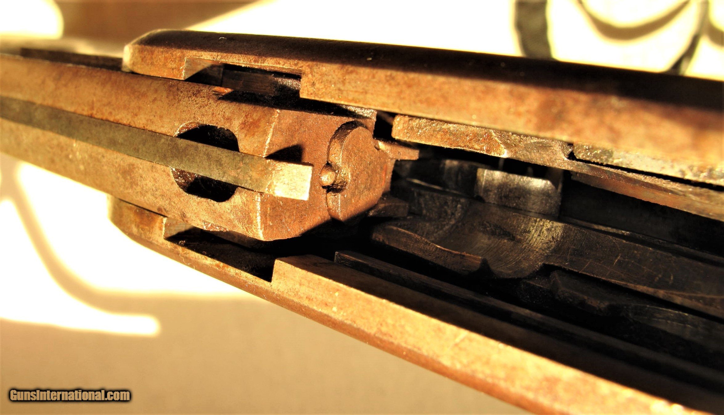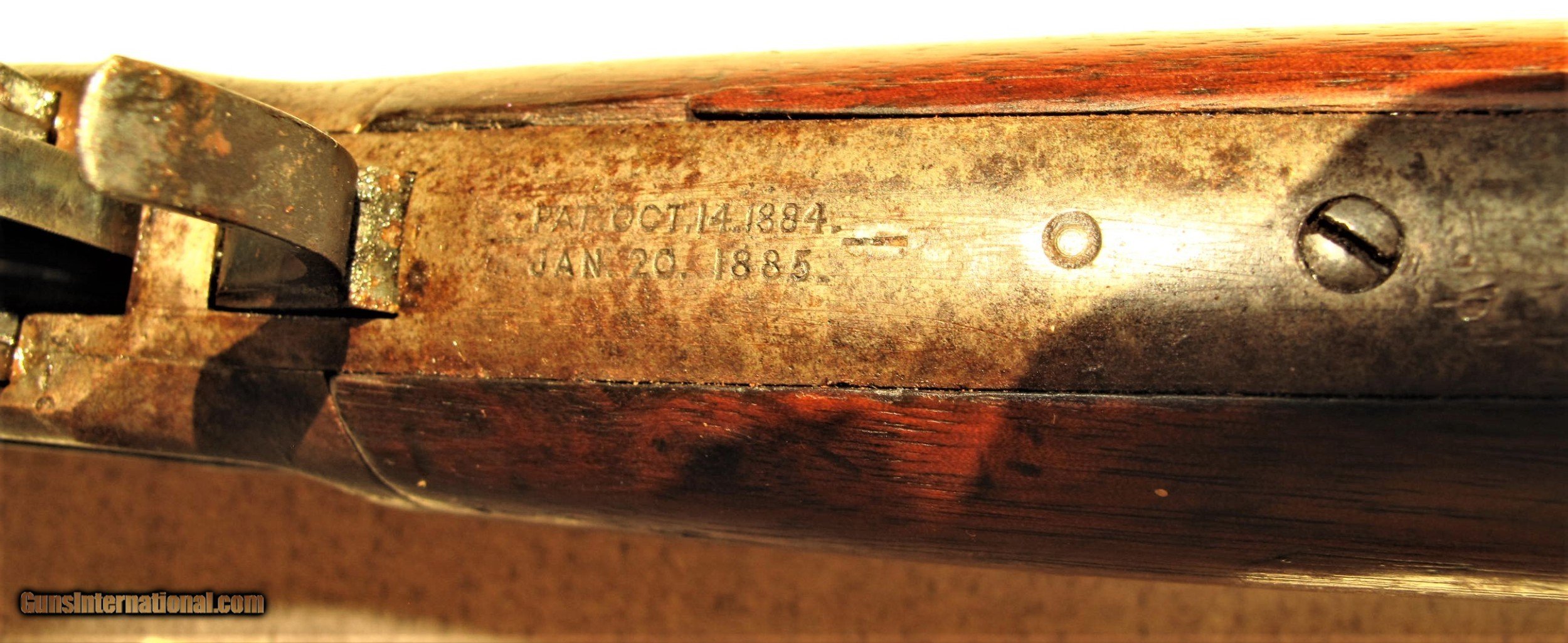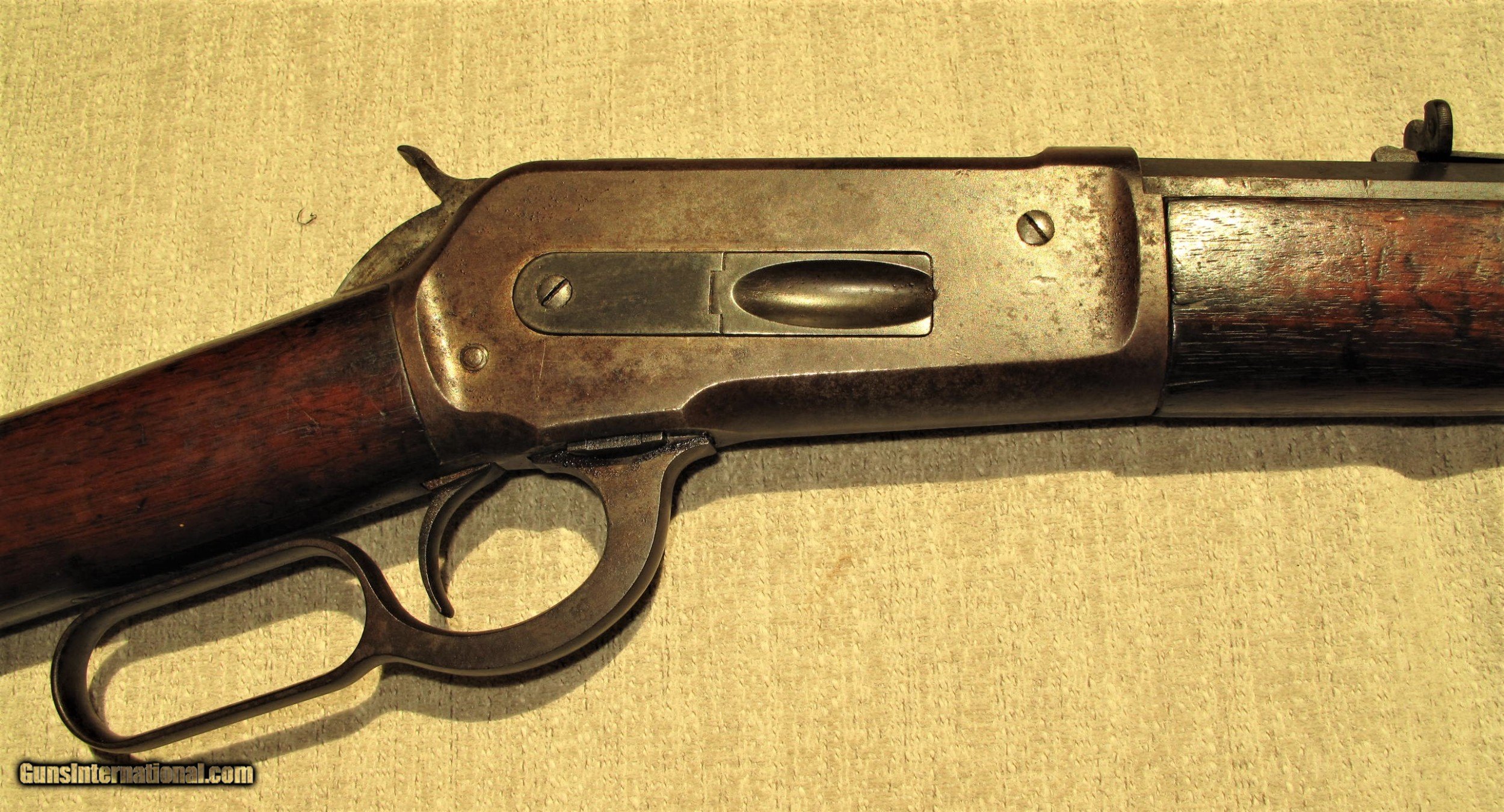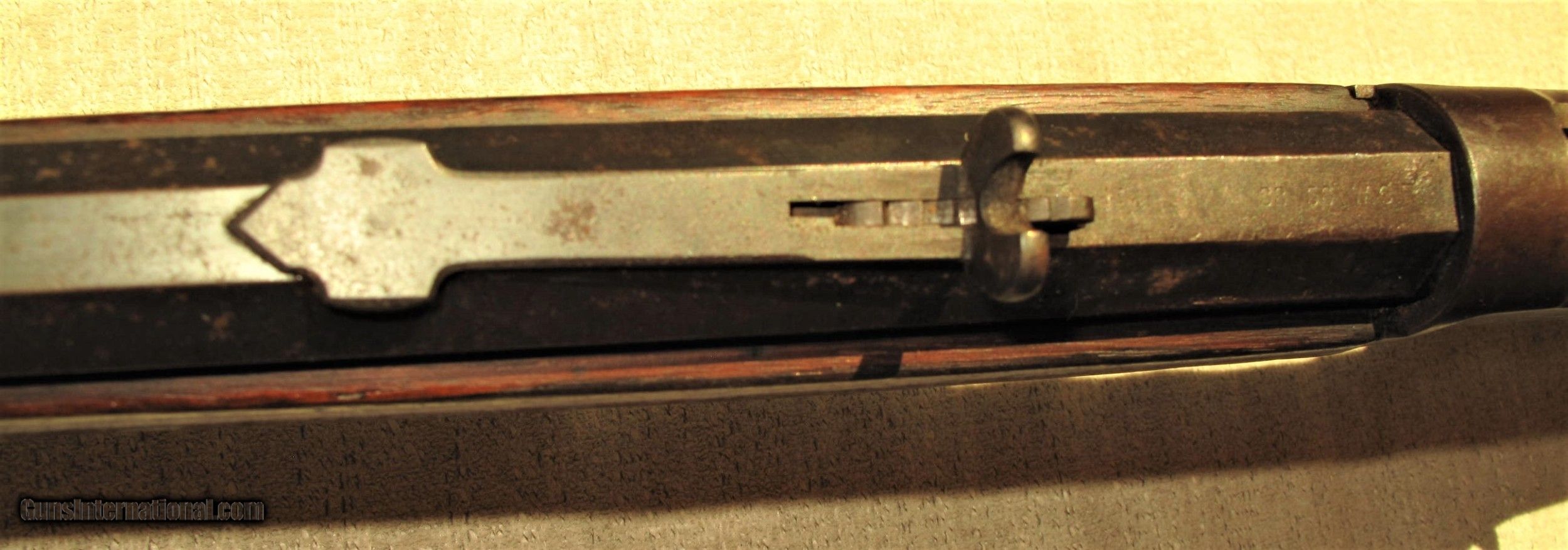 Description: This would be a excellent rifle for restoration. The bore is toast, it would rate poor at best. I think this was a fireplace wall hanger as it shows a LOT of patina and pitting, there is NO blue left. There is a emblem inletted in the butt stock from the 1893 Chicago Exposition. Wood is solid with numerous dings and dents but no cracks or splits. This functions as it should but as stated, NO finish remains and lots of pitting. I would think it would make a nice 45/70 by having it bored out to that and leave the exterior as is and make it a great shooter. As this is a true antique, it can be shipped right to your door. Price includes shipping SOLD PENDING FUNDS SOLD Antique: Yes Rifle Caliber: .38-56 Winchester Manufacturer: Winchester Model: 1886 Barrel Length: 26 Condition: fair/poor Metal Condition: fair/poor Wood Condition: fair /good Bore Condition: poor Action: lever |
