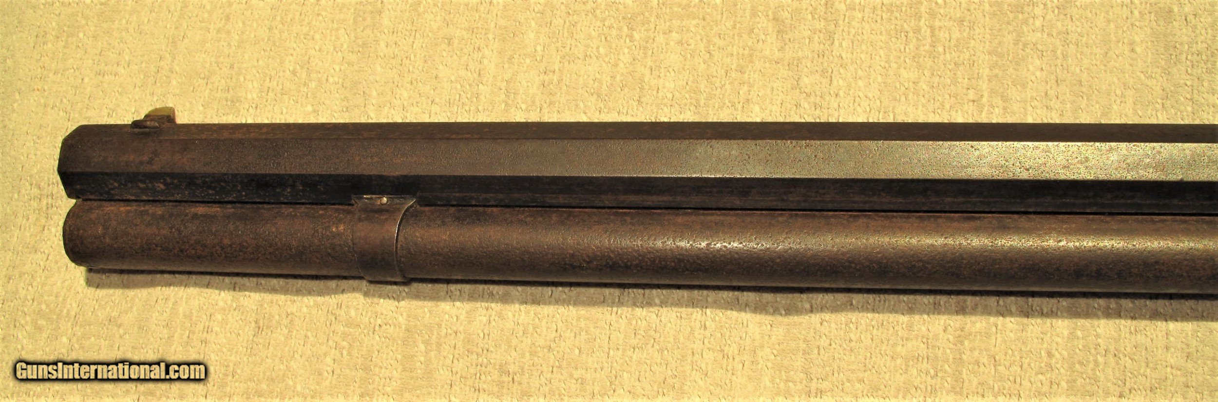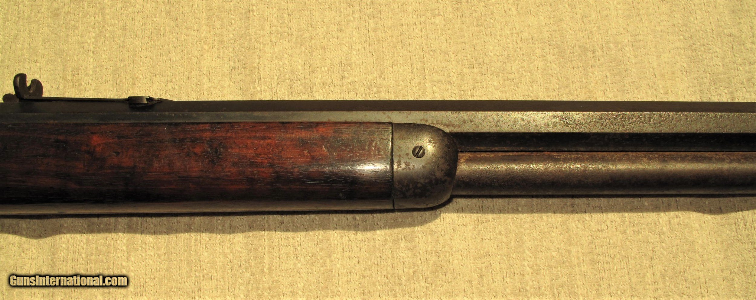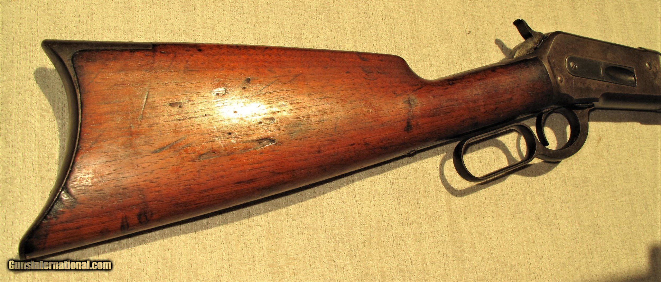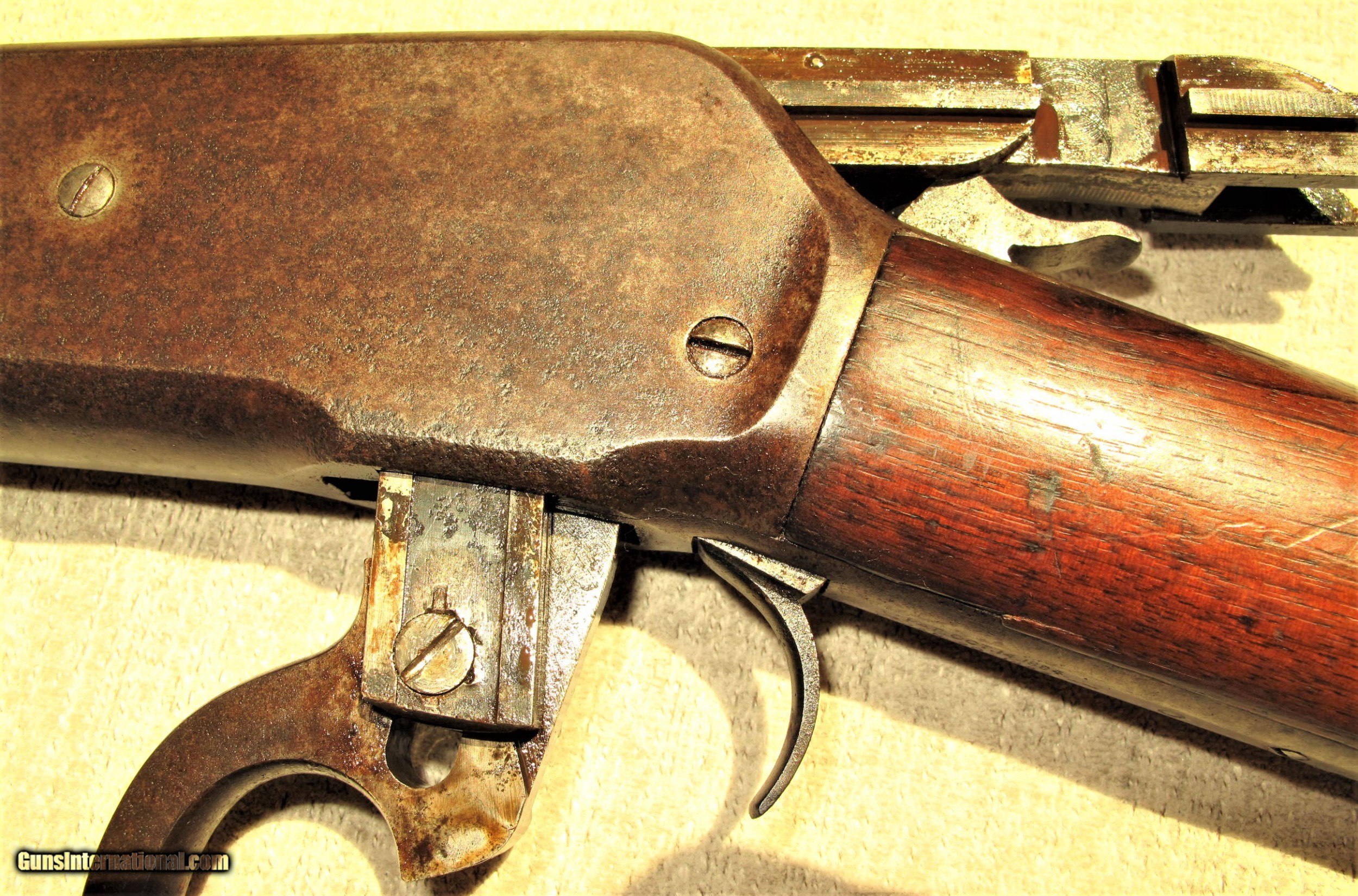 Description: This would be a excellent rifle for restoration. The bore is toast, it would rate poor at best. I think this was a fireplace wall hanger as it shows a LOT of patina and pitting, there is NO blue left. There is a emblem inletted in the butt stock from the 1893 Chicago Exposition. Wood is solid with numerous dings and dents but no cracks or splits. This functions as it should but as stated, NO finish remains and lots of pitting. I would think it would make a nice 45/70 by having it bored out to that and leave the exterior as is and make it a great shooter. As this is a true antique, it can be shipped right to your door. Price includes shipping SOLD PENDING FUNDS SOLD Antique: Yes Rifle Caliber: .38-56 Winchester Manufacturer: Winchester Model: 1886 Barrel Length: 26 Condition: fair/poor Metal Condition: fair/poor Wood Condition: fair /good Bore Condition: poor Action: lever |