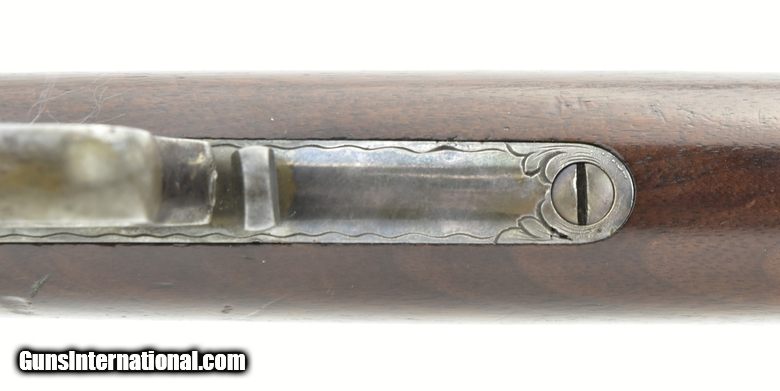 Description: Beautiful Engraved Winchester 1866 Rifle. Early gun made in 1869. This is an original 1866 that has been engraved like a famous engraved L.D. Nimschke 1866 Winchester. The left-hand side of the gun has a scene of an Indian riding off with a frontierswoman while a frontiersman is shooting at the Indian from his log cabin. The right-hand side of the gun has the name “Charles A. Messiter”. The engraving is of excellent quality, and the silver plating Is nicely tarnished. The barrel has excellent original blue. This scene is well illustrated on page 60 (upper-right) in the L. D. Nimschcke Firearms Engraver book by R. L. Wilson. SOLD Antique: Yes |