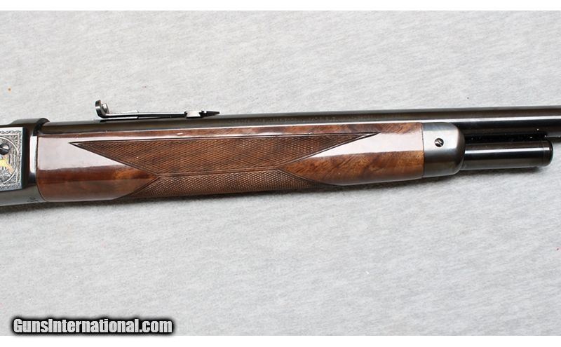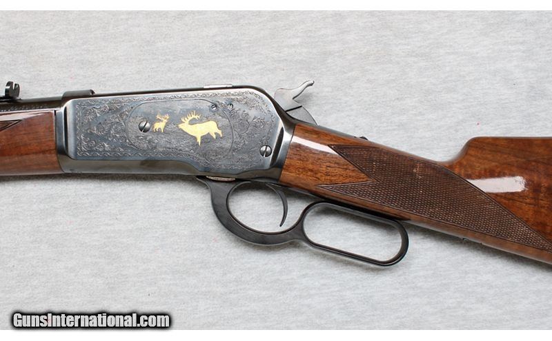 Description: Miroku Winchester Model 1886 Extra Light High Grade chambered in 45-70 Government. This rifle beautiful rifle has a 22" barrel, extra fancy straight grip stock, and deluxe checkering. It features a blued engraved receiver with gold elk and white tail inlays. Only 1,000 were manufactured. It includes original box. .45-70 Government SOLD Metal Condition: Excellent Wood Condition: Excellent Bore Condition: Bright Barrels: 22 Inches Triggers: Factory Stock Dimensions: 13 1/2 Inches Fore End: Checkered walnut Butt Pad: Plastic pad Sights: Adjustable Semi-Buckhorn rear and Brass bead front sight Item Location: La Vista, NE |