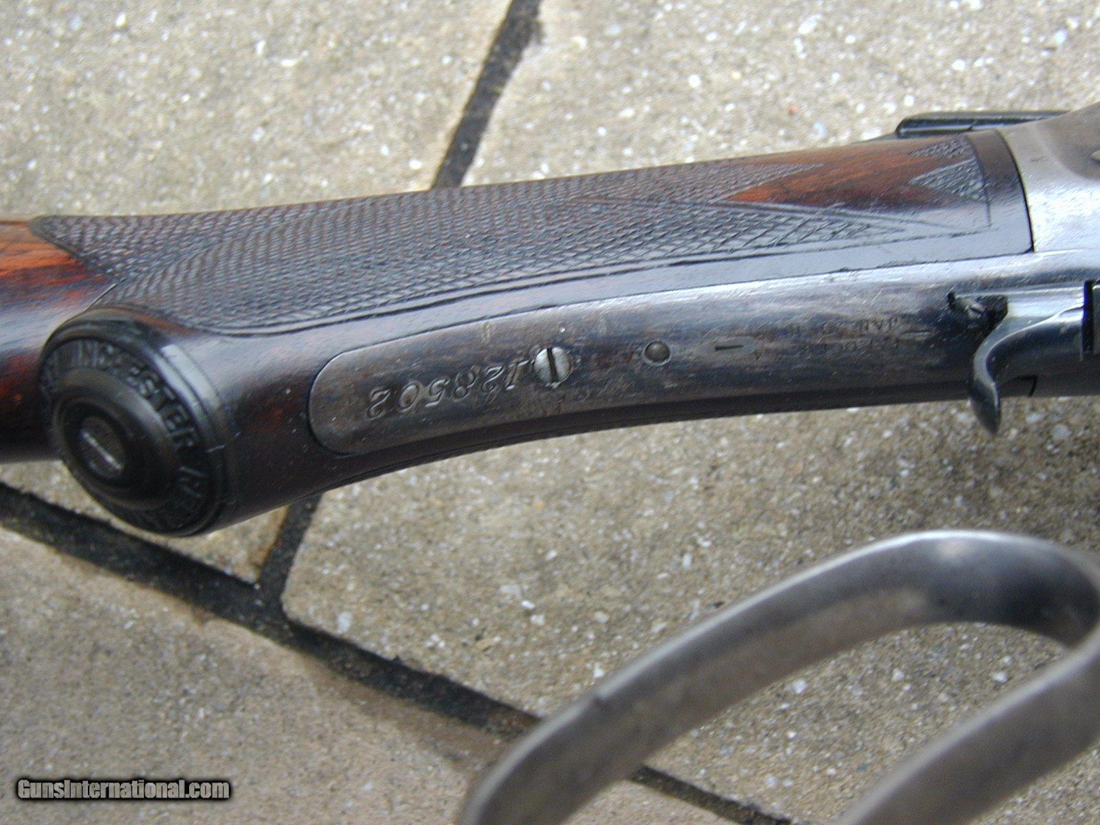 Description: ***sold pending funds** NICE 1886 DELUXE IN 45-90...ORIGINAL 2X WOOD WITH MOST OF THE ORIGINAL VARNISH, ORIGINAL CHECKERING IS EXCELLENT WITH SOME "FOLK" CHECKERING ADDED, LETTERS AS IS WITH A 38-70 BARREL, SET RIGGER ,CONVERTED AT SOME POINT IN THE 1920'S IT APPEARS TO 45-90, WITH CORRECT PROOFS AND MARKINGS AND FINISH FOR THAT TIME PERIOD AND A SUB-SET OF NUMBERS UNDER THE TANG, PICUTRED, IN ADDITION TO THE ORIGINAL SET #'s 33 WHICH IS ALSO IN THE WOOD CHANNEL....THE BARREL AND BORE IS IN MINT CONDITION INSIDE AND OUT, THE GUN IS IN VERY GOOD CONDITION WITH SIME NICKS AND MARS ON THE RECIEVER....ALL IN ALL, AN AFFORDABLE SHOOTABLE DELUXE 1886 THAT PRESENTS WELL...C&R OK.....(ALWAYS CHECK YOUR GUNSMITH BEFORE SHOOTING) SOLD Curio/Relic: Yes |