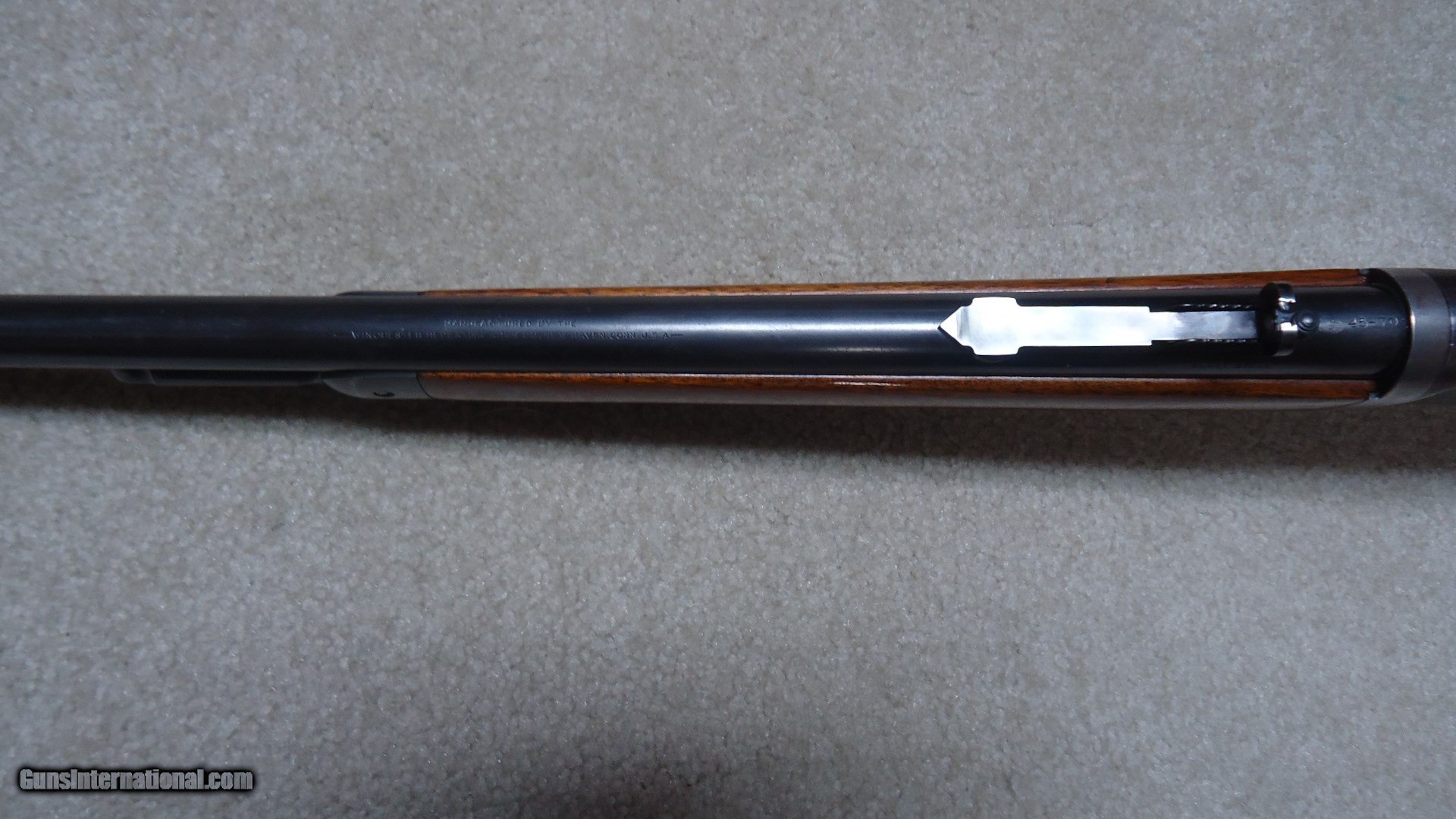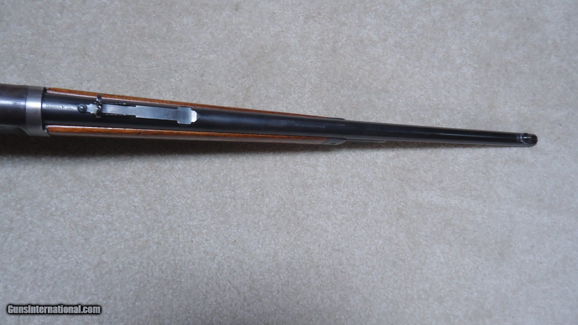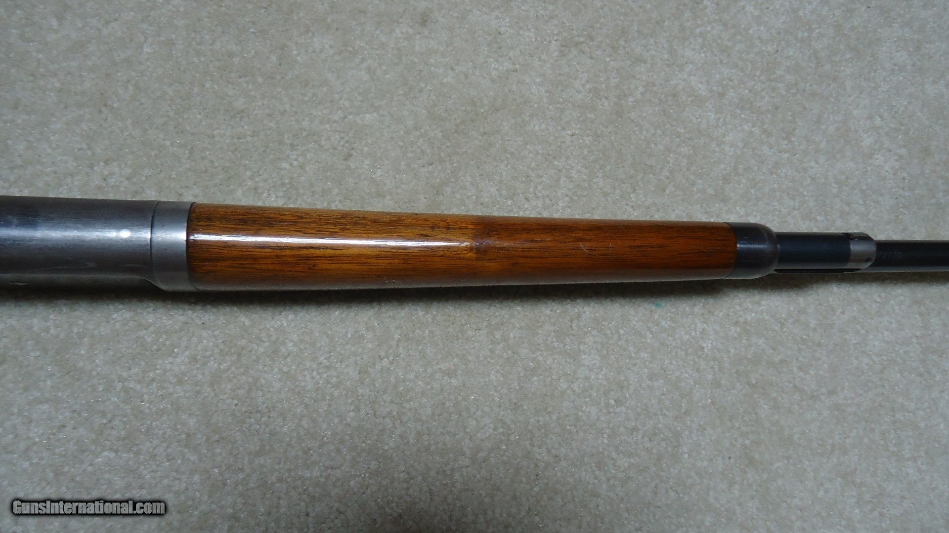 Description: SUPERB CONDITION 1886 .45-70 EXTRA LIGHTWEIGHT TAKEDOWN RIFLE WITH FACTORY LETTER, #137XXX. One of the finest of these last of the great 1886 rifles I’ve offered. The factory letter that accompanies this rifle states: Rifle, .45-70, Round Barrel, 22”, Extra Light, Plain Trigger, ½ Magazine, Shotgun Butt, Rubber, Takedown, Nickel Steel, Received in the warehouse on May 11, 1906 and Shipped from the warehouse on May 21, 1906. The barrel and magazine retain nearly all the deep factory blue and even the forend cap shows only light edge wear to the blue. The barrel is fitted with a sweeping full buckhorn rear sight mated with a Lyman half-moon with ivory bead front sight in the correct small ramp. The takedown is tight. The receiver shows excellent deep blue on the sides, upper and lower tangs and bolt. Only the underside/forward part of the receiver has thinning blue that is mixing heavily gray. The takedown ring too is mainly flaked to gray. The lever shows nice case color in the upper protected region by the receiver and there is still some nice case color on the hammer. The receiver screws are excellent. The Winchester embossed rubber butt plate is not cracked or chipped and fits perfectly. Wood is excellent, action is very tight and the bore is minty bright. All markings including the desirable “NICKEL STEEL” barrel stamping are sharp and excellent. About as nice as one could hope to find. SOLD Curio/Relic: Yes Manufacturer: Winchester Model: 1886 EXTRA LIGHTWEIGHT TAKEDOWN Serial Number: 137XXX Caliber Info: .45-70 Condition: Excellent Barrels: 22 |