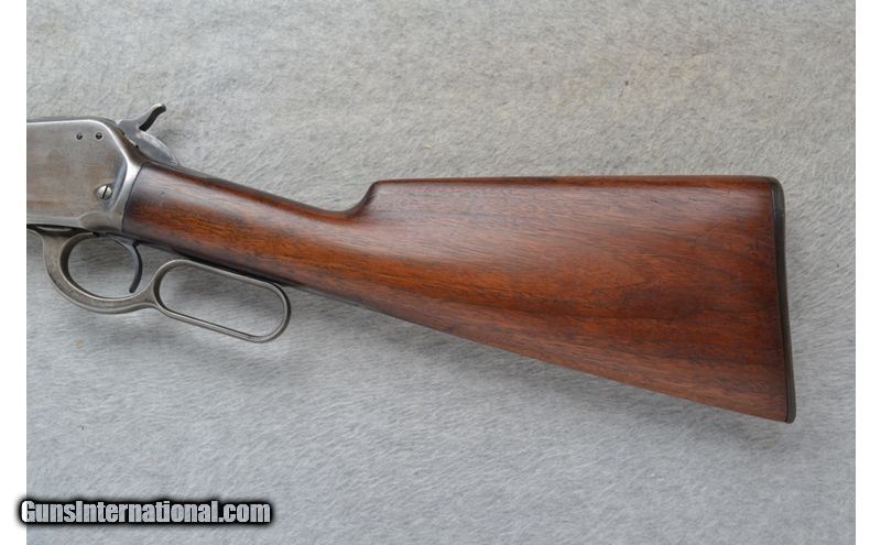 Description: This Winchester Model 1886 is a right hand lever action repeating rifle in .33 WCF Cal. It has a 24 inch barrel. A blade front sight and an adjustable notch middle sight. The butt stock is a smooth grip walnut straight grip. The forearm is a smooth grip walnut with a steel cap. Serial Number 131224A (1903). .33 WCF SOLD Curio/Relic: Yes Chambers: Lever Action 4 round tube magazine. Metal Condition: "Good. Has blue wear, minor freckling, minor handling marks and patina. Wood Condition: Good. Has handling marks. Bore Condition: Excellent. Barrels: 24 inch. Stock Dimensions: LOP 13 1/8 inches. Fore End: Smooth grip walnut with a steel cap. Butt Pad: Winchester checkered plate. Weight: 7 lb. 8 oz. Sights: Raised blade front. Adjustable notch middle. Item Location: Richfield, WI |