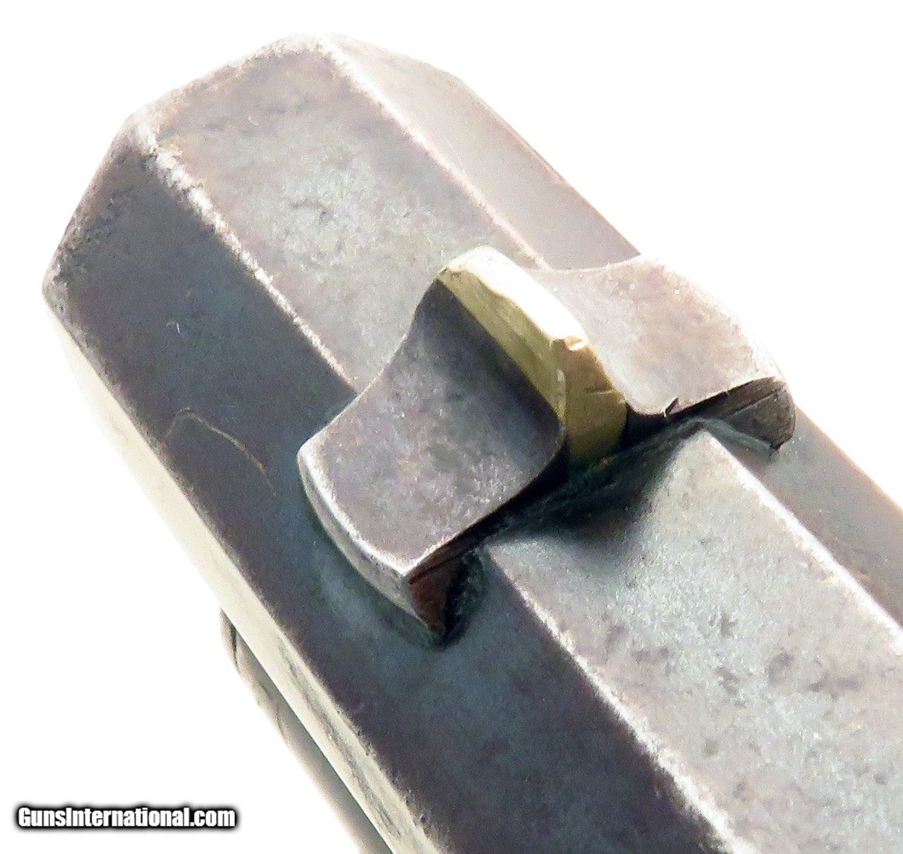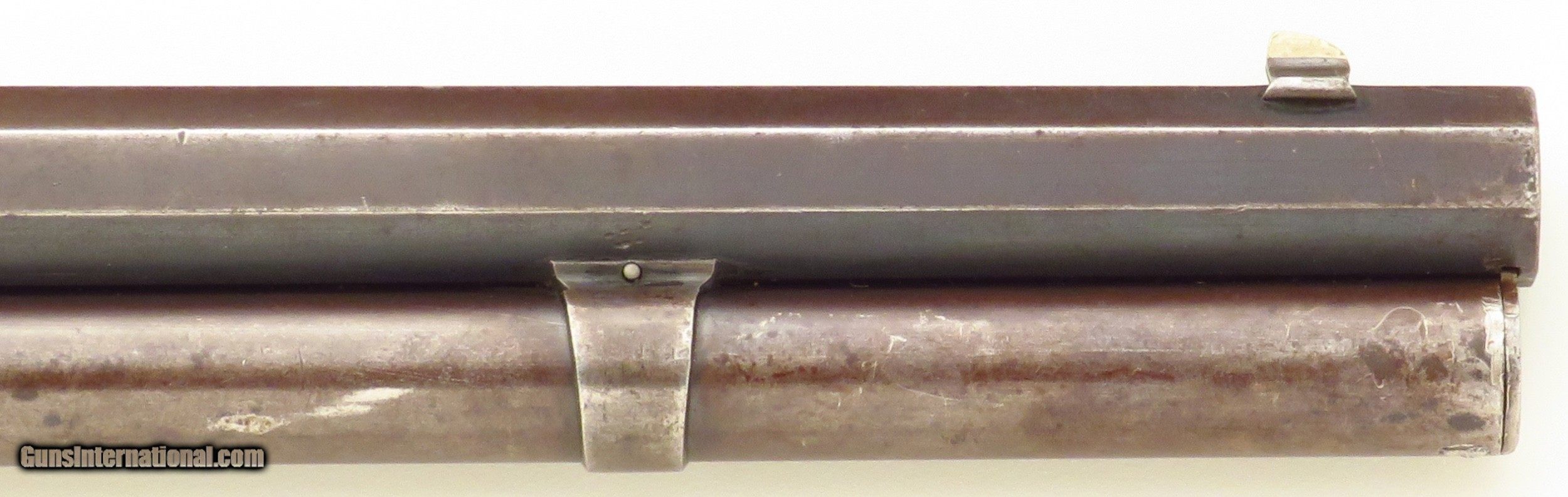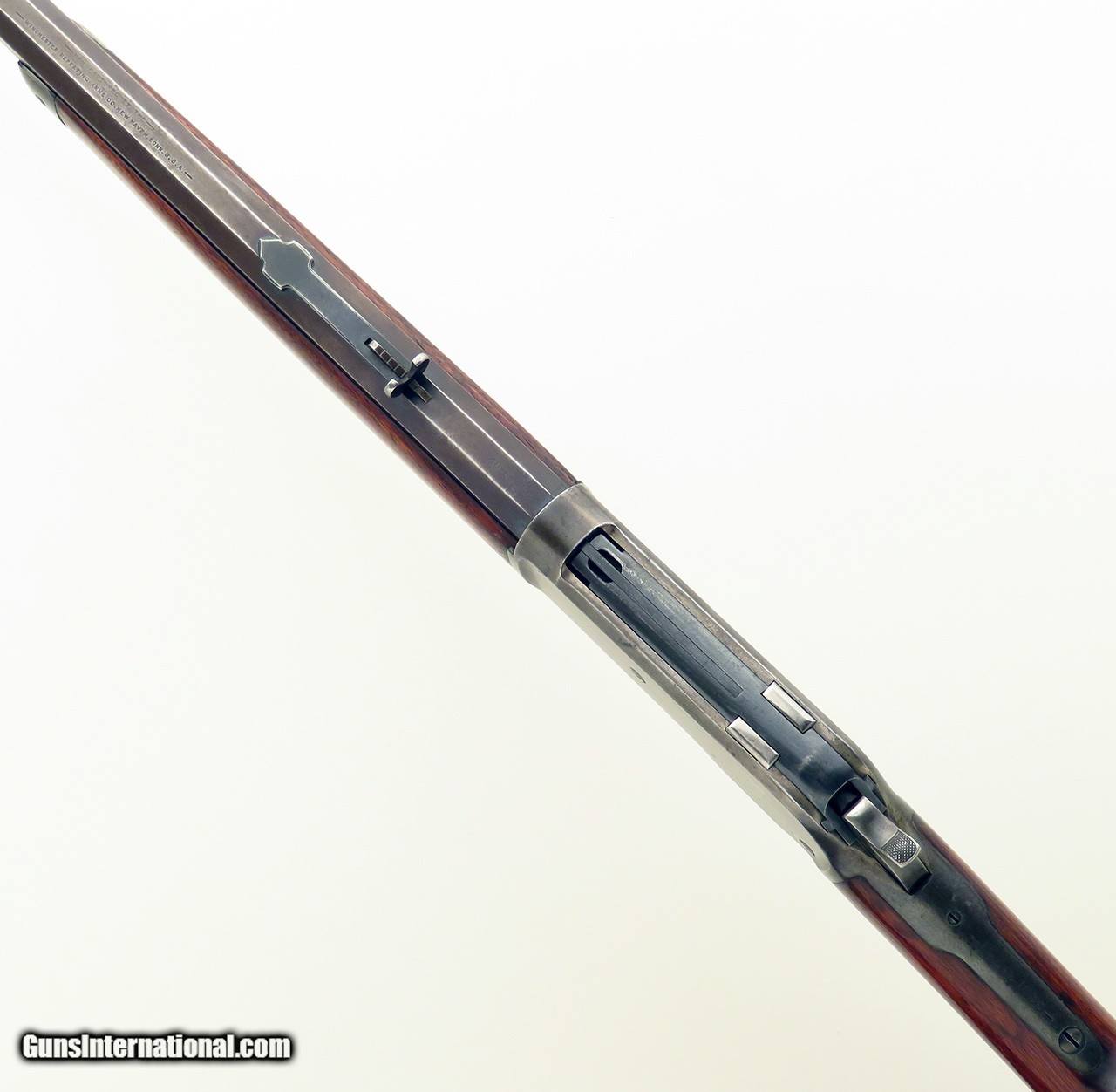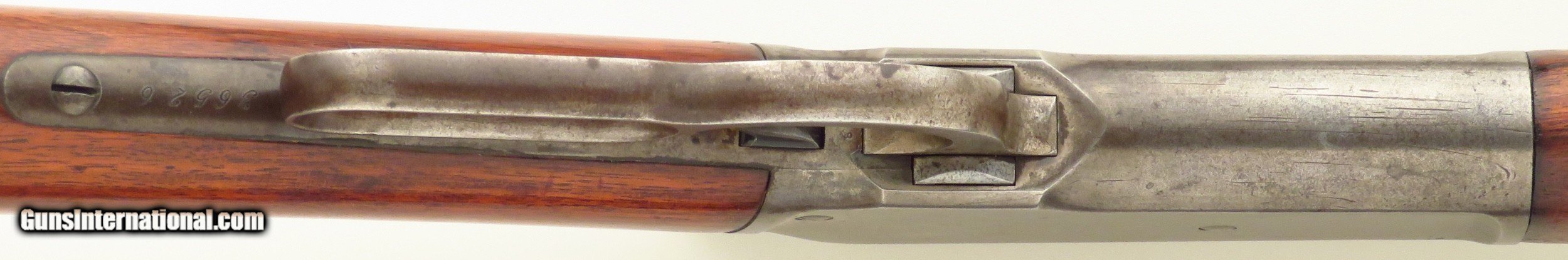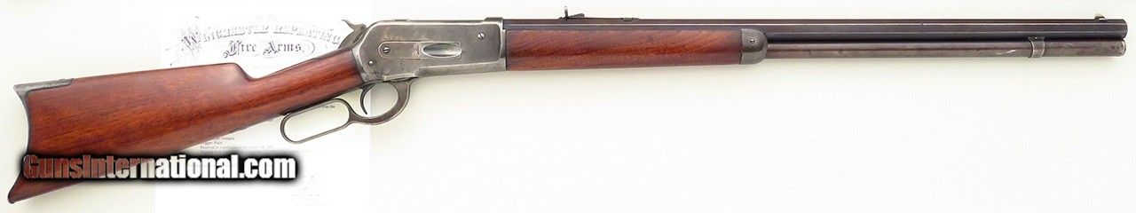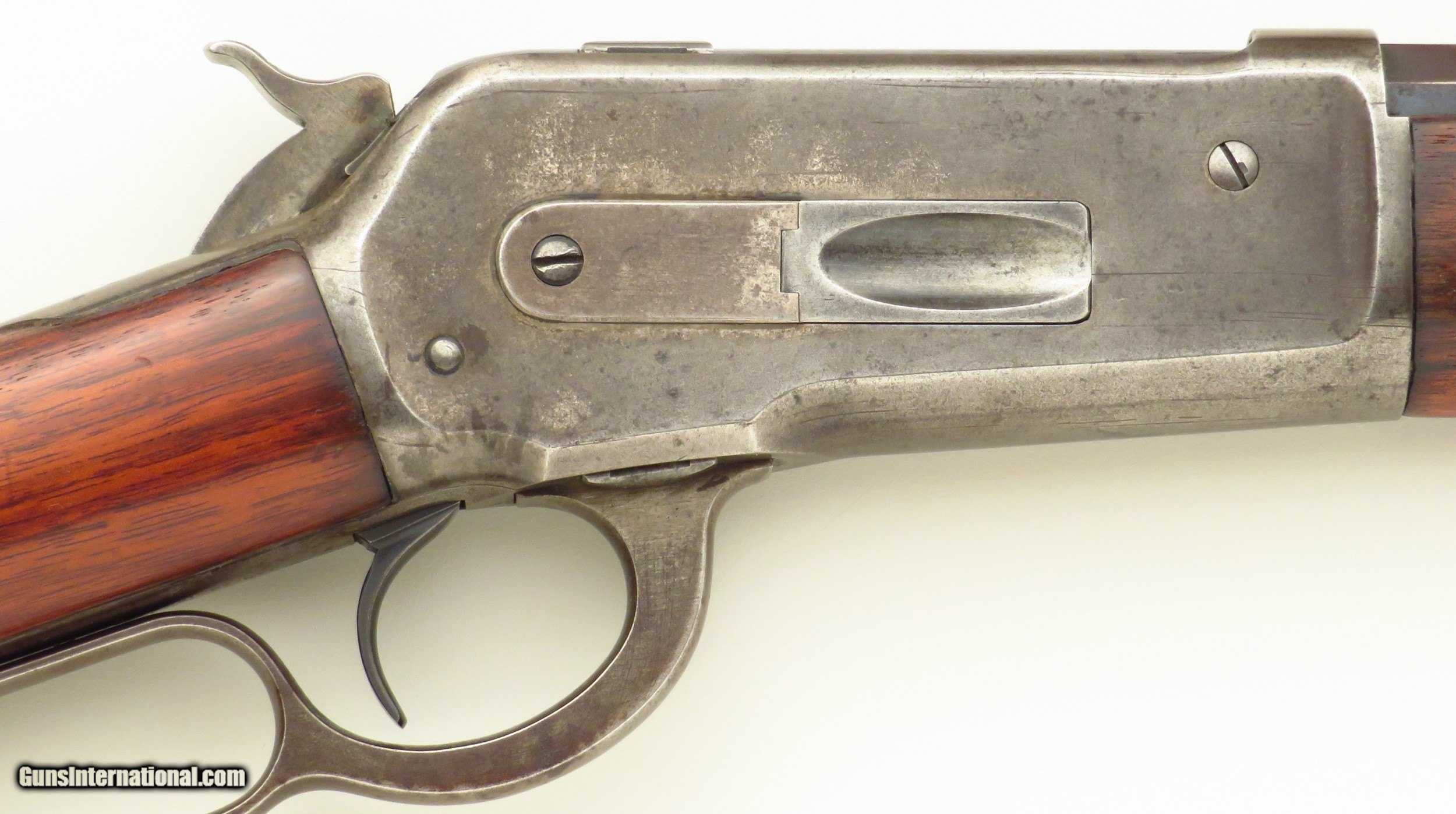 Description: Winchester Model 1886 .40-65. Made in 1889 per the included factory letter (copy), serial 36526 has a 26-inch octagon barrel (full-length magazine tube, blade front sight, adjustable rear sight) and a crescent butt plate. DIMENSIONS: Weight is 9.8 pounds and the length-of-pull is 13.0 inches. CONDITION: The bore shows general browning and moderate roughness, yet retains viable rifling. Barrel/tube finish has thinned and browned with areas of light tarnish. Receiver has browned. Wood has been sanded. Markings are sharp. Mechanics are good. The price is firm and layaway is available. $2,750 plus shipping. SOLD Antique: Yes Rifle Caliber: .40-65 Winchester |