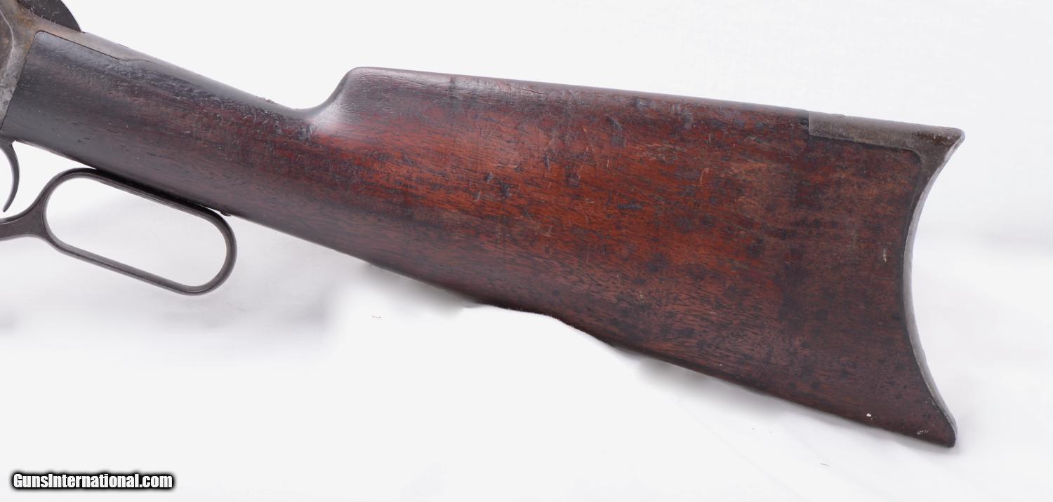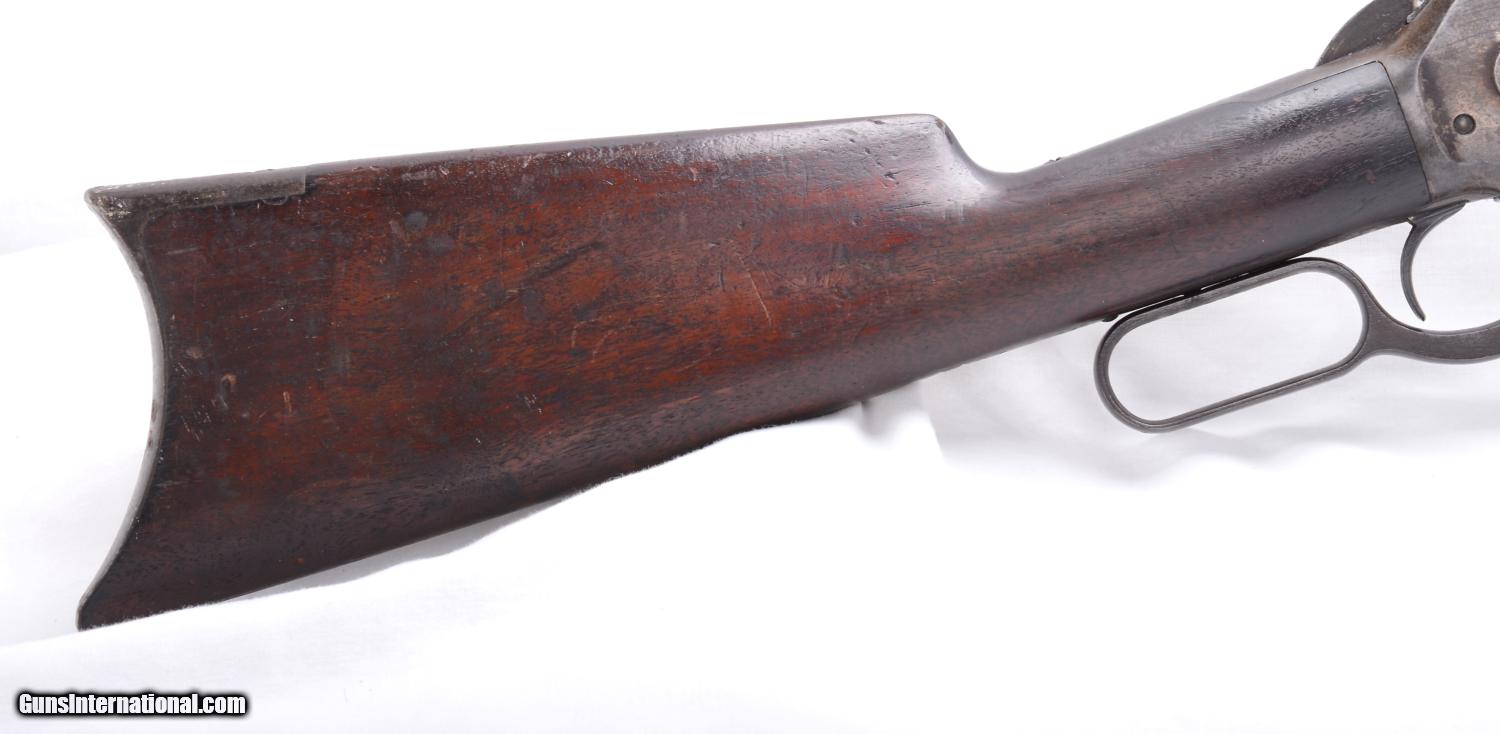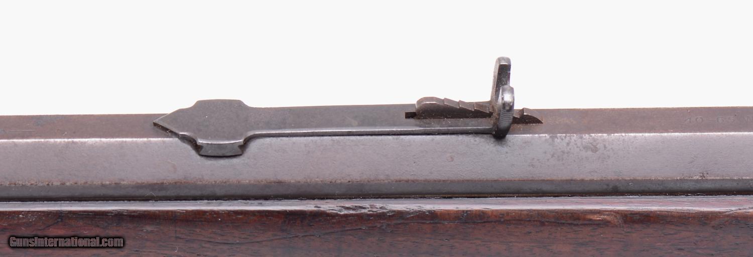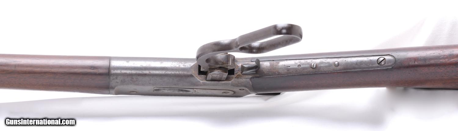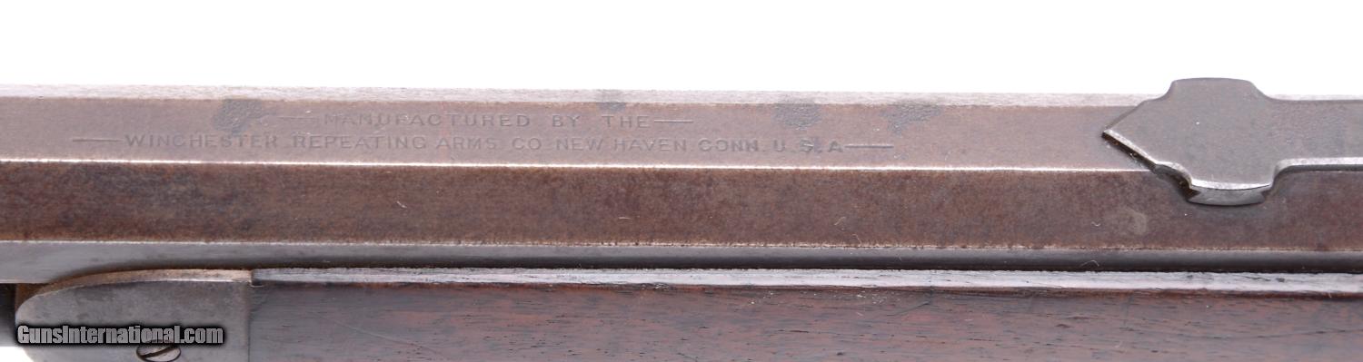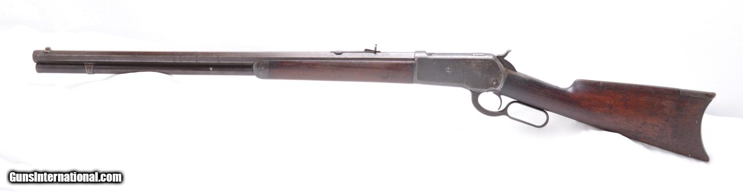 Description: Winchester 1886 rifle in .40-65. This rifle was made in 1893. It is a standard '86 of the timel, 26" octagon barrel, full length magazine tube, crescent steel butt, etc. It is 100% original with the metal showing an overall antique "browning" and the wood finish, although still there, has dulled over the last 122 years! Mechanically it is very sound and the action is smooth and strong. The bore is strong, the rifling prominent but there is some uniform "frosting" and a little pitting...very shootable. No cracks in the wood, in fact not even a significant "ding" or dent. Original sights. All in all a nice original example of an 86. SOLD Antique: Yes |