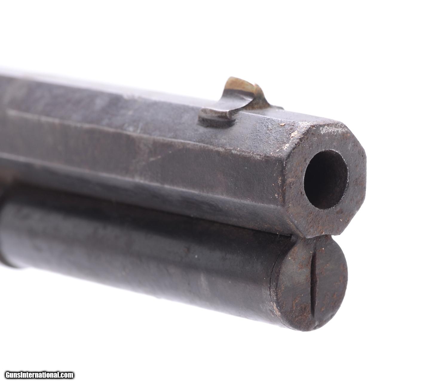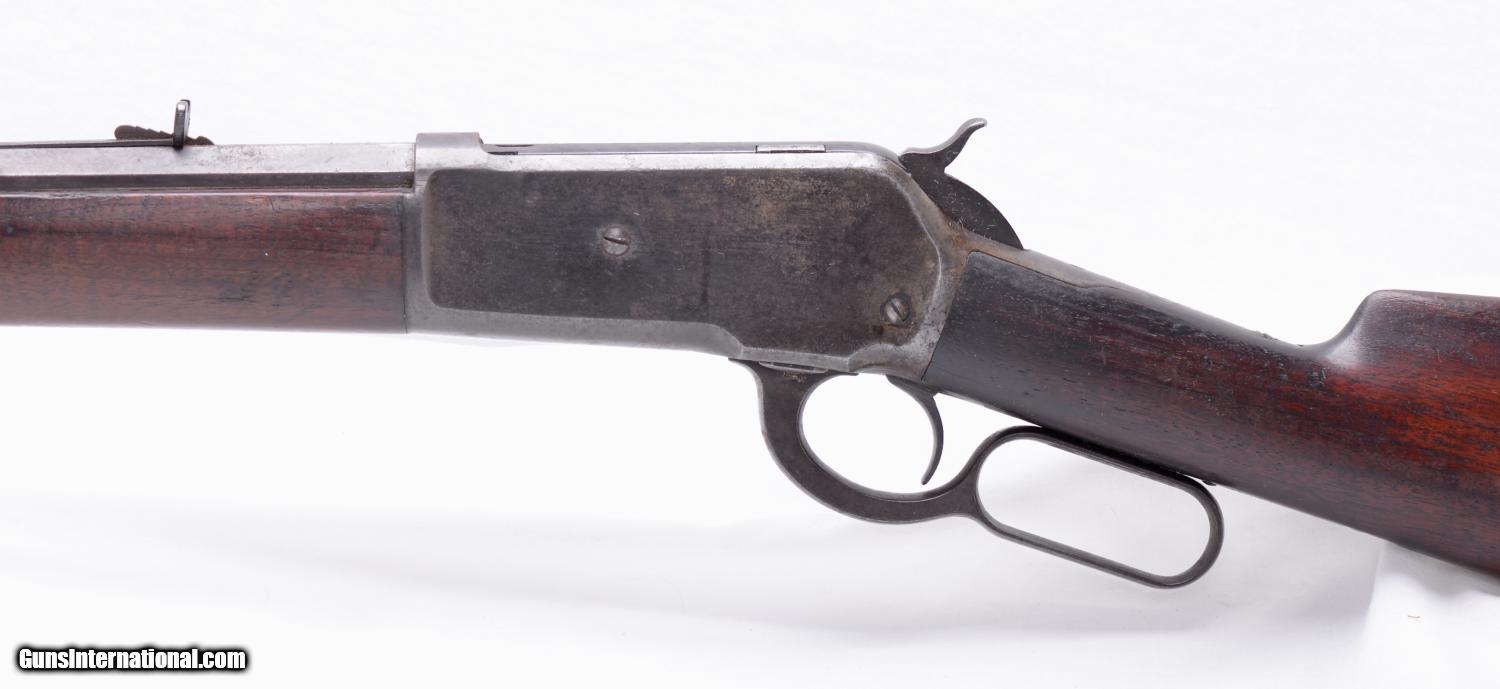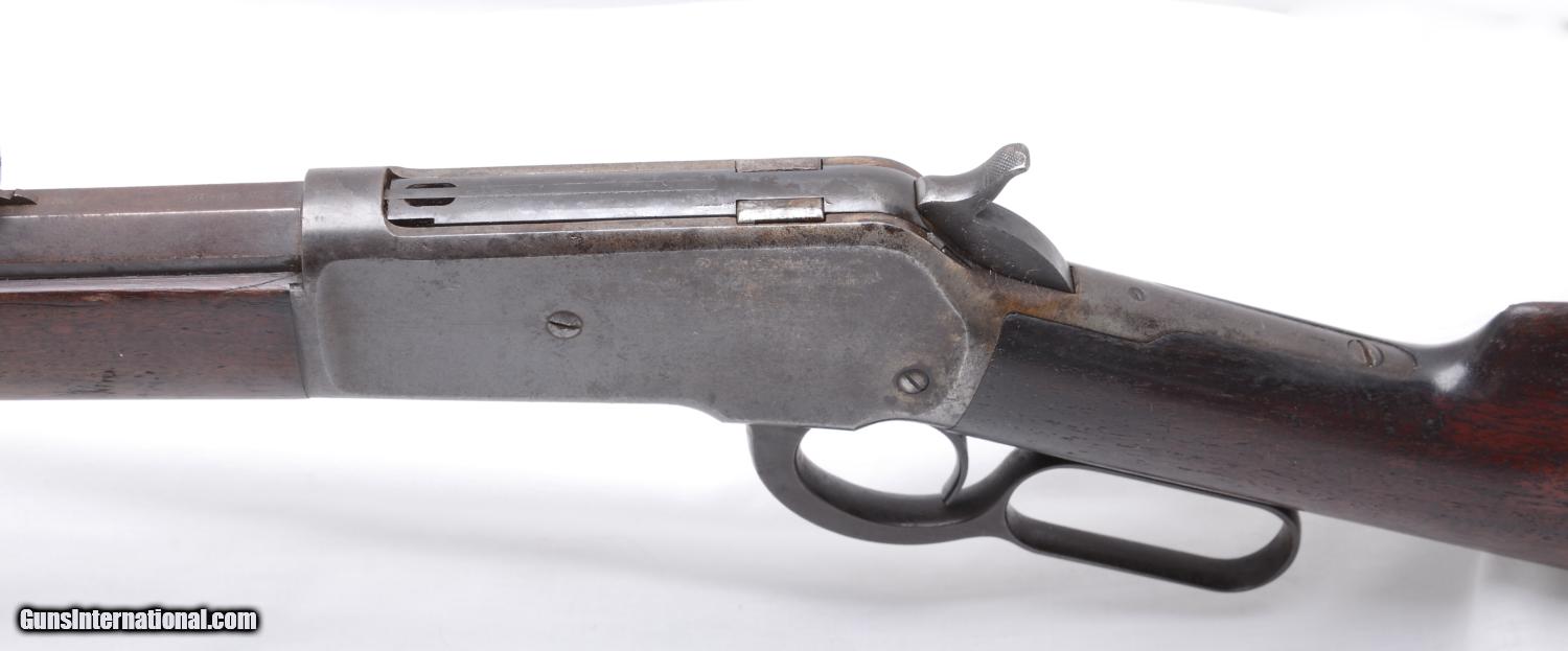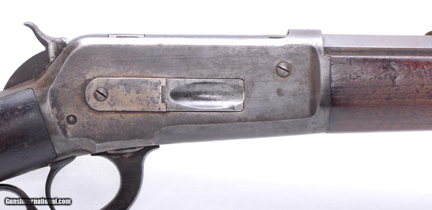 Description: Winchester 1886 rifle in .40-65. This rifle was made in 1893. It is a standard '86 of the timel, 26" octagon barrel, full length magazine tube, crescent steel butt, etc. It is 100% original with the metal showing an overall antique "browning" and the wood finish, although still there, has dulled over the last 122 years! Mechanically it is very sound and the action is smooth and strong. The bore is strong, the rifling prominent but there is some uniform "frosting" and a little pitting...very shootable. No cracks in the wood, in fact not even a significant "ding" or dent. Original sights. All in all a nice original example of an 86. SOLD Antique: Yes |