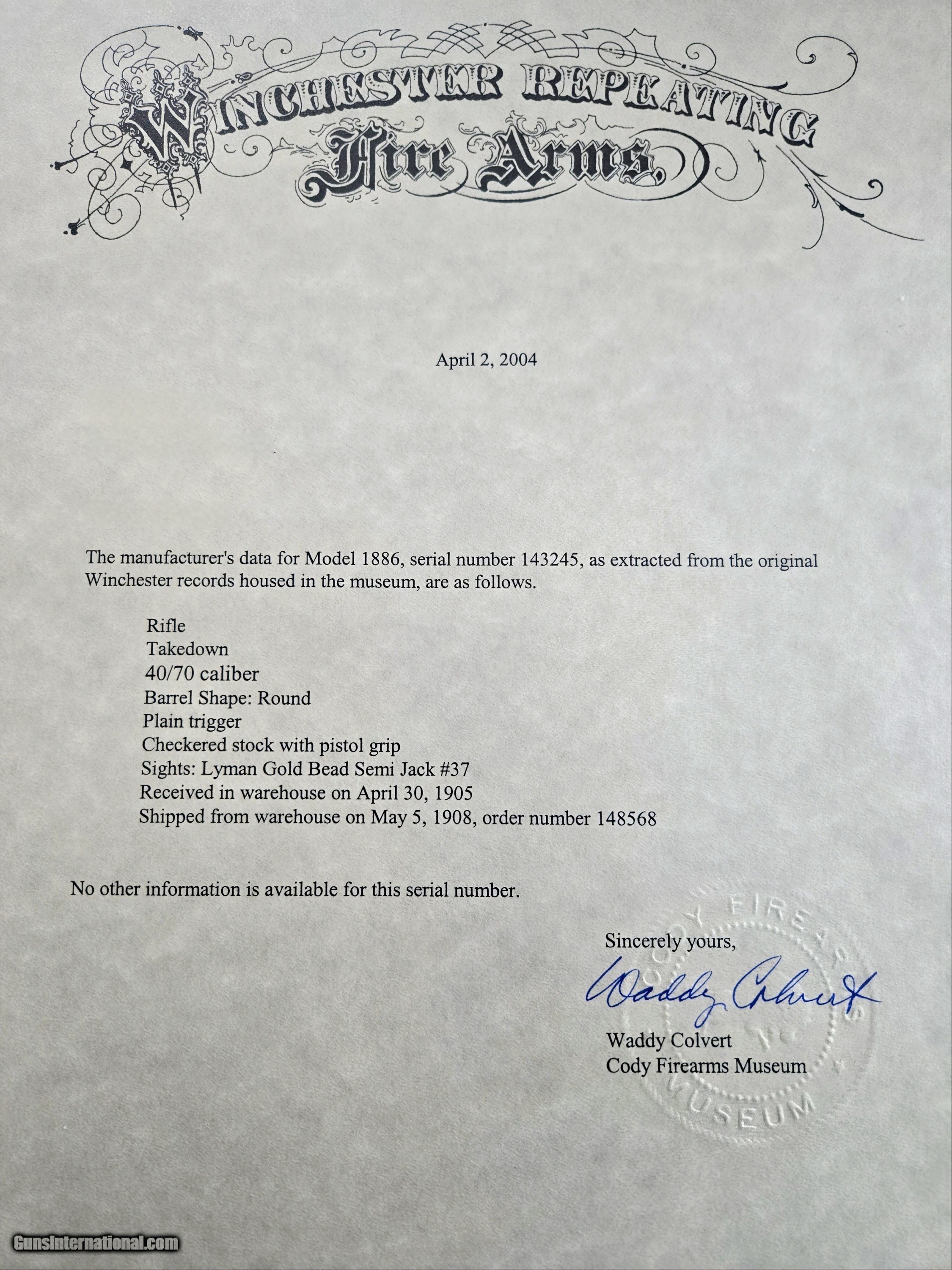 Winchester 1886 40-70 WCF Deluxe Takedown w/ Factory Letter