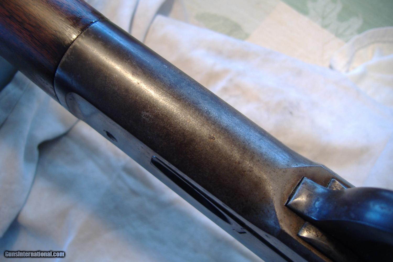 Description: Especially nice 1886 Cal 40-82. Ser #19591, manufactured 1889 third year of production. Case coloring is starting to fade but most of it is still visable on hammer, receiver, and lever. Blueing is nice overall. Gun has the 26" barrel. Bore is excellent with prominent rifling. action is nice and tight and mechanically perfect. Wood is in very good shape with normal handling marks for a 120 year old gun. Has one small scrarch on the magazine tube. Gun shoots straight as I ran a couple of rounds through it just to make sure it would go bang. The nice thing about this gun is it has never been messed with. 100% original. You would be hard pressed to find another 1886 as nice as this. A great gun for any Winchester collection. Price is $2,999. Make me an offer. Antique, can be shipped directly to you. SOLD pending funds. SOLD Antique: Yes |