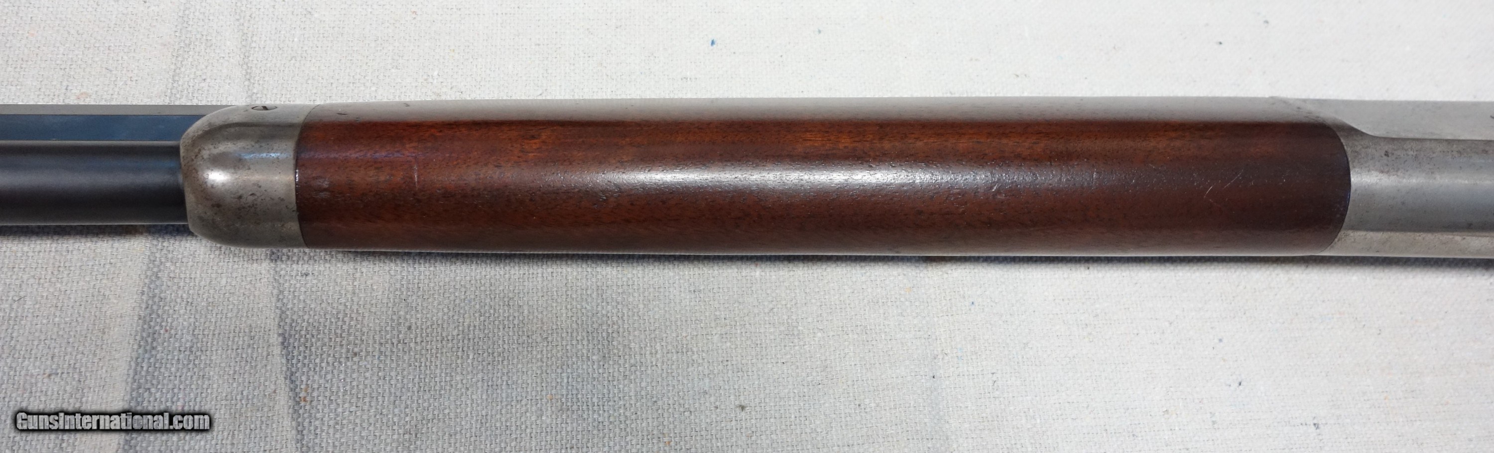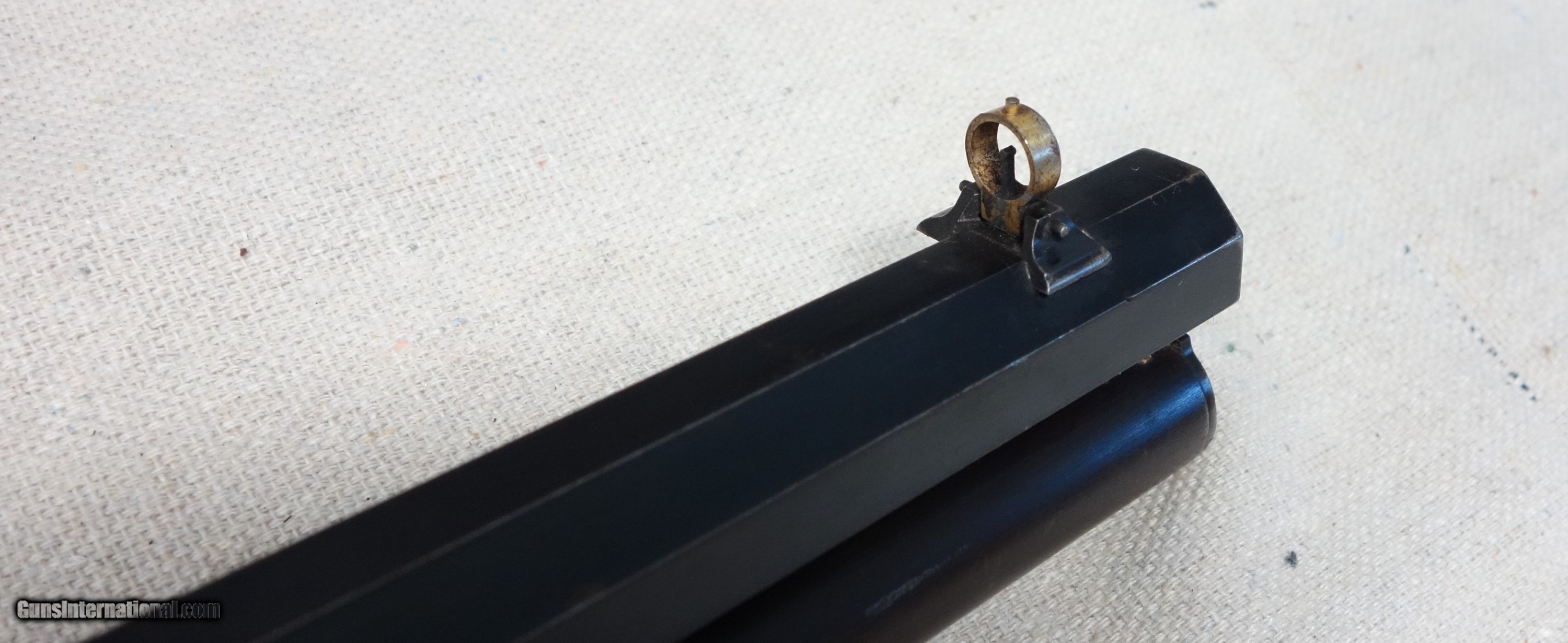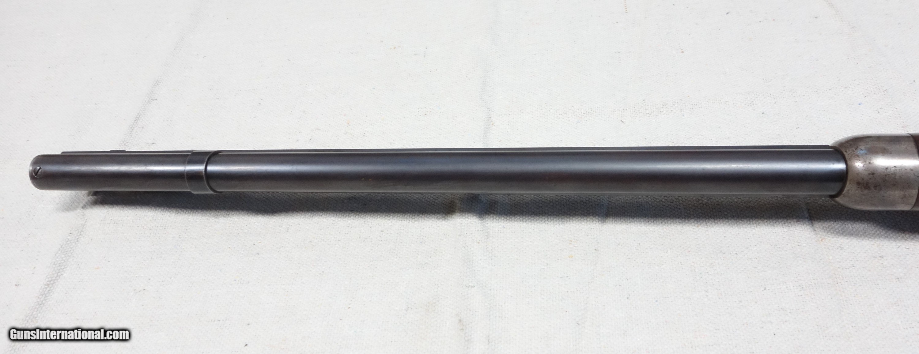 Description: ***SOLD*** Very sharp looking big bore Winchester 1886 in the desirable 45-90 caliber. S/N 35918 made in 1889. 26" Octagon barrel with an excellent bore. Full length mag tube. Crescent buttplate. Excellent condition throughout with strong original finishes and quite vivid case colors remaining on the receiver walls. Nice, even bluing with no notable discoloration or browning. The wood finish shows some light handling marks, dings and scrapes but presents very well in hand. The original sights consist of a Winchester folding combination 5B up front and a Winchester sporting rear. As mentioned, the bore is excellent, bright and shiny throughout with strong rifling, and the mechanical functions are as crisp and strong as new. A really nice '86. Comes complete with a supporting Cody Museum research letter. SOLD Antique: Yes |