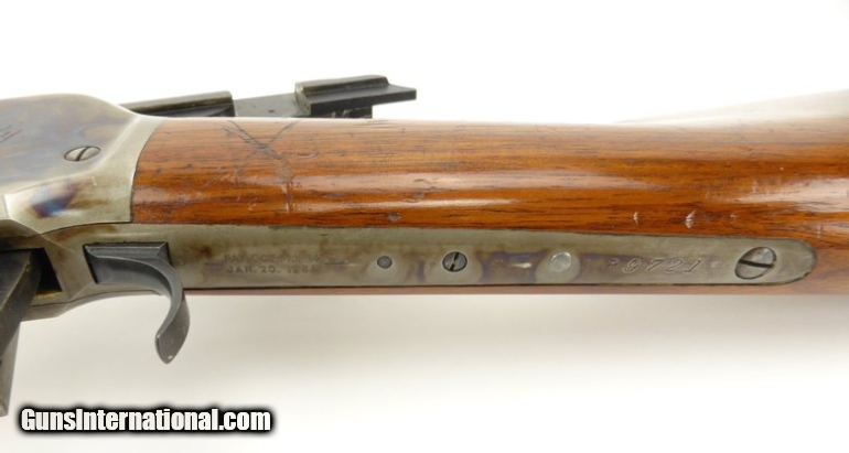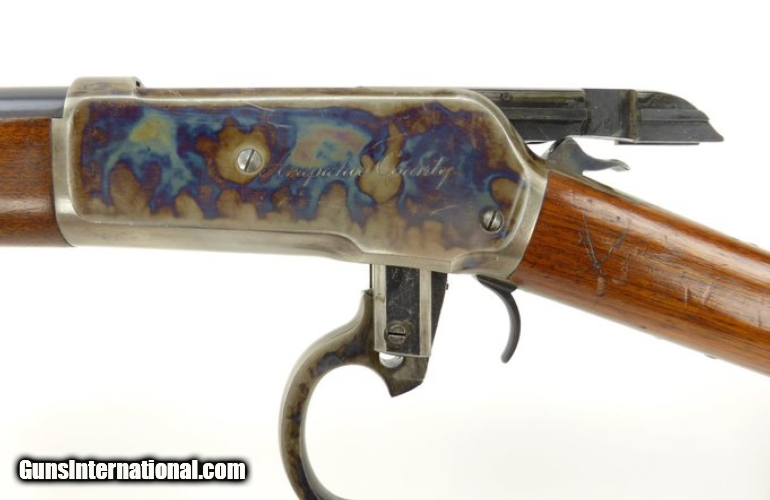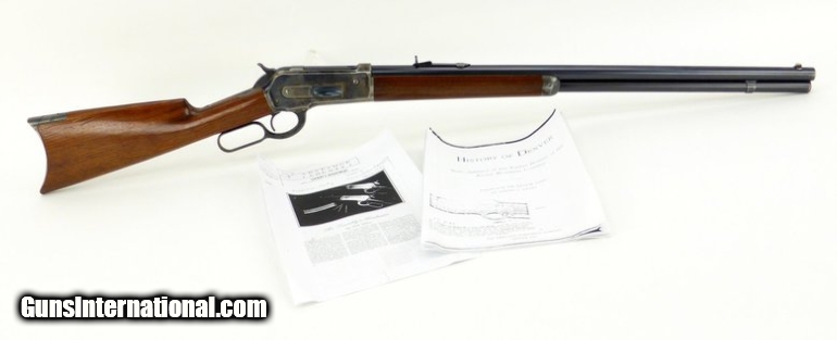 Description: Winchester 1886 Arapahoe County rifle. Made in 1894. 40-82. Beautiful gun with 99% of the original blue on the barrel. 85% bright case colors on the underside of the frame. Even the buttplate has visible case colors. Wood is excellent. Left hand side of the frame is factory inscribed ""Arapahoe County"". These guns were ordered after a clash with the governor of Colorado and the city hall of Denver which was also the county seat. State guard was called the 500 citizens of Denver were hastily deputized in order to gaurd the city from the state. The governor ultimately backed down. Accompanying this rifle is documentation on Arapahoe County marked guns. Very fine Historical piece! SOLD |