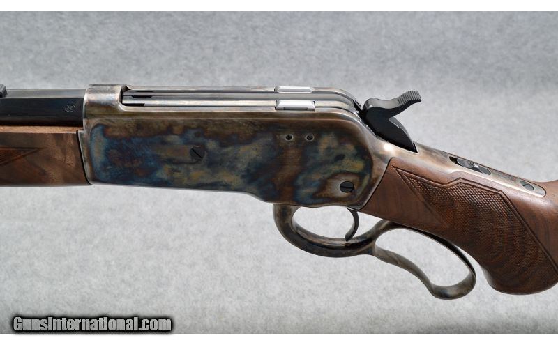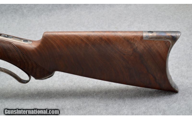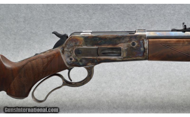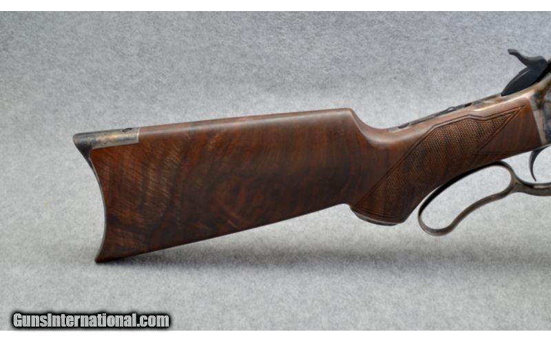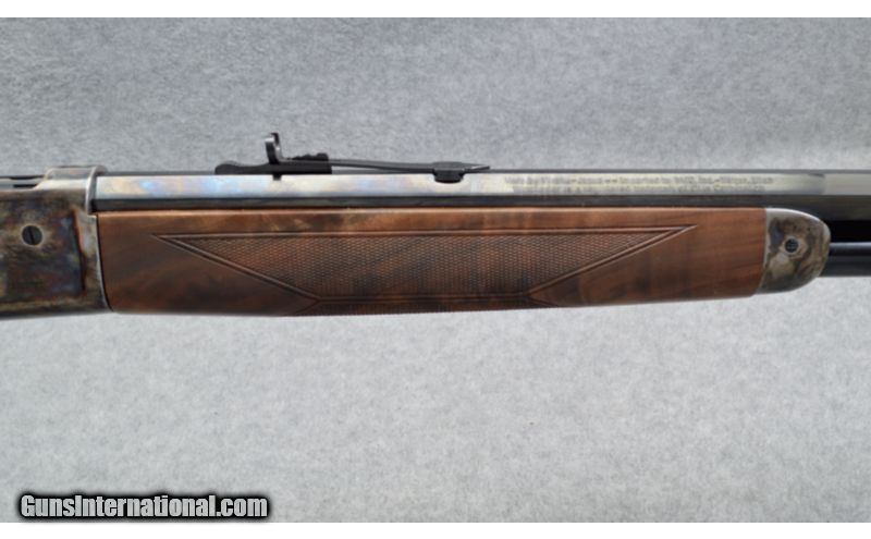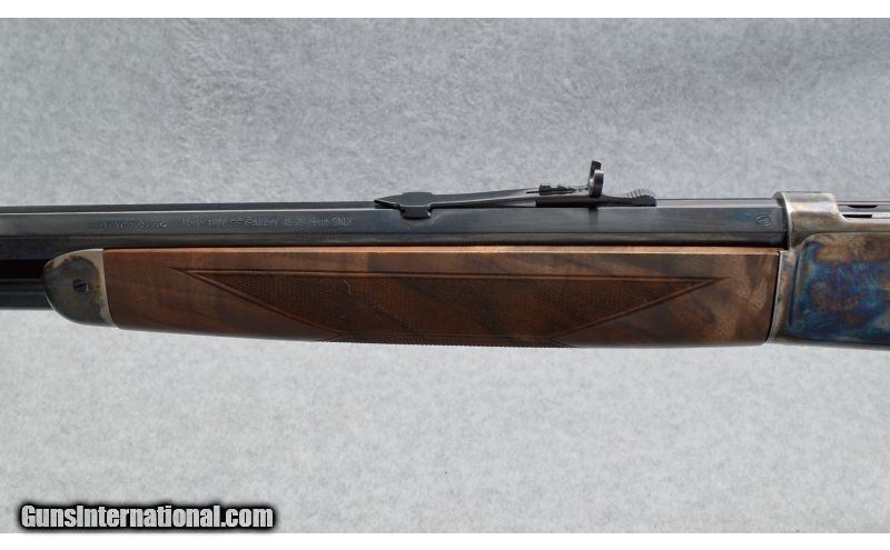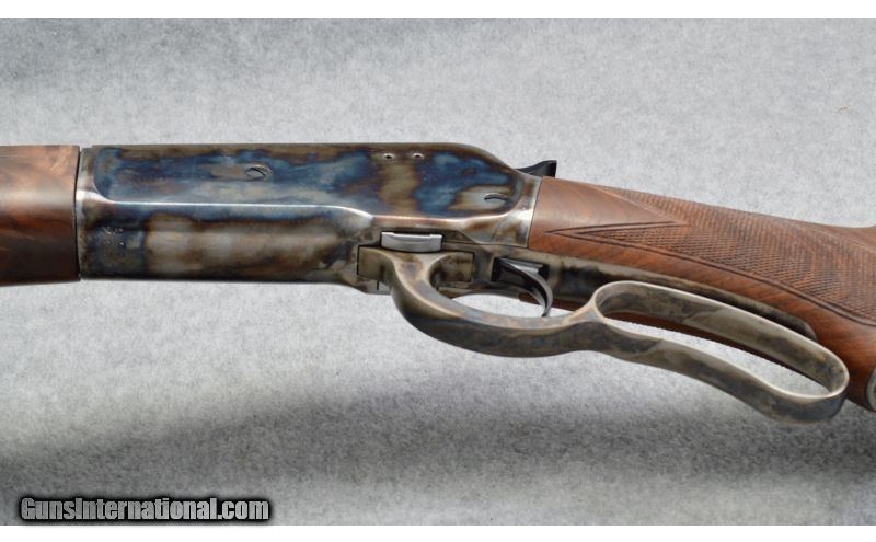 Description: Like new modern production Winchester rifle chambered in the powerful .45-70 Government cartridge. This rifle would make an excellent shooter or collectors piece. All metal on the rifle except for the barrel and magazine tube is completely color case hardened. SOLD Caliber Info: .45-70 Govt. Metal Condition: Excellent, like new. Wood Condition: Excellent, like new. Bore Condition: Excellent, like new. Barrels: 25 inch octagonal barrel Stock: Pistol grip with checkering and Winchester cap. Stock Dimensions: LOP: 13 ¼ inches Fore End: Straight hardwood with checkering and color case hardened steel cap. Butt Pad: Color case hardened crescent steel butt plate Weight: 9.5 LBS Sights: Rear semi-buckhorn with front blade and brass bead Extras: Factory box Item Location: Farmington, UT |