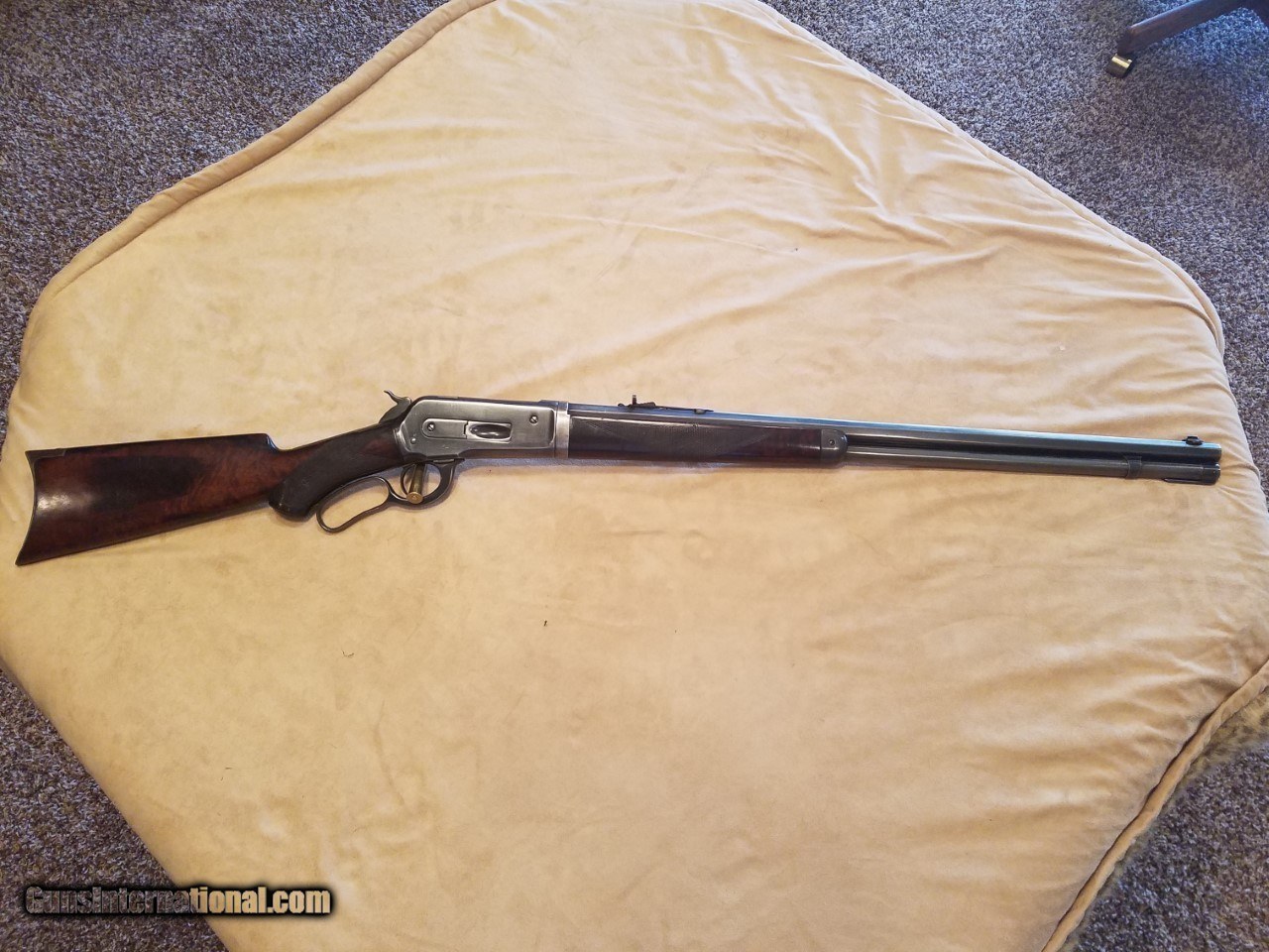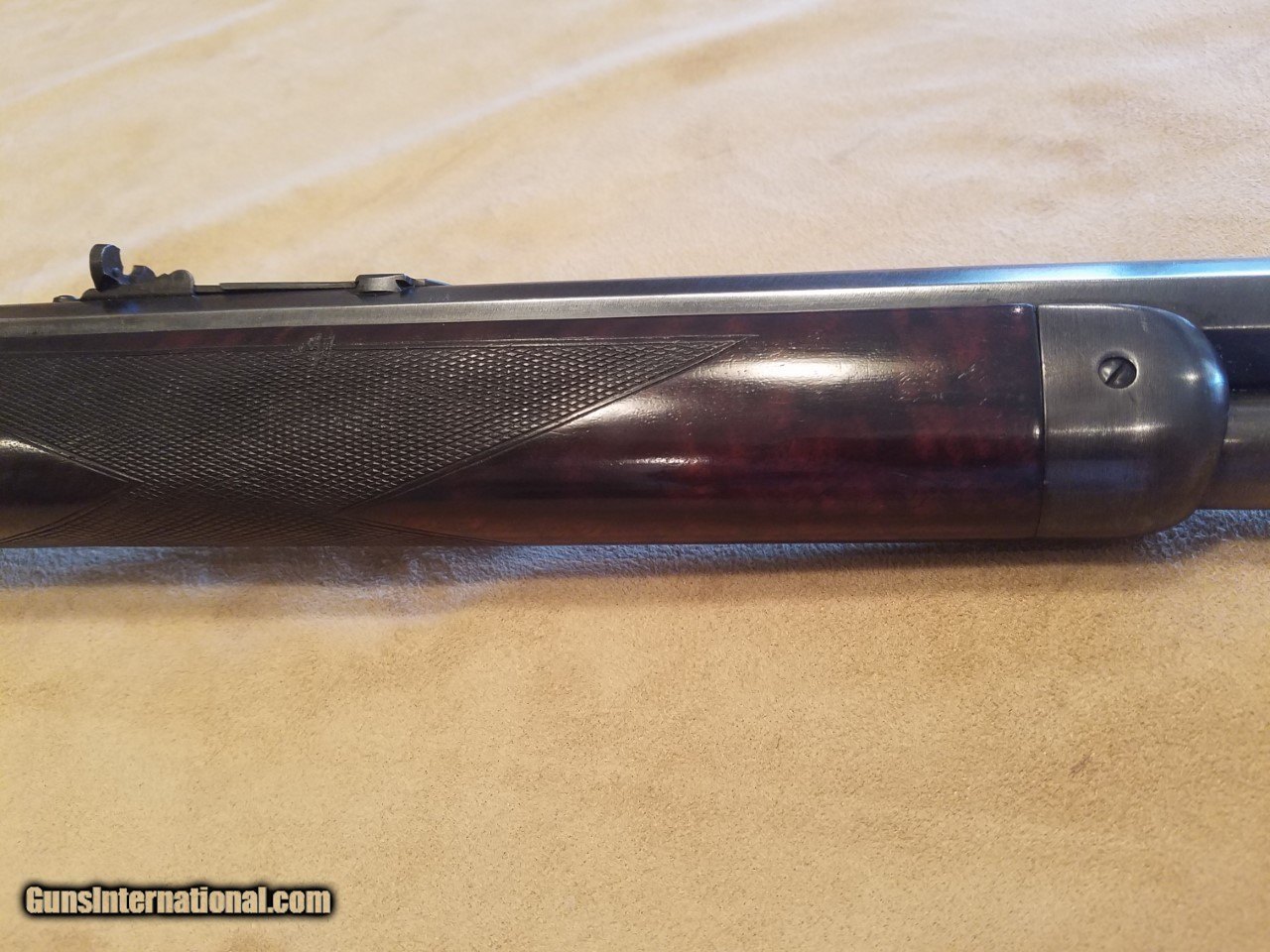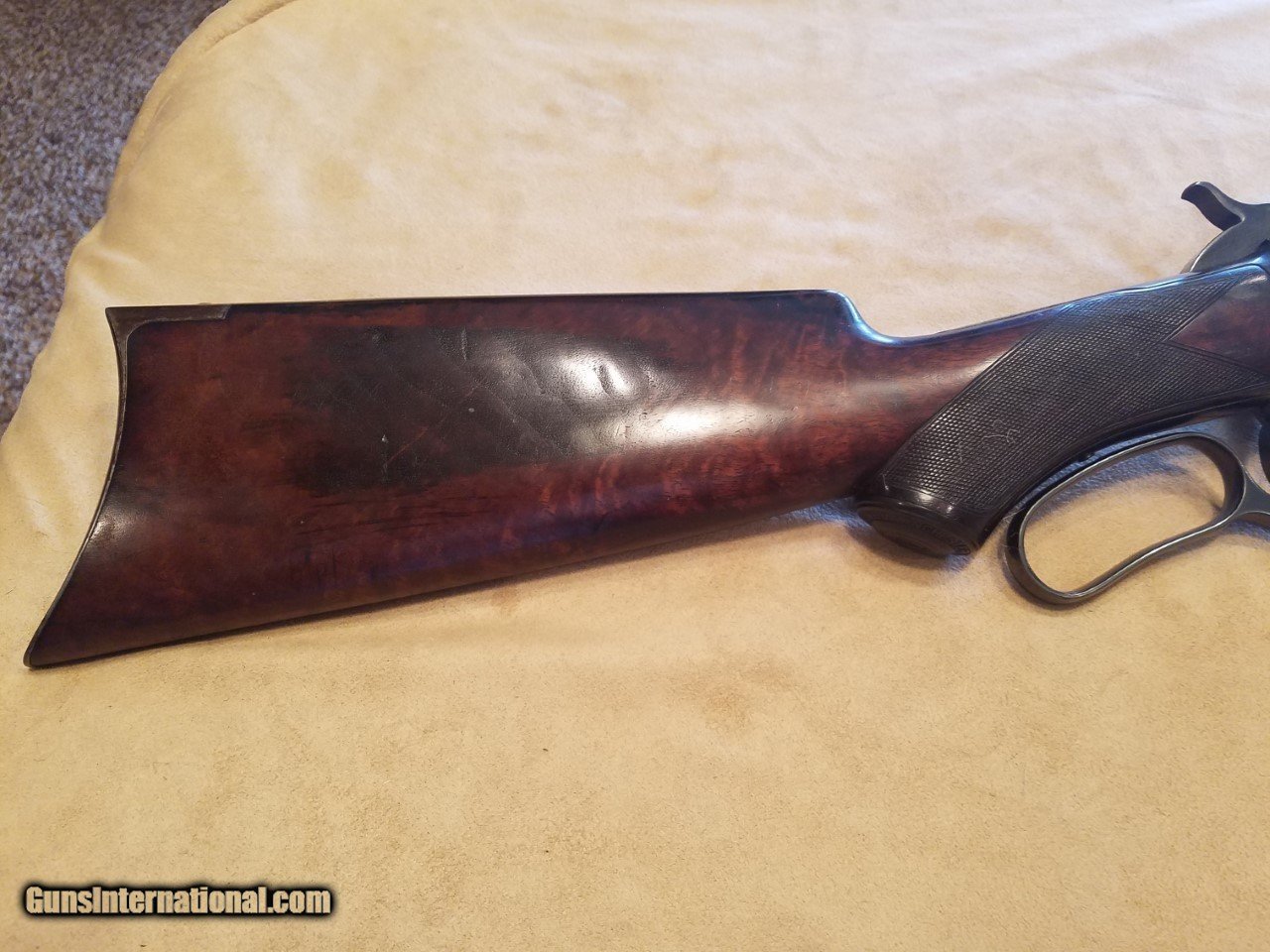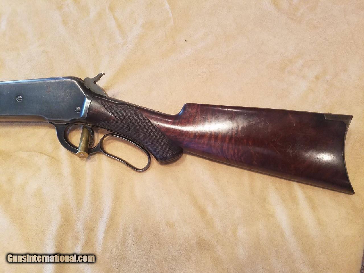 Description: The 1886 Winchester had production numbers under 1000 for the Deluxe checkered wood and pistol grip stocks this one has. The 45/70 caliber is also a sought after caliber. The take down option on this rifle was not available till 1893. The wood is in good condition however has a dark spot on one side. There is some wear on the edges and checkering from handling and use. Bore is very good. Action and take down all work good. Cody Letter included. $9500. includes shipping and handling. Thank You. SOLD Antique: Yes Manufacturer: Winchester Model: 1886 Serial Number: 114617 Barrel Type: octagon Manufacture Date: 1898 |