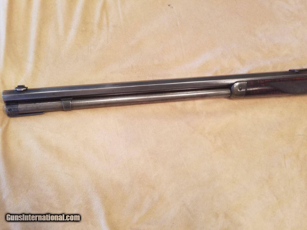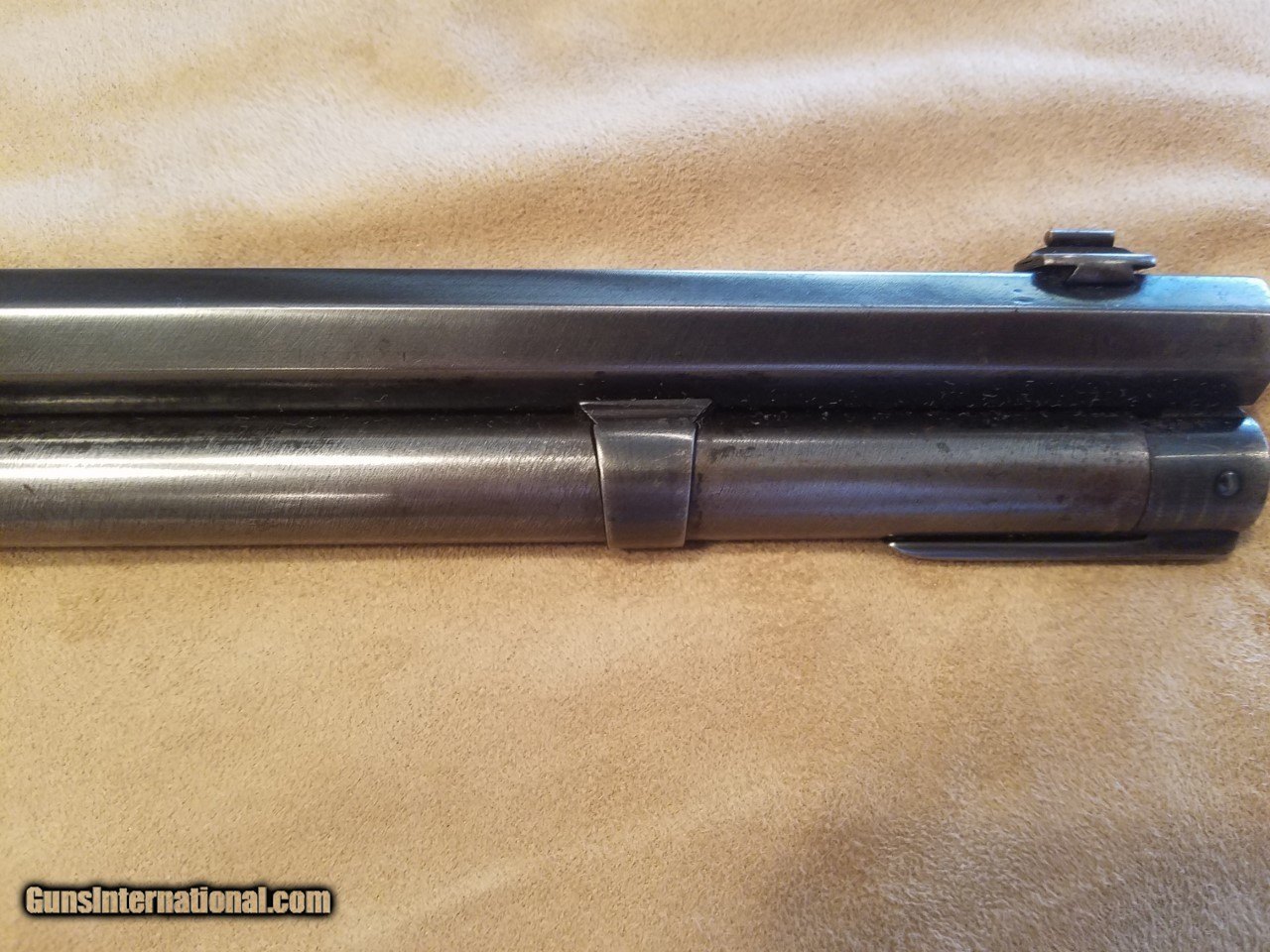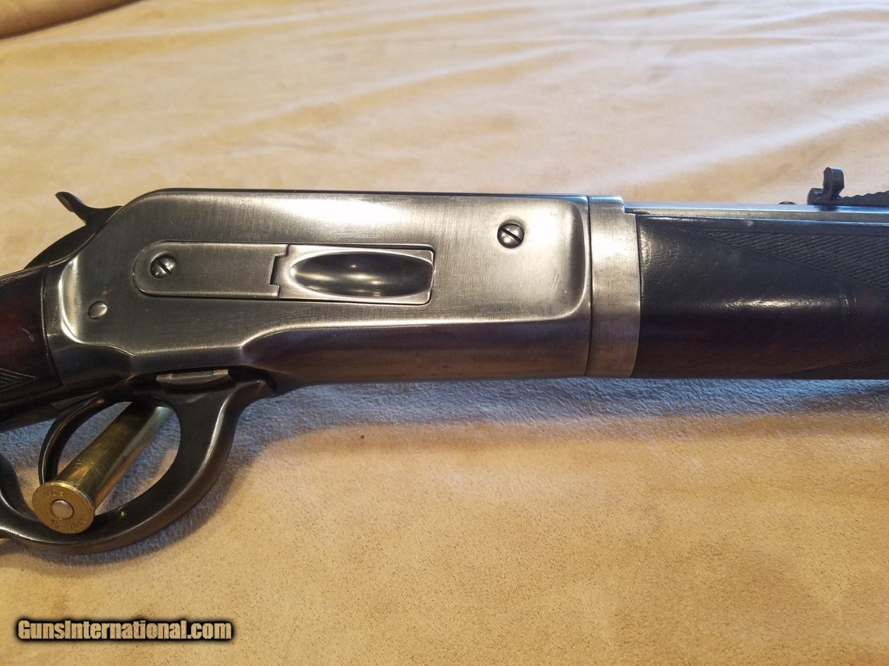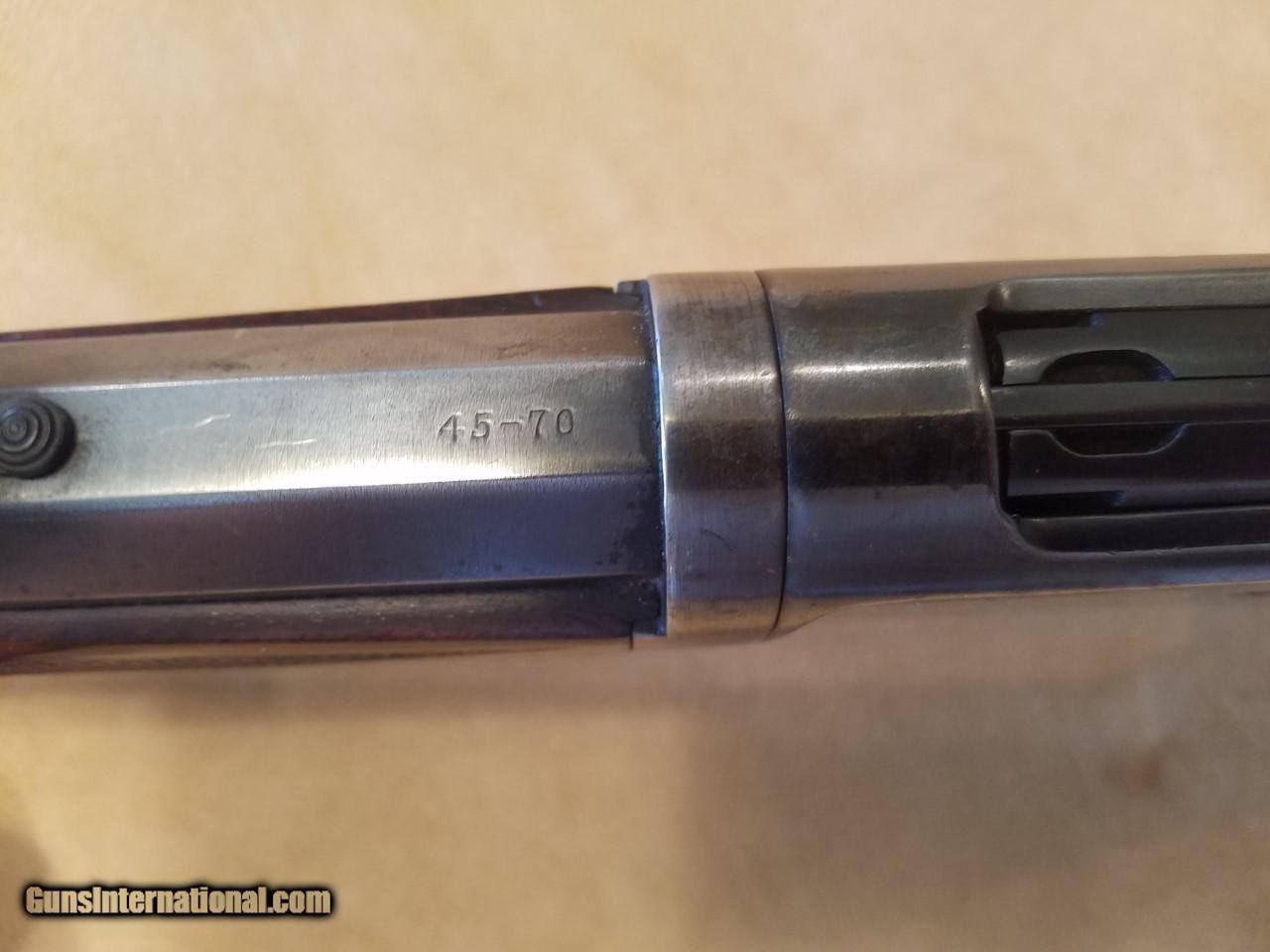 Description: The 1886 Winchester had production numbers under 1000 for the Deluxe checkered wood and pistol grip stocks this one has. The 45/70 caliber is also a sought after caliber. The take down option on this rifle was not available till 1893. The wood is in good condition however has a dark spot on one side. There is some wear on the edges and checkering from handling and use. Bore is very good. Action and take down all work good. Cody Letter included. $9500. includes shipping and handling. Thank You. SOLD Antique: Yes Manufacturer: Winchester Model: 1886 Serial Number: 114617 Barrel Type: octagon Manufacture Date: 1898 |