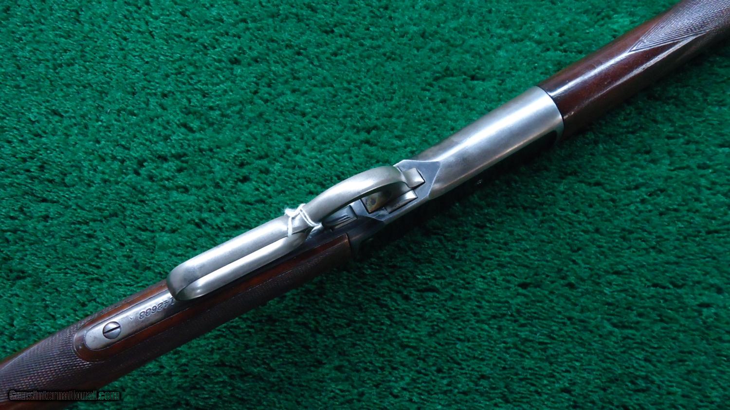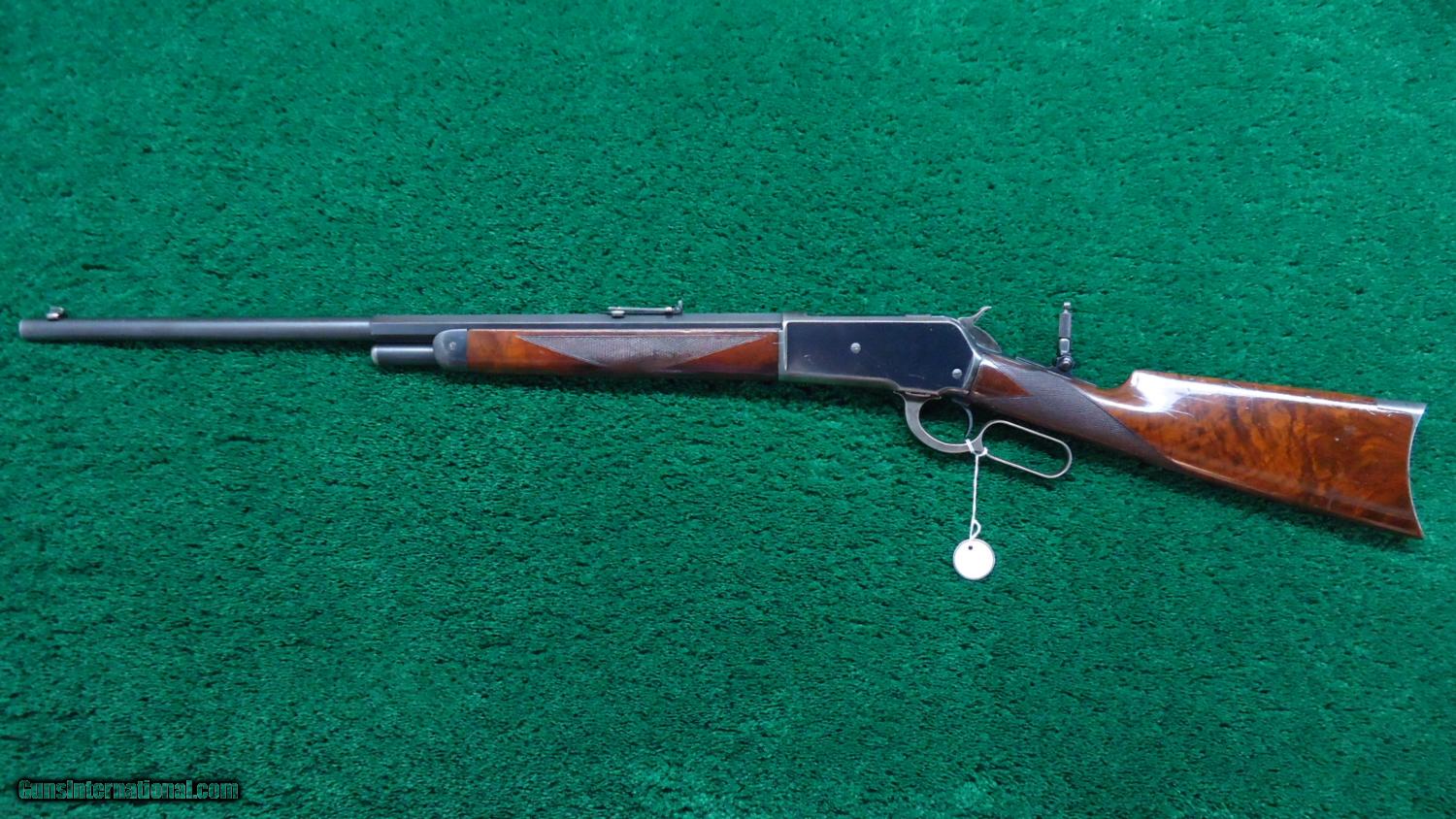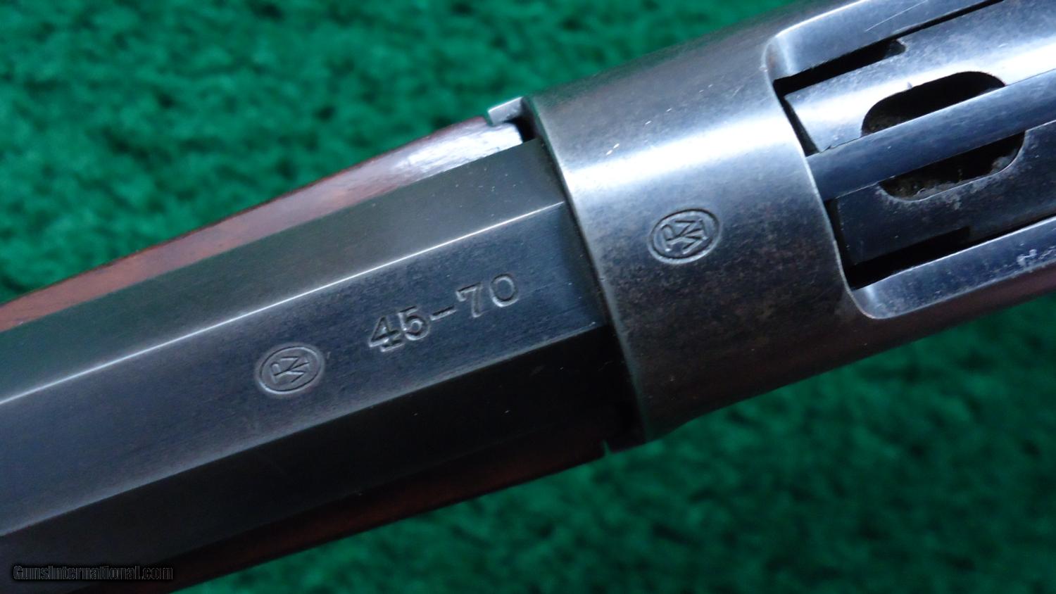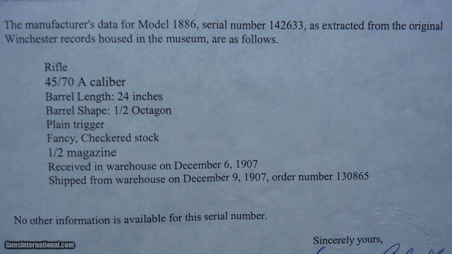 Description: A rare special order gun with 1/2 round 1/2 oct bbl, 24" bbl, deluxe wood with checkering and desirable 45-70 cal. Beautiful looking rifle with nearly all finish remaining at about 95% bbl finish and the sides of the receiver at about 95%. Some wear at the carry point on the bottom. Nice clean smooth metal. Still some case colors remaining on hammer and lever. Very eye catching deluxe wood which is in superb condition. No cracks or losses. Normal handling marks and that's it. Just as nice on the inside with a VG+ bore. Comes with a Factory Letter. Good looking good collectible Winchester! Leroy Merz Antique Firearms specializes in antique and vintage Winchesters and other fine American firearms. Since 1965 Mr. Merz has taken part in the world of firearms and has been a contributor to many well known reference books. Just recently we mailed the 126th edition of our privately-published catalog. We have hundreds of additional guns in every price range at our home online. Search for Merz Antiques in google. SOLD Curio/Relic: Yes |