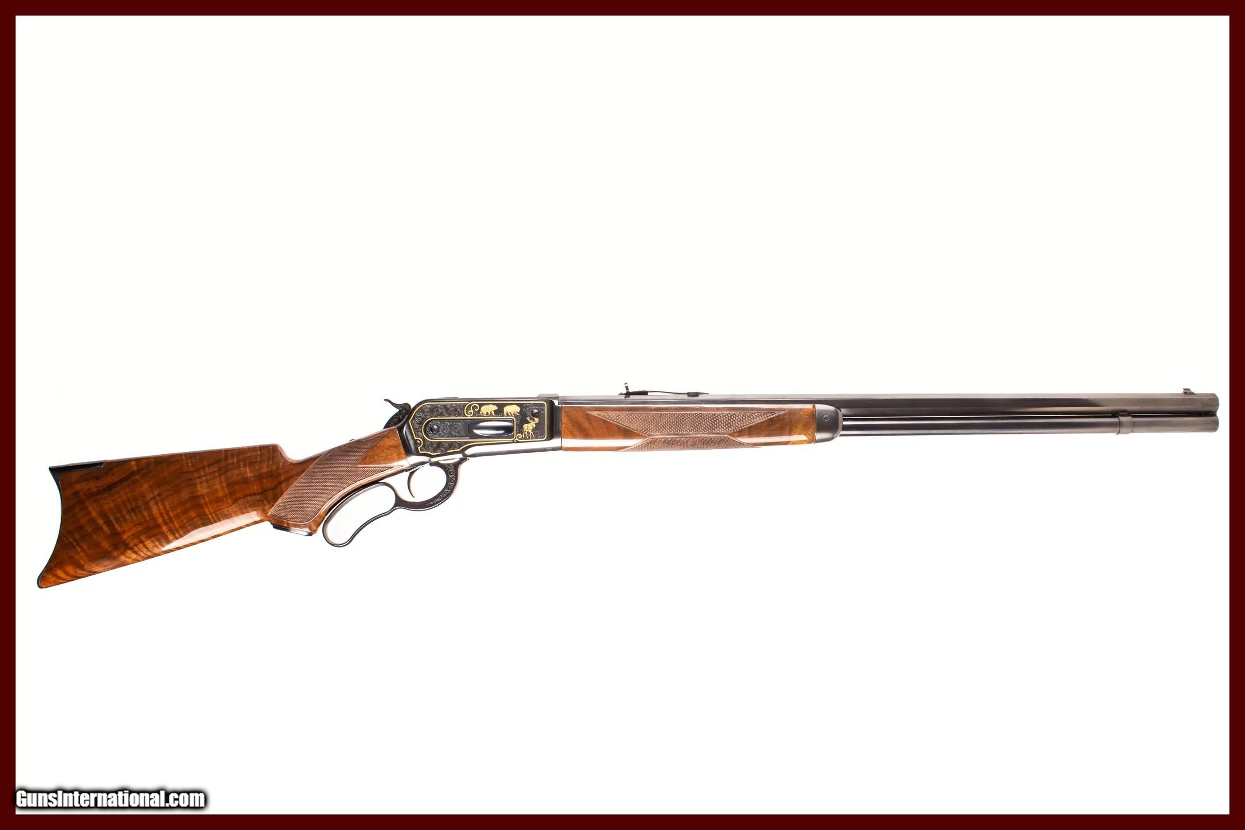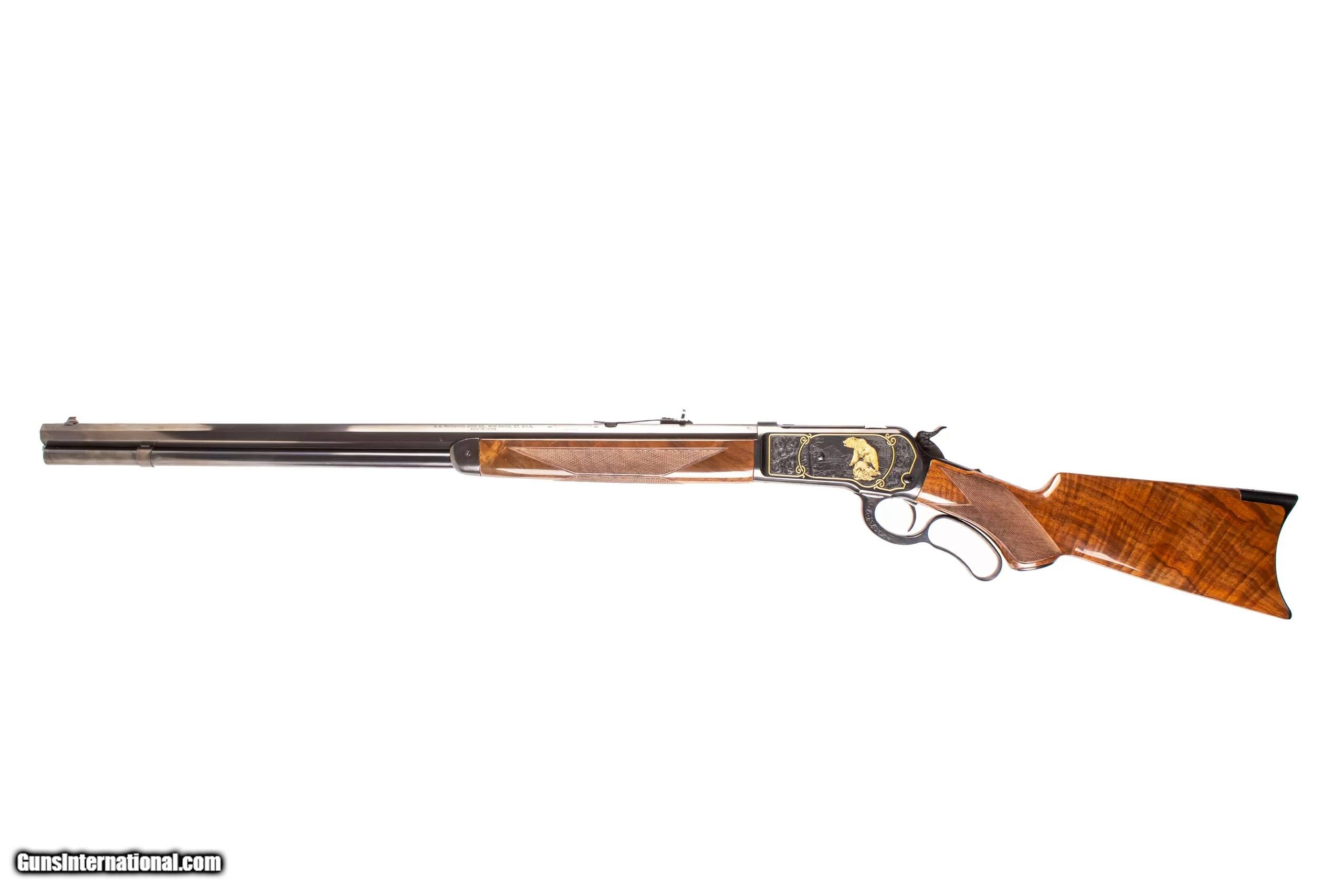 Description: Winchester Model 1886 High Grade Made in Japan chambered in 45-70 Government with a 26 inch octagonal barrel, mirror-shine bore with pristine rifling and excellent working action as this rifle is unfired. This rifle comes with a box and features a buffalo and grizzly bear on the left side of the receiver with grizzlies stalking a moose on the right side of the receiver complimented with light engraving and golden accents. The NRA grading condition for this USED firearm is Perfect (Like New) We ship domestically in the United States. Additional shipping rates apply to Alaska and Hawaii. Dury's Lifetime Warranty: All firearms purchased from Dury’s Gun Shop, NEW or USED, are covered by a lifetime warranty. We will repair or replace, at our discretion, any firearm purchased from Dury’s Gun Shop, Inc. for as long as it is owned by the purchaser. This warranty is not transferable. WE BUY GUNS! NO COLLECTION TOO BIG OR SMALL FOR OUR GUNS INTERNATIONAL CUSTOMERS ALL OF OUR FIREARMS CAN BE PURCHASED DIRECTLY FROM OUR DURY'S GUNS SITE ! SOLD Manufacturer: Winchester Model: 1886 High Grade Caliber Info: 45-70 Government Barrels: 26inches |