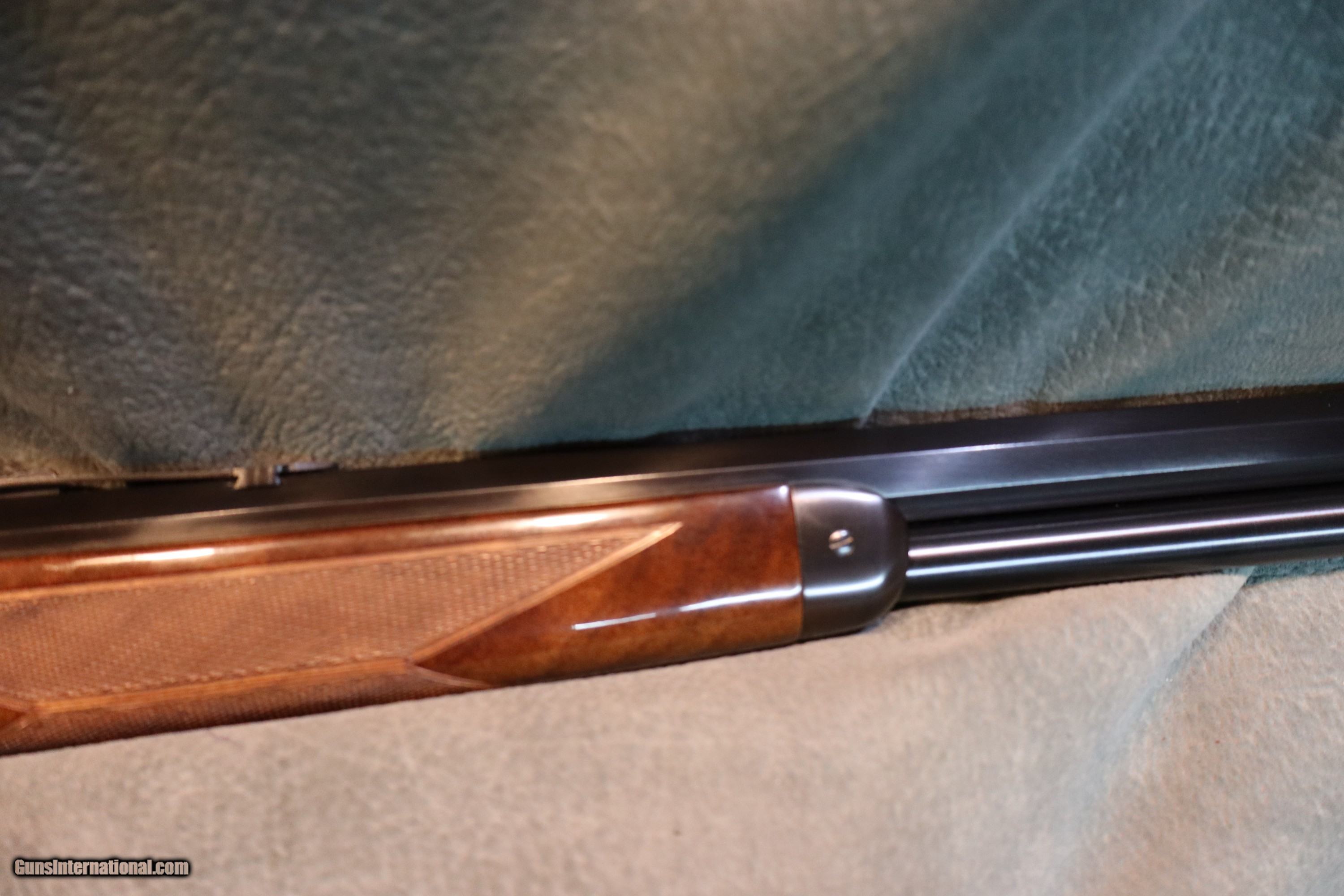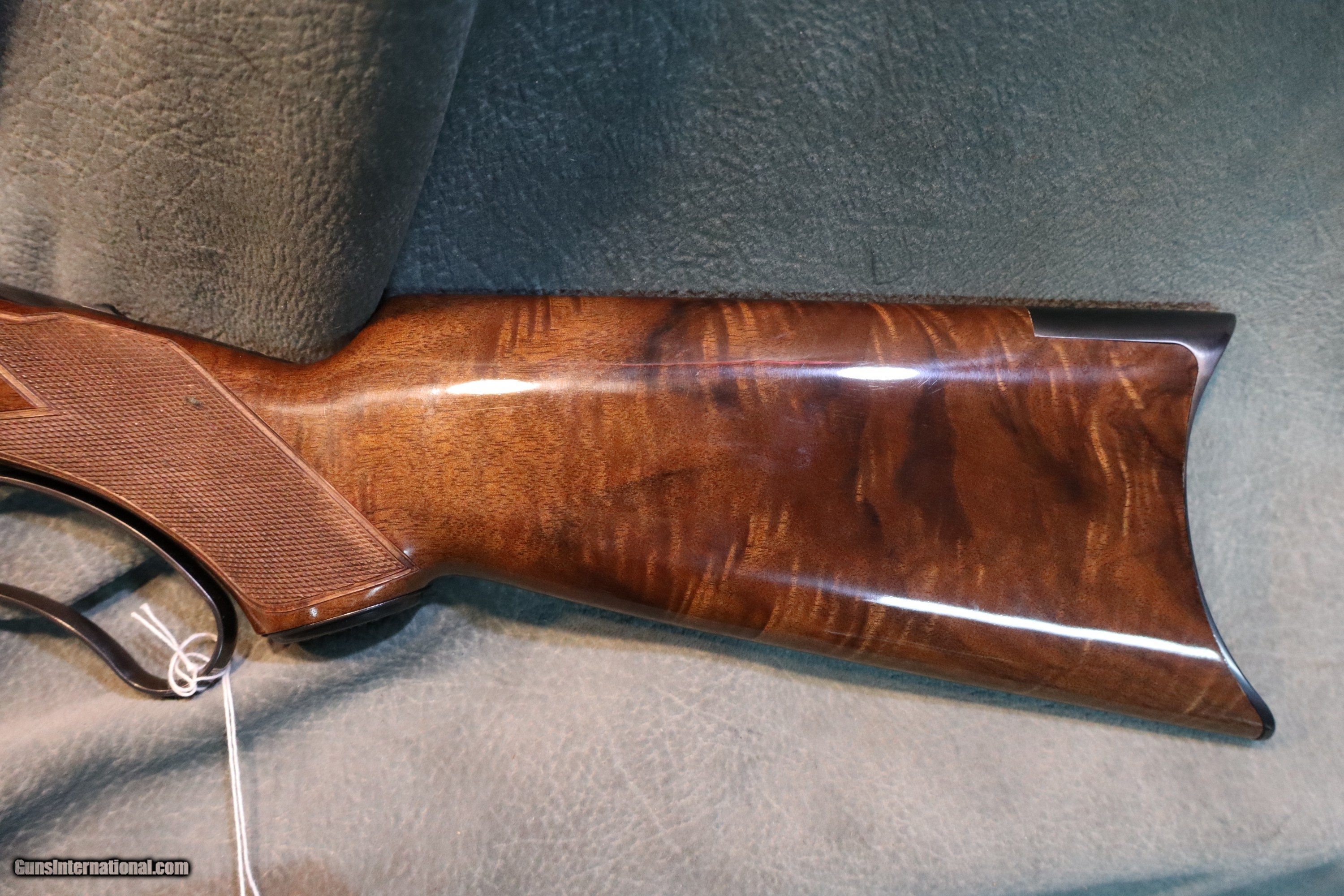 Description: Winchester 1886 High Grade Deluxe Rifle 45-70 26" octagon barrel,highly figured checkered walnut stock,engraved receiver with gold bears and elk,excellent condition with owners manual. SOLD |