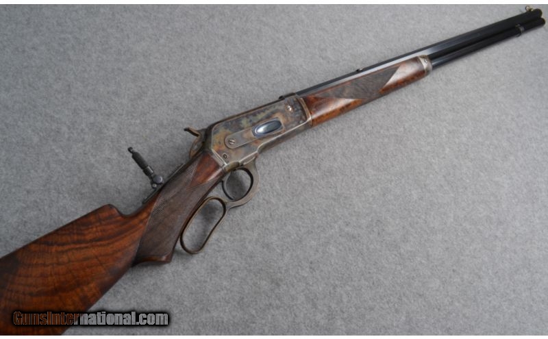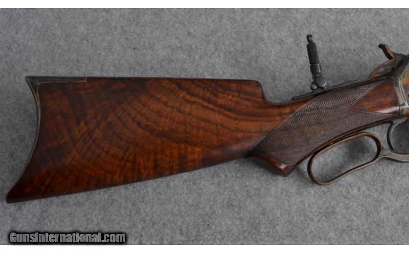 Description: Nice old representation of the Winchesters of the west. Finish completely gone but a nice patina remains. Original wood with wear from the years of use. Beautiful Rifle. SOLD Caliber Info: 45-90 Govt. Chambers: lever action rifle with 5 round tube magazine Metal Condition: Color case hardened receiver, Nice finish on barrel Wood Condition: Beautiful wood on stock and fore arm Bore Condition: Excellent Barrels: 26 Inches Stock: Fancy XX walnut Sights: Flip up peep rear sight / Pin and hooded pin front sight Item Location: Lone Tree, CO |