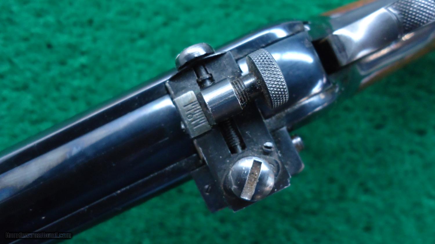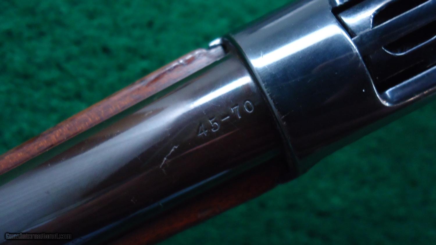 Description: This is the later version that had the 22" lighter weight bbl. Cal 45-70. Full mag tube. Gun has been refinished. Receiver looks pretty good. Bbl has the plum color that some bluing turns to. Also the front is a later sight, blank in the rear dovetail and a Lyman receiver sight. I'm not quite sure if the wood has been refinished or not. It definitely has not been sanded and looks like the orig finish or maybe a very light coat put on years ago. It looks good. There is enough wear that it could possibly be orig. Very nice case colors on the hammer and good case colors on the lever. One very good thing about this rifle is the bore- it's great. This would be a very good vintage hunting rifle. Leroy Merz Antique Firearms specializes in antique and vintage Winchesters and other fine American firearms. Since 1965 Mr. Merz has taken part in the world of firearms and has been a contributor to many well known reference books. Just recently we mailed the 126th edition of our privately-published catalog. We have hundreds of additional guns in every price range at our home online. Search for Merz Antiques in google. SOLD Curio/Relic: Yes |