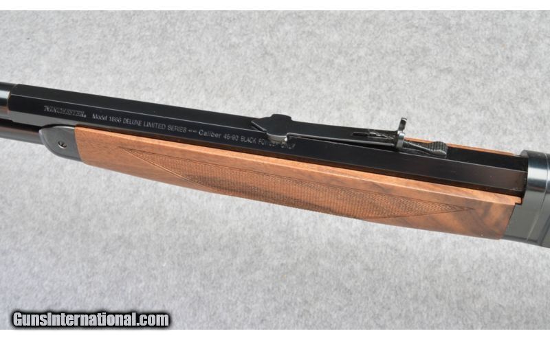 Description: Winchester Limited Series 1886 Take-Down Deluxe chambered in 45-70 WCF. Traditional take-down design with nicely polished blued metal surfaces and oil-finished, high grade walnut stock. Rifles stamped "45-90 Black Powder Only" but, will safely fire commercial, smokeless 45-70 and 45-90 loads. Limited production of only 201 rifles, created in partnership between Winchester/Miroku and leading firearms wholesaler Davidson's. New in Factory Box. SOLD Caliber Info: 45-90 WCF Metal Condition: New Wood Condition: New Barrels: 26 Inch, Half Round / Half Octagon Stock: Capped Semi-Pistol Grip , Checkered Grade III / IV Walnut Fore End: Steel capped checkered walnut Butt Pad: Steel Crescent Weight: 10 Lbs Sights: Sporting Open Sights Extras: Limited Production Of Only 201 Rifles Item Location: Buda, TX |