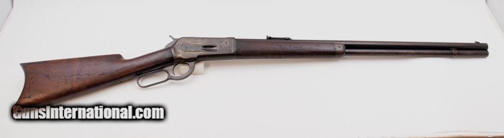 Description: Winchester 1886 MFG 1895 .45-70, 26" bbl, adjustable rear sight, dovetail front sight, original barrel bluing and receiver - butt plate - forend cap color case hardening are turning to a nice grey-brown patina, straight smooth butt stock - forend, and metal butt plate. Add 3% for Credit Card Shipping $30.00 SOLD |