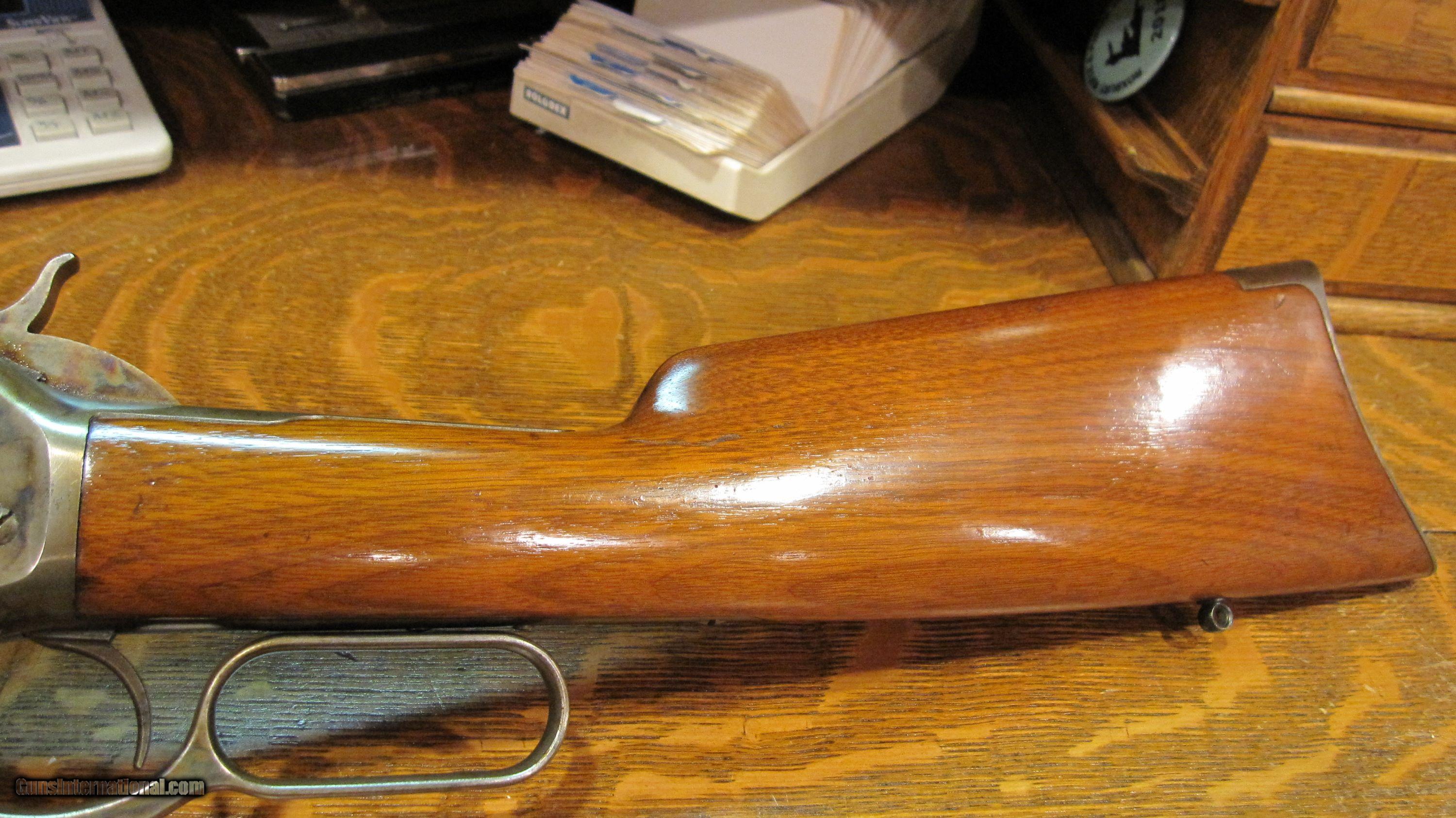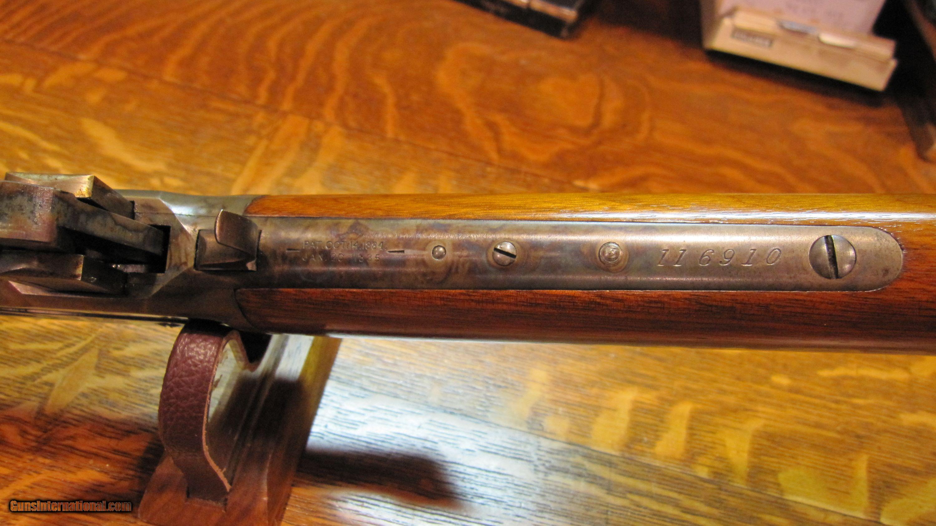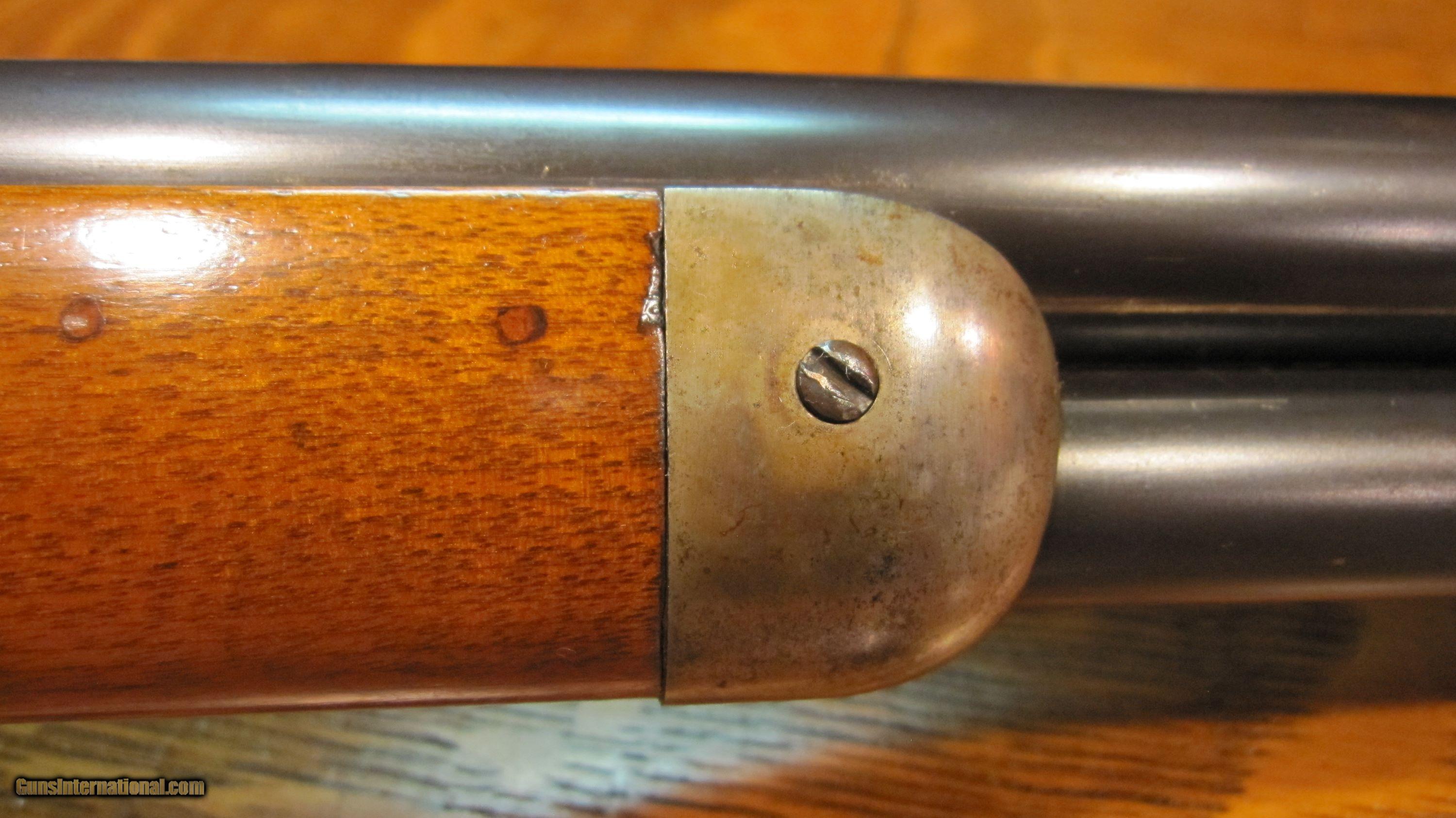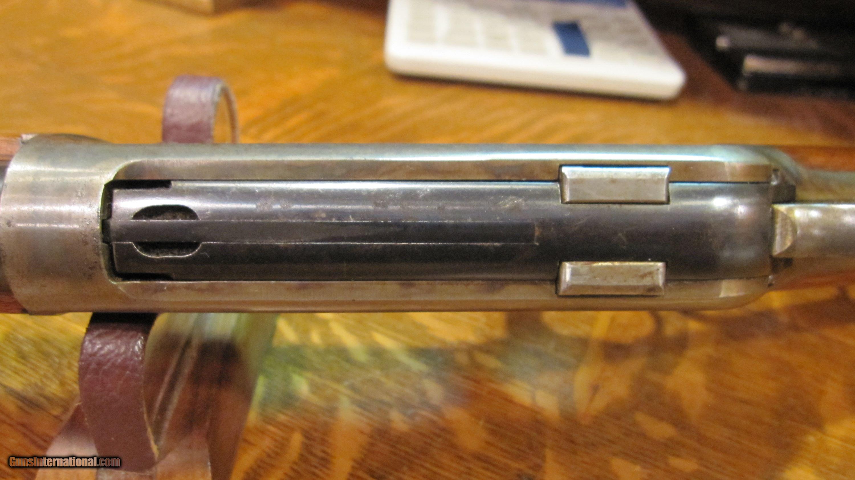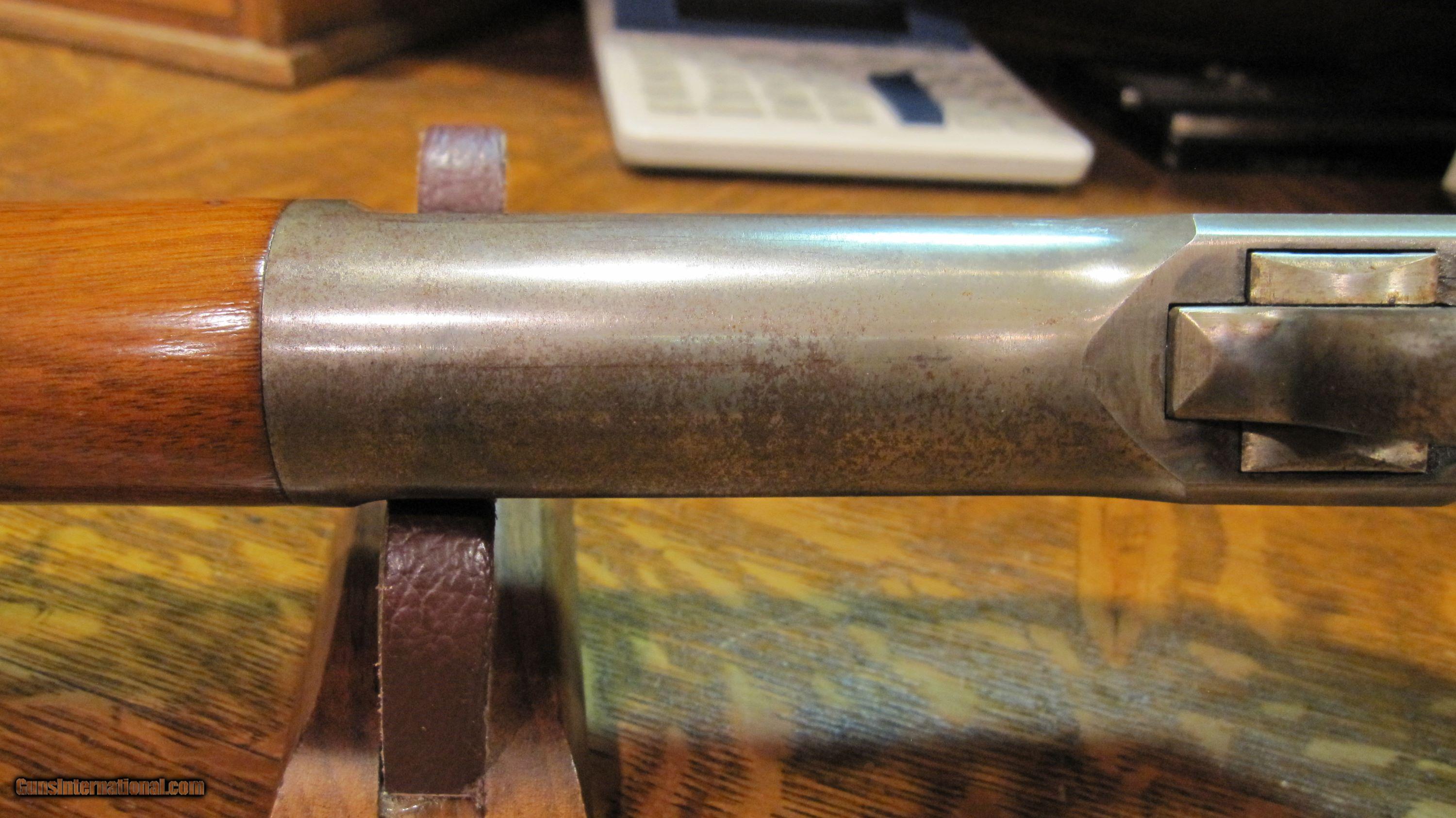 Description: Winchester 1886 standard rifle manufactured in 1898. 40-65 cal. 26' round barrel. Blued and casehardened. Standard sights. Gun has 98% strong original barrel and tube blue. Ever so slightly thinning on part of the tube. Casehardening is more vivid on left side of frame. See pics. the stock and forearm have a added coat of varnish added. Stock is slightly undersized on upper tang. See pics. Forearm has two tiny holes filled on each side up front. Don't have a clue for a reason. See pic. Stock also has a single sling swivel eyelet added which could be removed and filled. Bore is shiny, but has a couple of minor pits. Great rifling. Action is perfect. Most screws are great. The added varnish is probably the worst aspect of a great original finish gun. It really has a great honest look overall. Call 973-214-3407 with any questions. Buyer payes actual shipping cost. SOLD Antique: Yes Manufacturer: Winchester Model: 1886 Serial Number: 166910 Caliber Info: 40-65 |