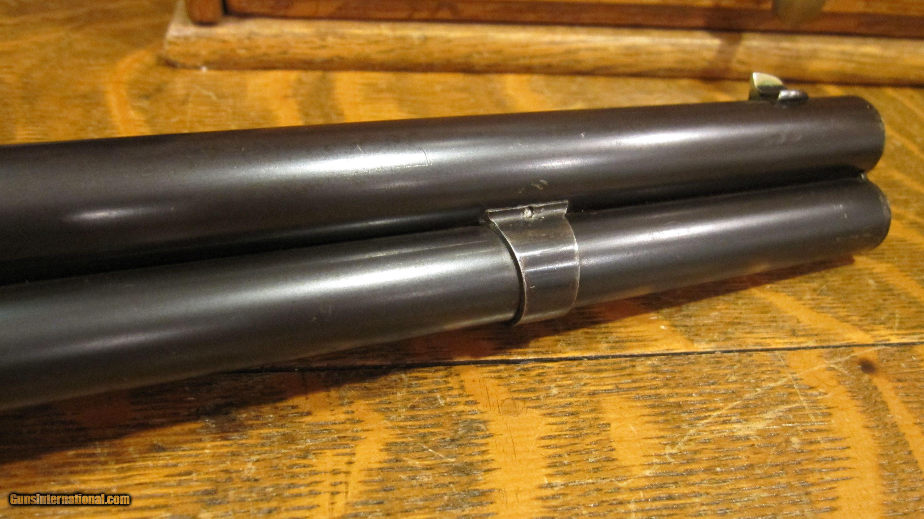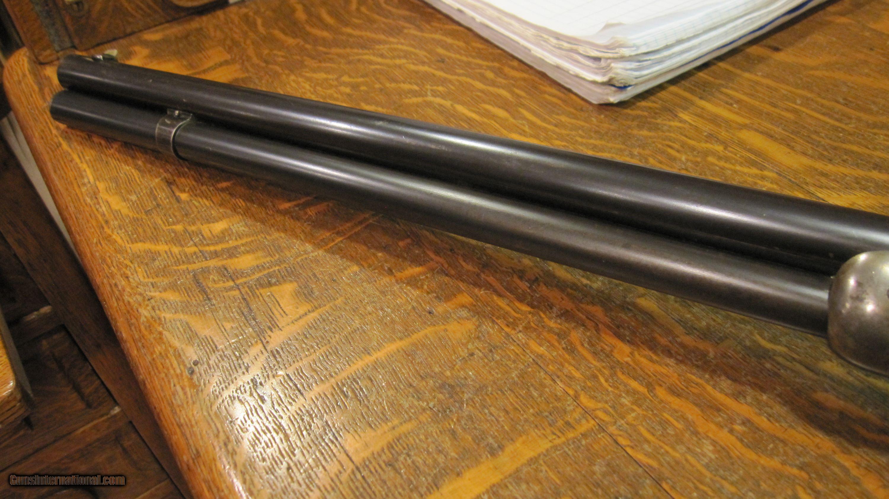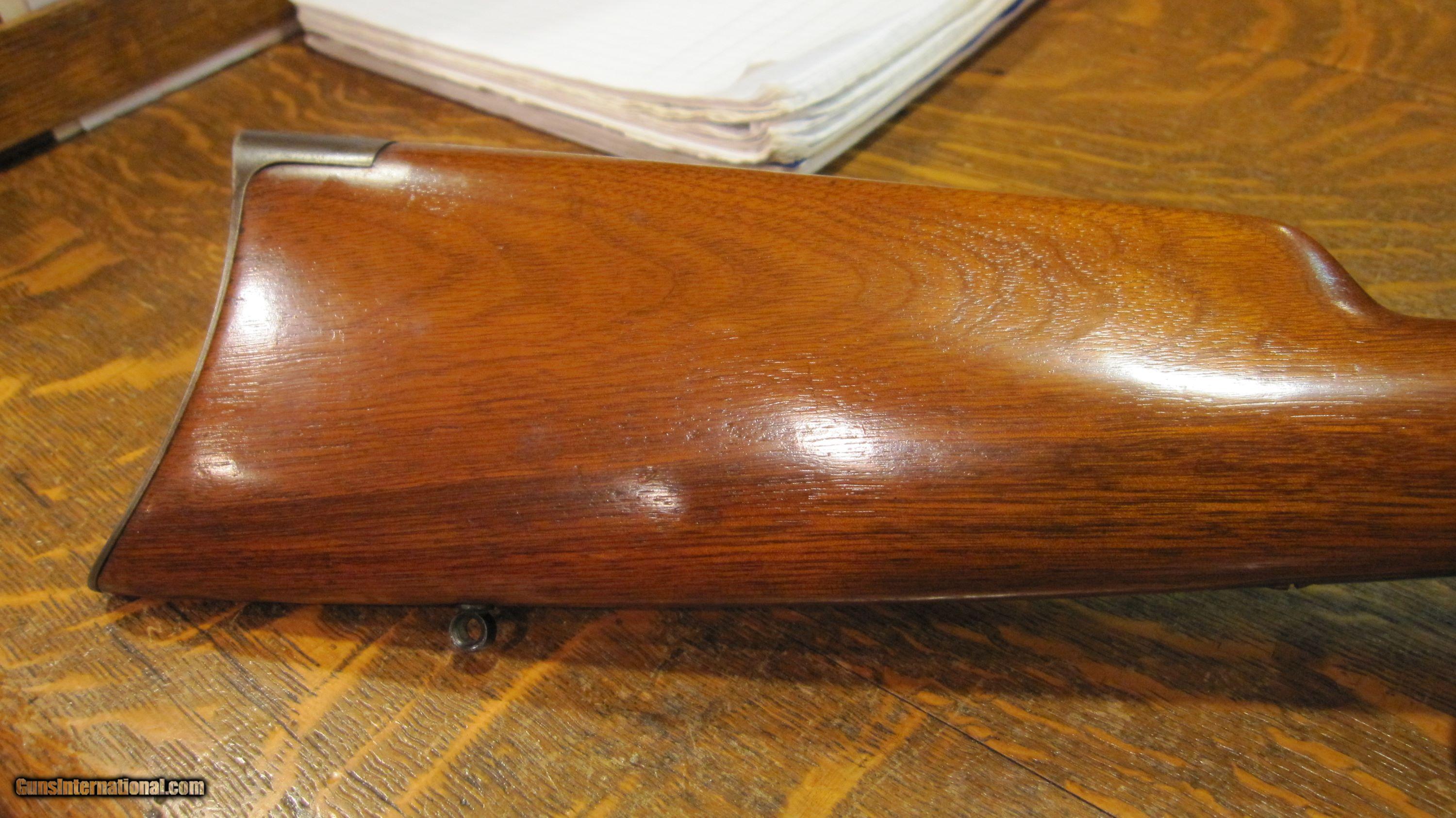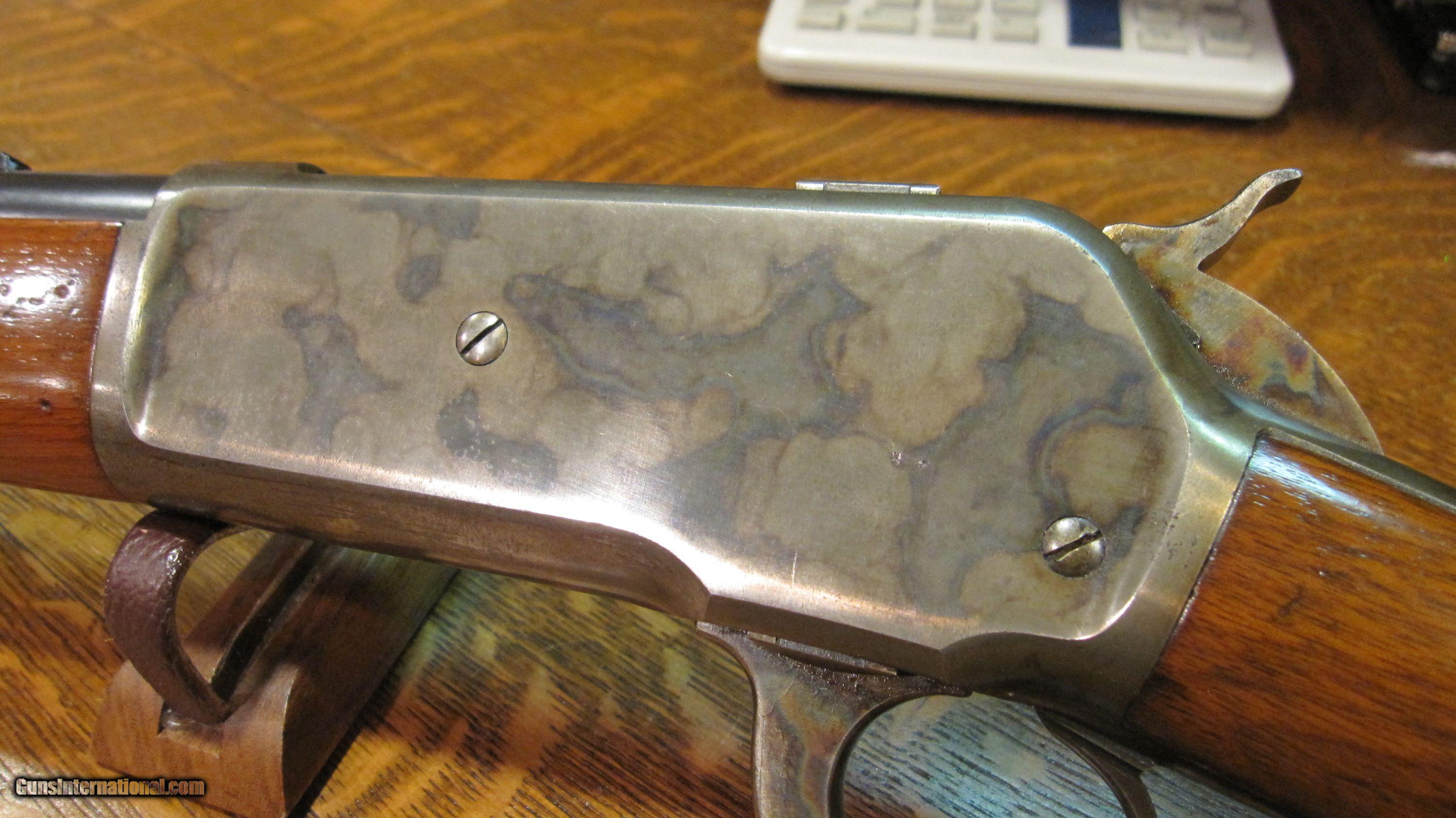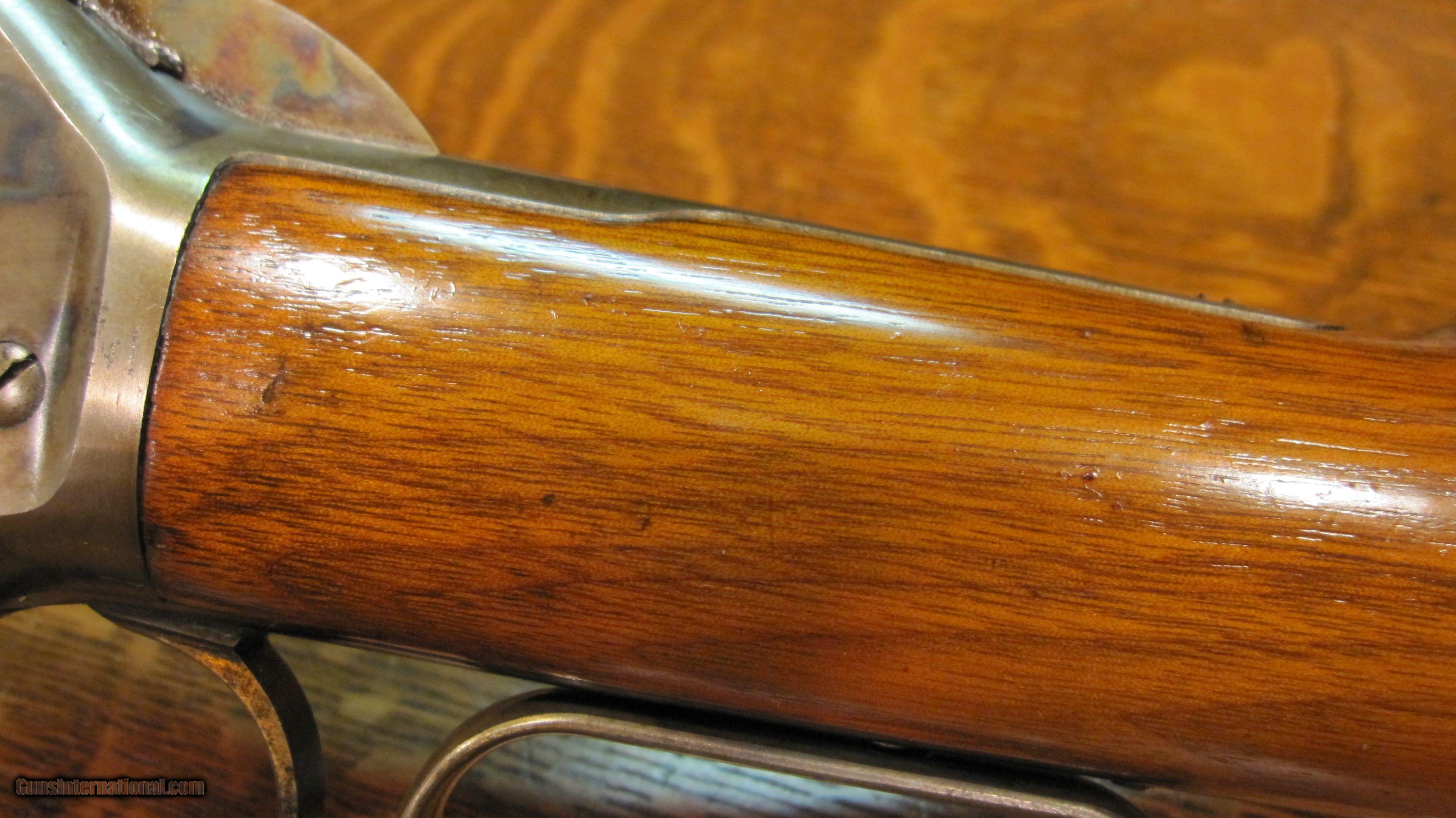 Description: Winchester 1886 standard rifle manufactured in 1898. 40-65 cal. 26' round barrel. Blued and casehardened. Standard sights. Gun has 98% strong original barrel and tube blue. Ever so slightly thinning on part of the tube. Casehardening is more vivid on left side of frame. See pics. the stock and forearm have a added coat of varnish added. Stock is slightly undersized on upper tang. See pics. Forearm has two tiny holes filled on each side up front. Don't have a clue for a reason. See pic. Stock also has a single sling swivel eyelet added which could be removed and filled. Bore is shiny, but has a couple of minor pits. Great rifling. Action is perfect. Most screws are great. The added varnish is probably the worst aspect of a great original finish gun. It really has a great honest look overall. Call 973-214-3407 with any questions. Buyer payes actual shipping cost. SOLD Antique: Yes Manufacturer: Winchester Model: 1886 Serial Number: 166910 Caliber Info: 40-65 |