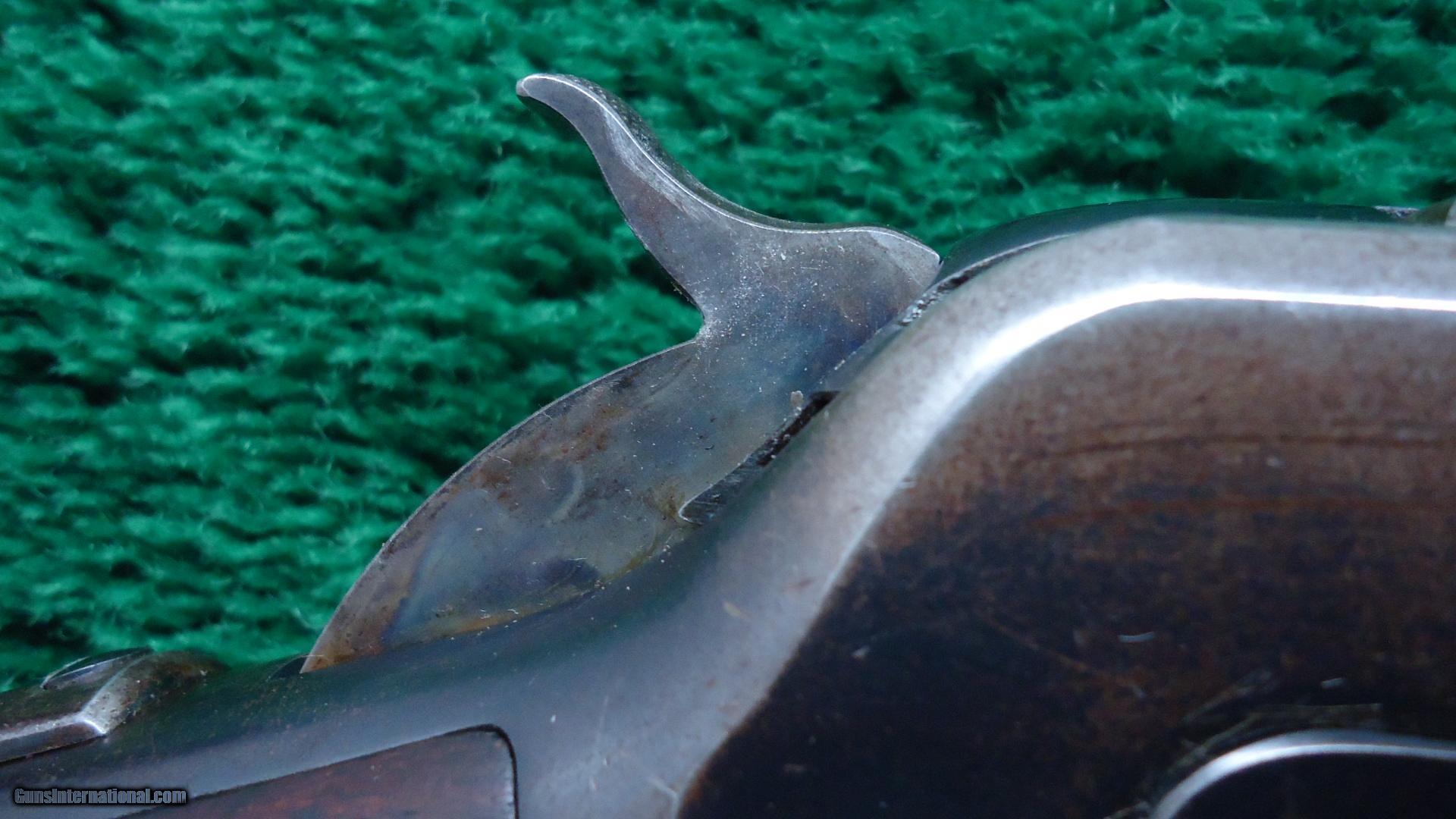 Description: Cal 45-70. Receiver retains 60% orig blue finish with carry wear on the bottom and top. 26” Rnd bbl. full mag. finish starting to thin and turning plumb-brown toward the muzzle. Blank in the rear sight seat. Just a hint of frost in the bore with strong rifling. Tang sight. Hammer and lever retain generous traces of case color in protected areas. Stocks are very good and show an old re-varnish with some slight marring with crescent butt. Leroy Merz Antique Firearms specializes in antique and vintage Winchesters and other fine American firearms. Since 1965 Mr. Merz has taken part in the world of firearms and has been a contributor to many well known reference books. Just recently we mailed the 127th edition of our privately-published catalog. We have hundreds of additional guns in every price range at our home online. Search for Merz Antiques in google. SOLD Curio/Relic: Yes |