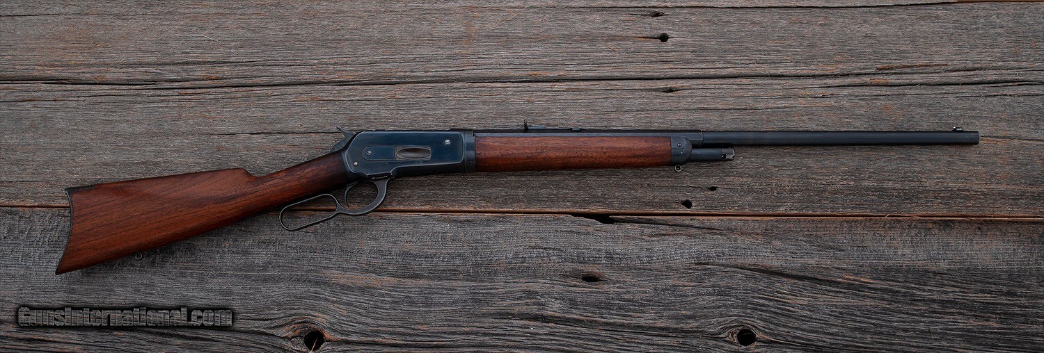 Description: Winchester - 1886 Takedown - .40-82 caliber - Item Number: WIN132635 Rifle type: Lever Action Action: Lever Action Barrel length: 26 Sights: Factory Sights Weight: 8 lbs, 12 oz Overall condition: Very Good Stock condition: Very Good Metal condition: Very Good Stock: Original finish Metal: Original finish Type of Case: none Finish: Blue Type of Butt: Factory Pad Manufactured in: USA Lop: 13 1/4 " Hand: Right Comments : Half round, half octagonal barrel. Half magazine, plain wood, 95% blue frame and barrel. R-107 SOLD |