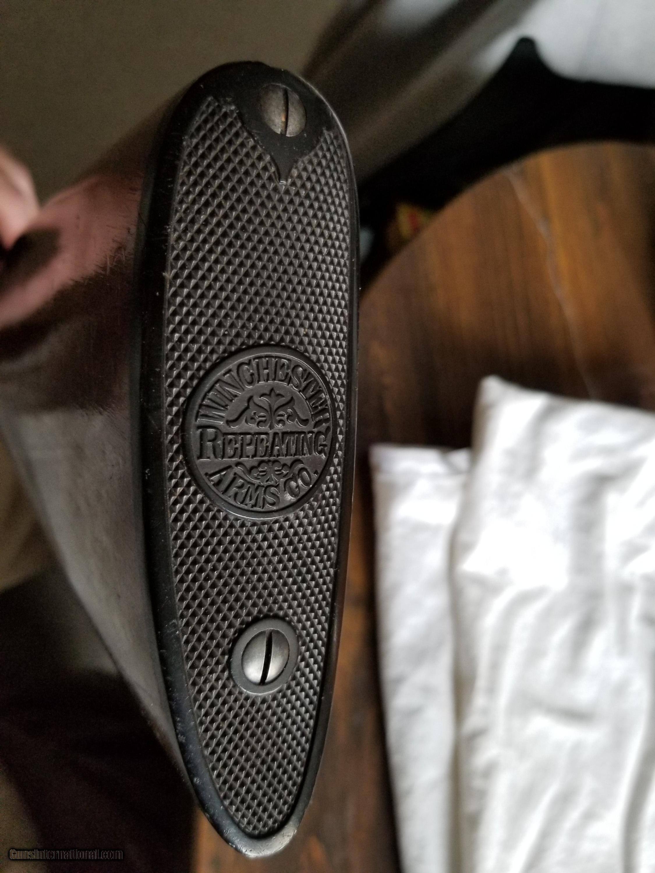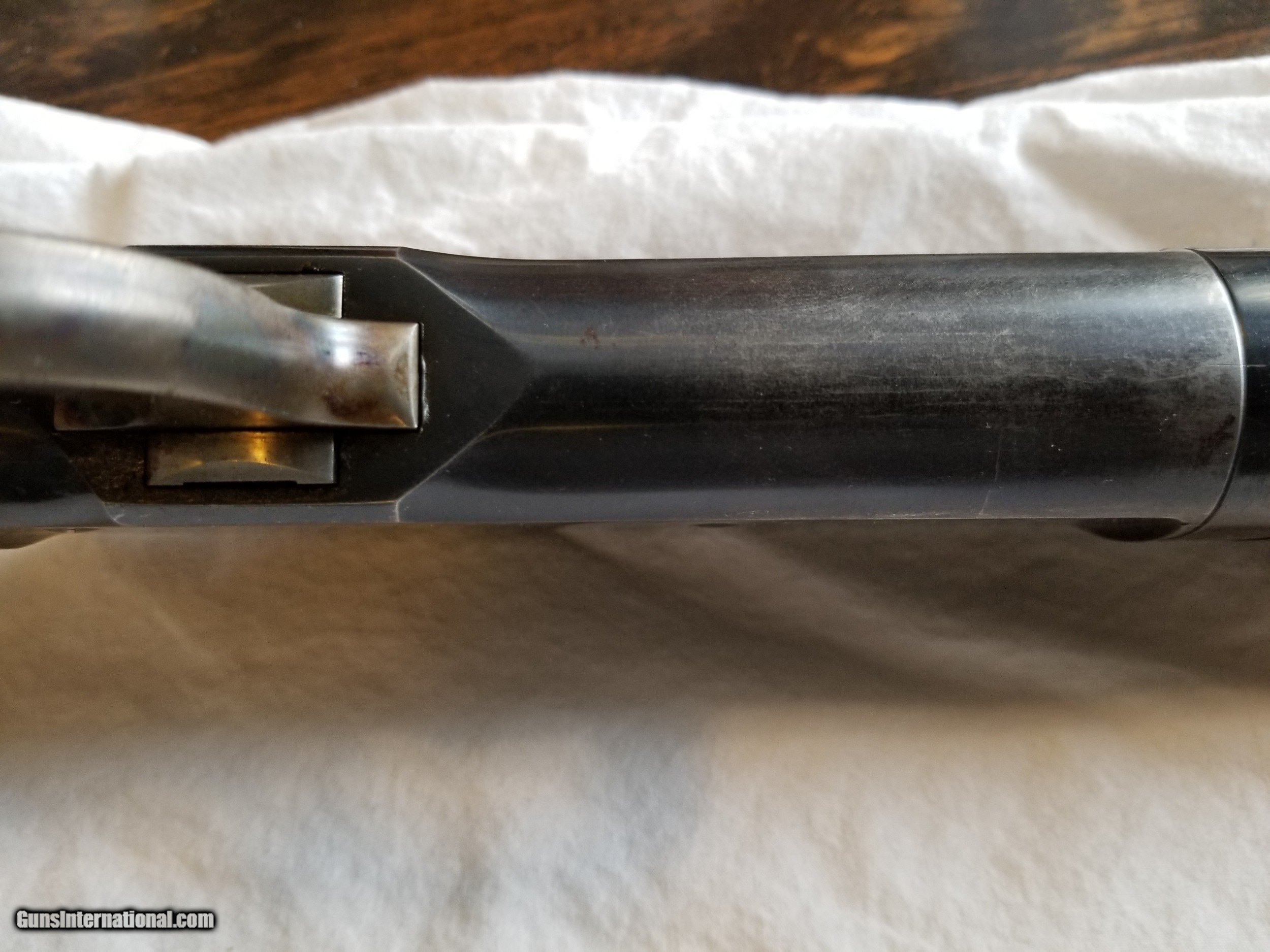 Description: Exceptional 1886 take down in 45-70. Nice original blue and wood finish with minor wear marks from usage. Bore is nice with some frosting towards chamber end. Circa 1907 letters with Cody. SOLD Curio/Relic: Yes Rifle Caliber: .45-70 Government |