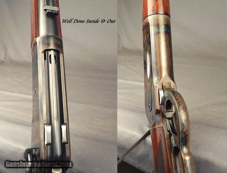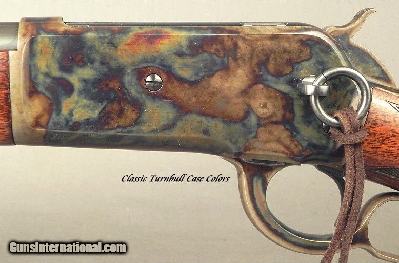 Description: #110980, Winchester 45-70 Model 1886 Deluxe Saddle Ring Carbine That Went to Winchester's Warehouse December 16, 1897, Lettered as a Carbine and shipped from the warehouse on June 27, 1898, Bought 20 years ago with Deluxe features with full checkering and then sent to Turnbull Restoration for a complete and total restoration, 22" round carbine barrel, An adjustable Carbine Rear Series 42 Sight with a sliding blade for elevation, Integral front sight base with a blade post, Full length magazine, Deluxe checkered grip and forend, 13 7/16" LOP to a steel shotgun buttplate, 7 lbs. 10 oz., This piece has been completely upgraded with the classic Turnbull case colors, The barrel and magazine tube blue is at 100%, The case colors are 100%, The stock finish is at 99%, The checkering is 100%, The bore is a 7 out of 10 with sharp rifling the entire way and no pits. There are surface blemishes in the bore but nothing serious and without any pitting that would hinder shooting or accuracy. This piece is accurate at 75 yards with the carbine sights. This is a very nice 45-70 Carbine with a bore that will last another lifetime. SOLD Antique: Yes Rifle Caliber: .45-70 Government |