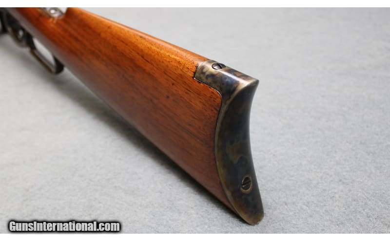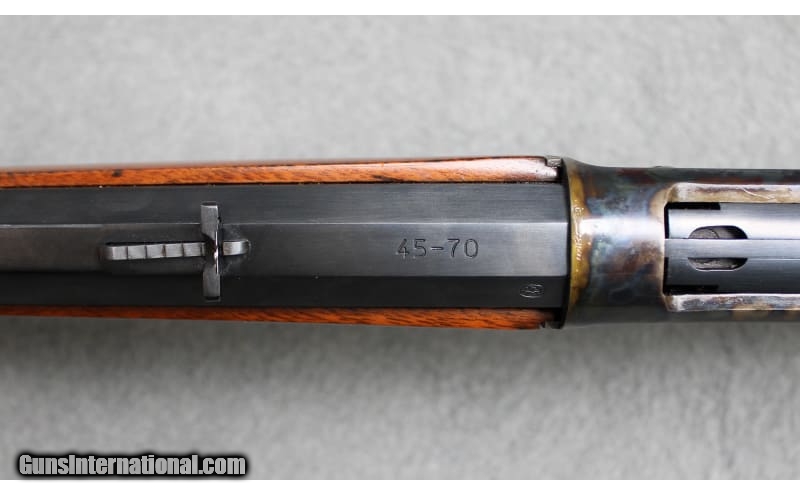 Description: Winchester Model 1886 lever action rifle chambered in .45-70 Government. Manufactured in 1891. Subsequently professionally refinished and barrel replaced. Missing magazine tube cap screw and repair on forearm. No accessories. .45-70 Government SOLD Antique: Yes Metal Condition: Professionally Refinished Very Good with Minor Handling Marks Wood Condition: Very Good with Minor Handling Marks Bore Condition: Bright And Clear with No Pitting Barrels: 26 inch Octagonal Item Location: Fort Worth, TX |