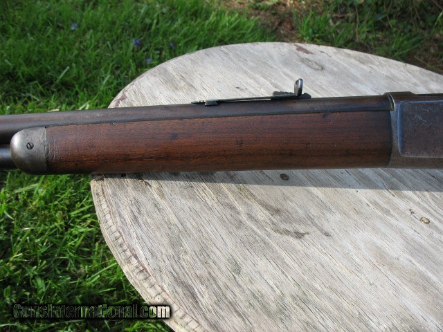 Description: Here is a Winchester Model 1886 rifle in caliber 45-70 with lighter weight 26" round barrel and slimmer light weight fore arm, full magazine, crescent rifle butt, walnut stocks, blued finish, lever action repeater, open sights, serial # 18688, made 1888 and therefore an antique. CONDITION: Barrel shows 40% thinning original blue with 70% brighter blue in the protected areas by the mag tube. Mag tube shows 65% bright original blue with a higher percentage in the protected areas by the barrel. Bolt shows 90% bright original blue. Receiver, lever and hammer are the common nickelly-silver color attributed with the case hardening fading away. Action is smooth and the half cock safety functions as designed. Bore is very good with sharp rifling and minor wear. Has been test-fired for function and feed, and it works perfectly. Stocks show typical nicks and scratches, no cracks but slight loss at right upper tang where there is a dime-sized compression mark, still fit well and no extra holes, never cleaned/sanded or refinished. This rifle was originally a 40-65 octagon according to the Cody Museum email sheet, but at some point between 1898 and 1903, it was returned to the factory and made into its present state as evidenced by 3 discoveries: 1. With the fore arm and mag tube removed, there is a "star" stamped on the underside of the barrel and on the face of the receiver. 2. With the butt stock removed, the initials "J.P.P." are stamped on the lower left tang. James P. Parker worked in Winchester's Model room and was one of Winchester's most skilled employees - quite often, items returned for repair, refinish, or modification were assigned to him and his initials would be found either on the underside of the barrel, in the rear sight dovetail, or on the left lower tang as in this case. 3. The barrel address marking and barrel/forearm dimensions are typical of the lighter weight guns made during this time period, before the "extra lightweights" really got going. Note there is no return and repair in the records, however they were not always recorded and there are NO RETURN PROOFS so it was definitely done before February 1906 when the factory started using proof marks! In all a nice representative 1886 in the best caliber and grades NRA Antique Very Good; will make a nice shooter and collector! TERMS: No international sales. Antique so it can ship directly to you assuming your local laws allow it. 3-day non-firing inspection. Buyer pays return shipping. Payment by bank check, money order or personal check. All major credit cards accepted with 4% convenience fee added. Sold as a collectible only and should be checked by a competent gunsmith if you intend to shoot it. Trades and offers considered. Always interested in Civil War, Old West and other firearms so please contact me if you have something for trade or sale. Thanks for looking and please check my other listings. 315.251.4799 with questions or concerns. SOLD Antique: Yes Manufacturer: Winchester Model: 1886 Serial Number: 18688 Barrel Length: 26" Round Caliber Info: 45-70 Condition: Very good Metal Condition: Very good Wood Condition: Very good Bore Condition: Very Good Action: Lever Triggers: Standard/plain Stock: Walnut Manufacture Date: 1888 |