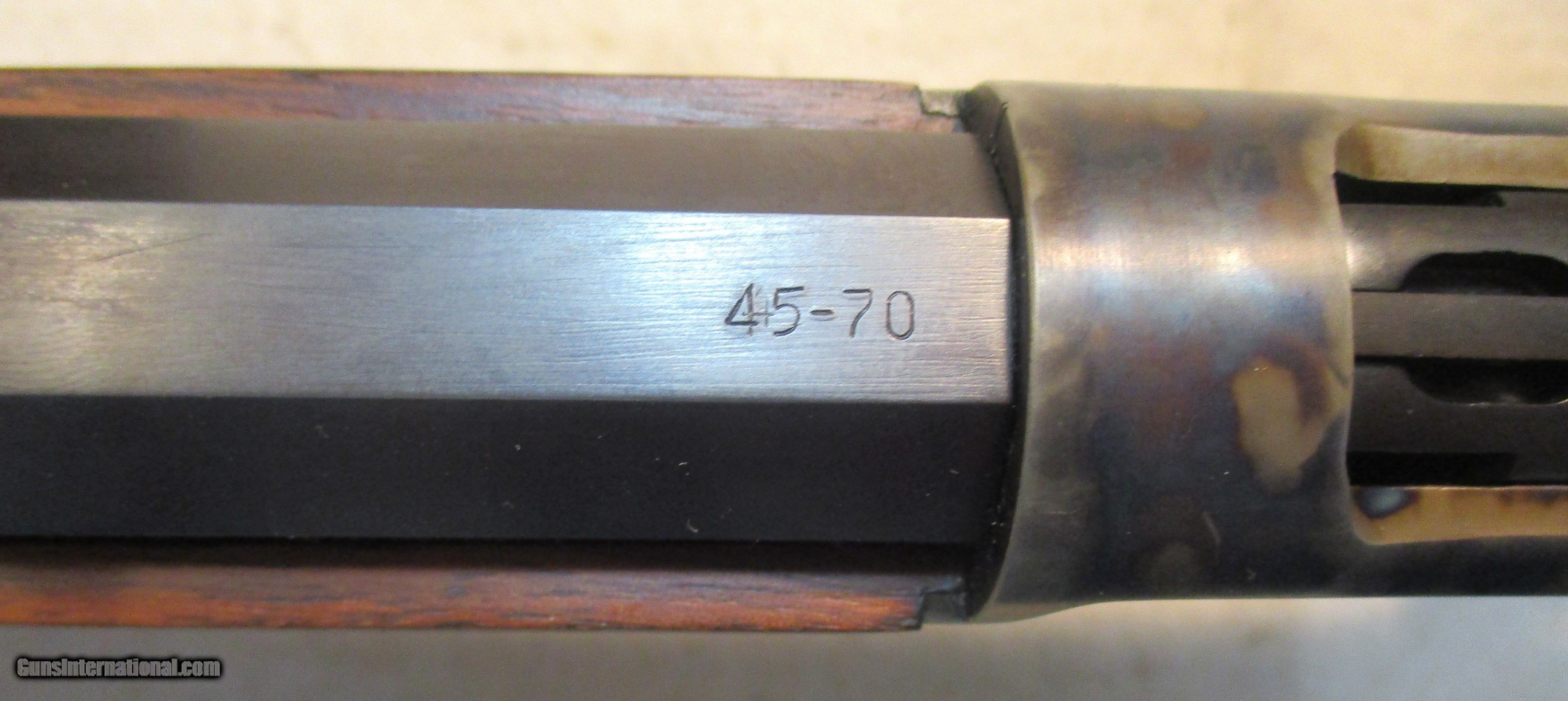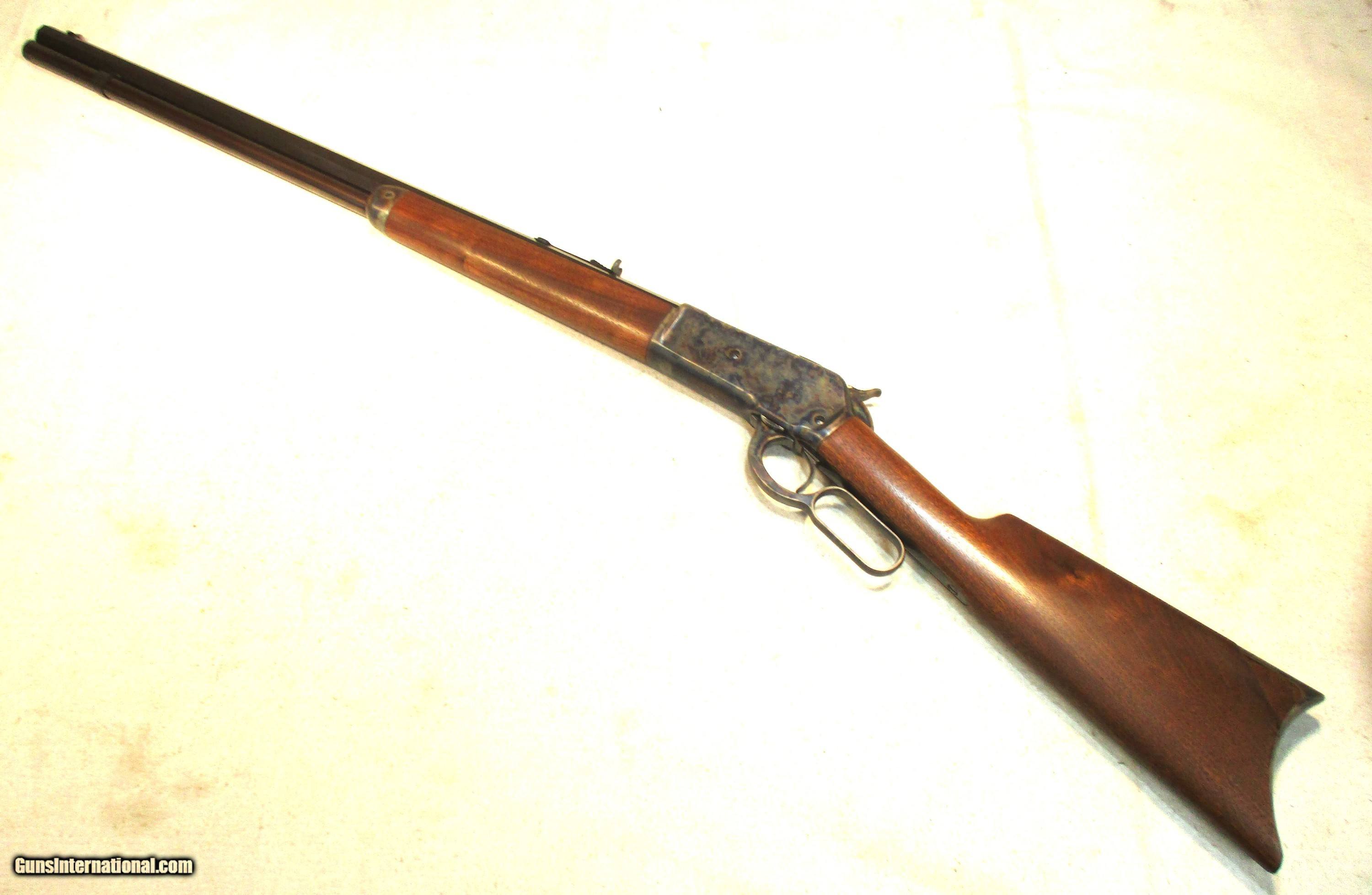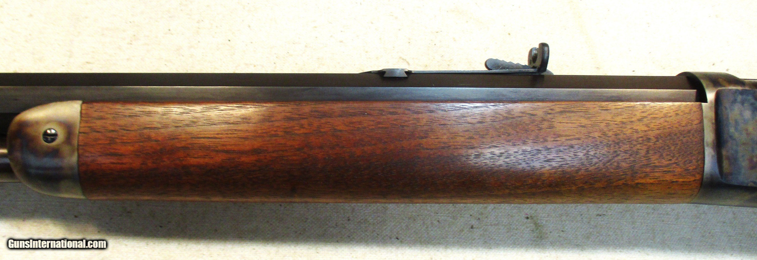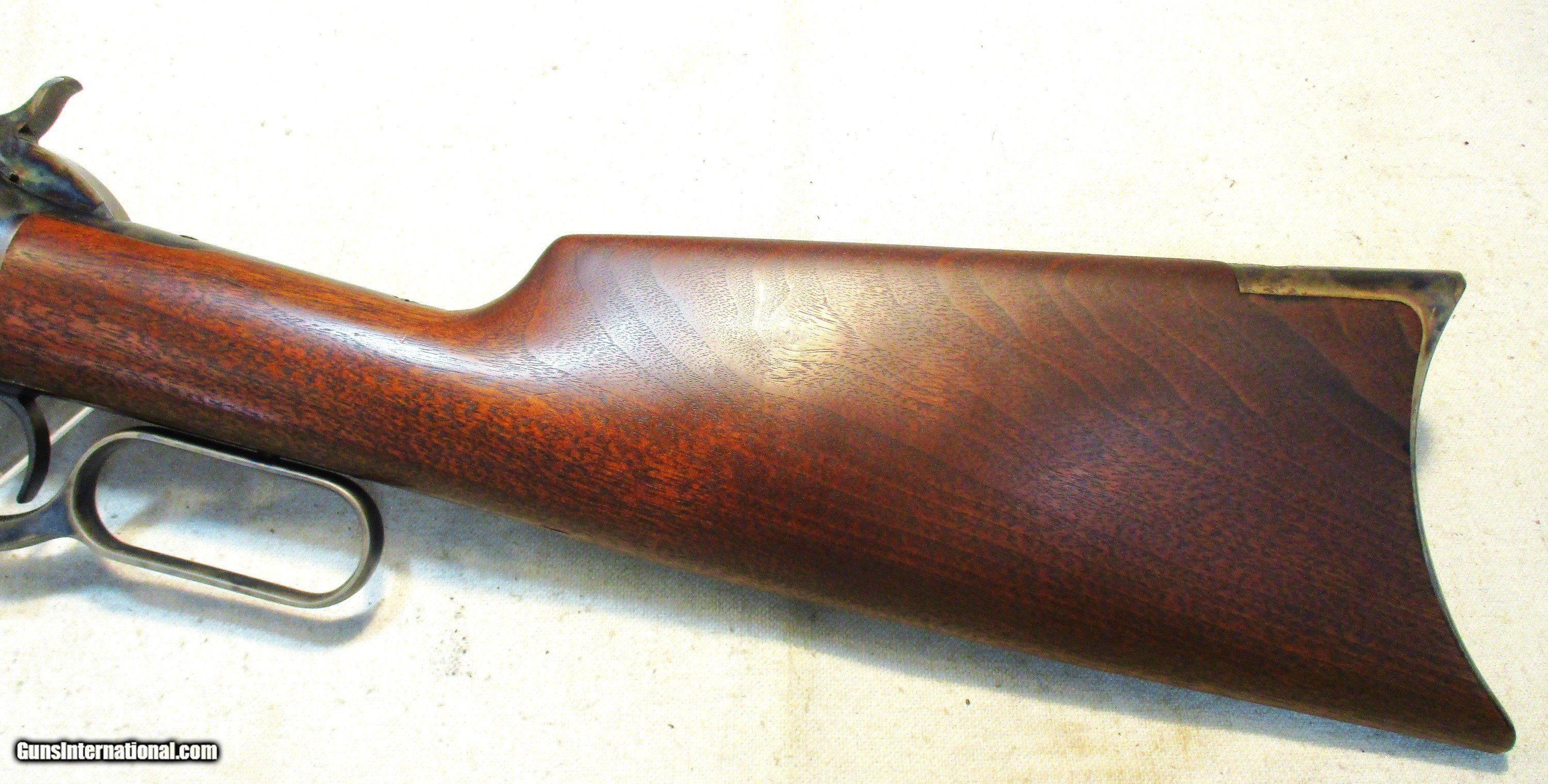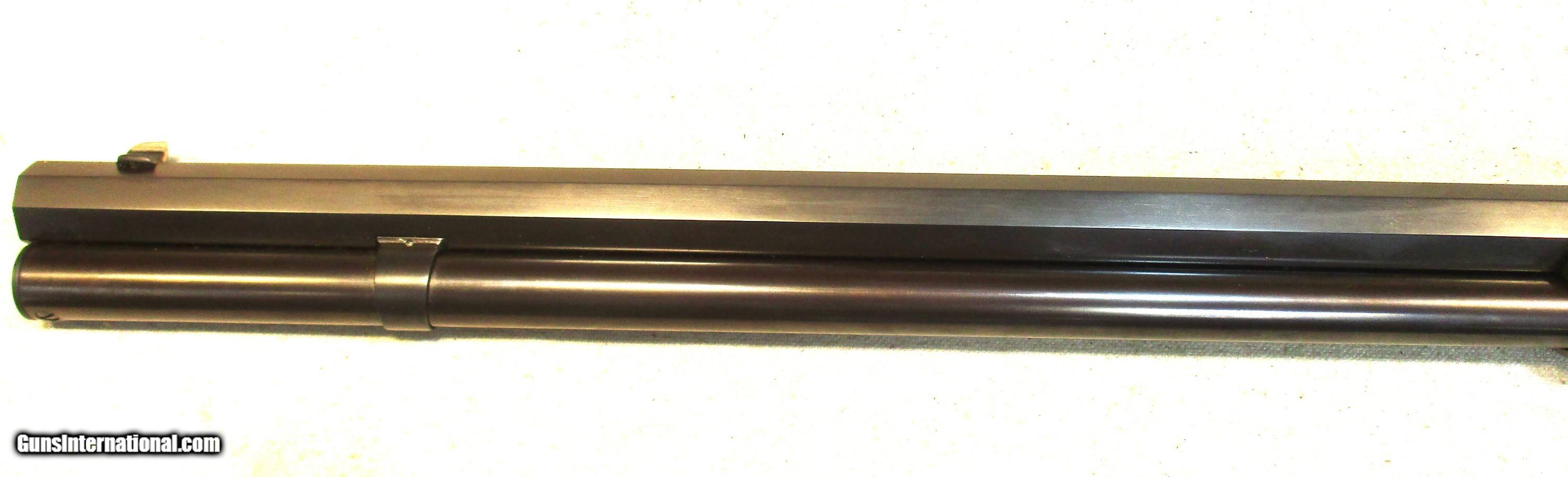 Description: Custom Restored Winchester 1886 .45-70 Sporting rifle Manufactured in 1894. Rifle has a case-hardened metal butt plate, walnut straight grip stock and plain forearm, case hardened receiver, lever, trigger and hammer, 25” octagon blued barrel, Full length magazine tube, and adjustable rear buckhorn and blade front sight. Top of barrel has 2 line roll stamped register MANUFACTURED BY THE-WINCHESTER REPEATING ARMS CO NEW HAVEN CONN. U.S.A. . 45-70 stamped in front of receiver. Bottom tang stamped PAT. OCT. 14. 1884. -JAN. 20.1885. 90992 serial number. Top tang stamped- MODEL 1886- Rifle was restored in 1996 by Charles H. Jones, Firearms Restoration, Kerrville, Texas. The rifle comes with a letter detailing all the restoration, and upgrade work done on the rifle.