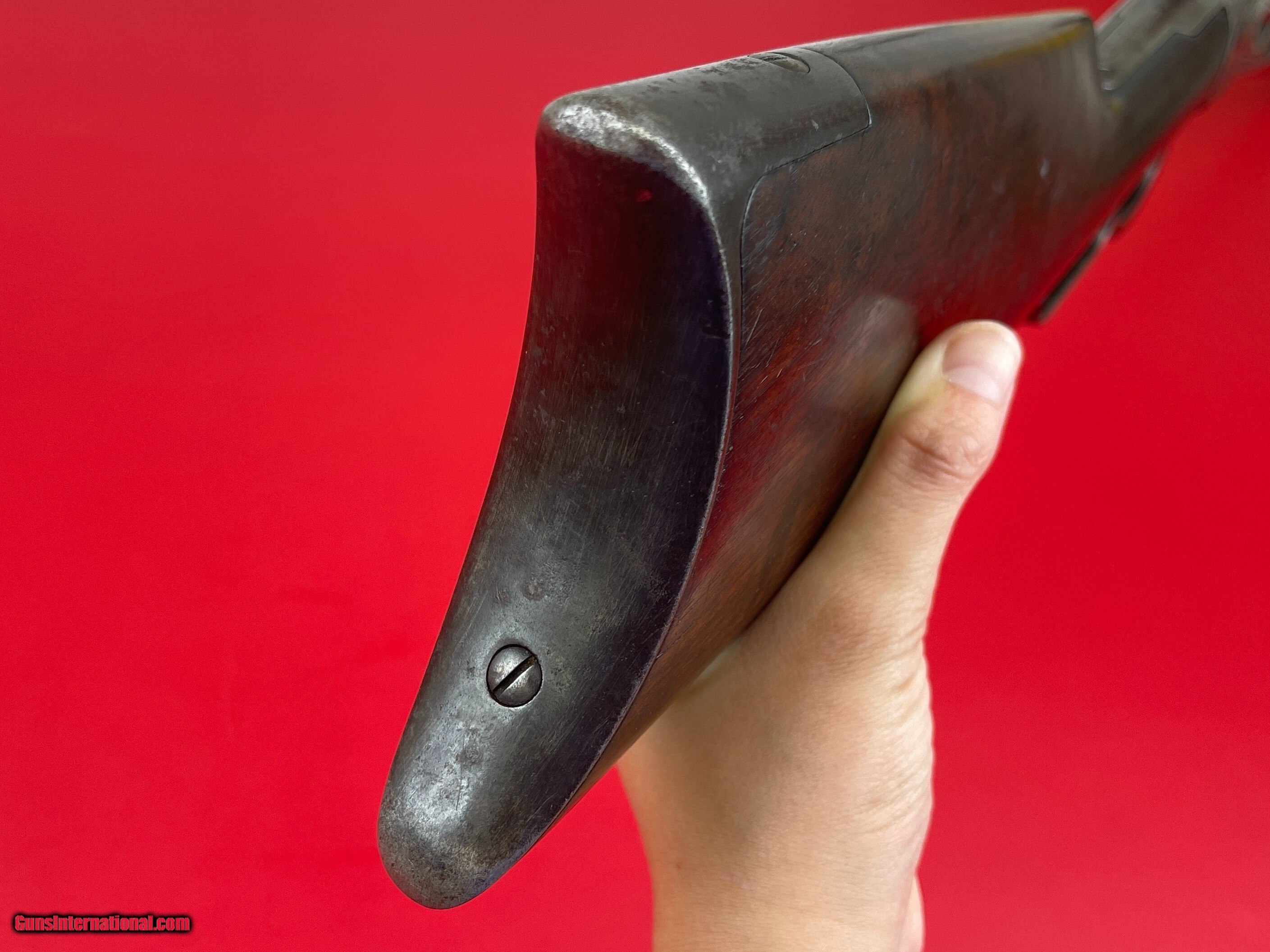 Description: A fine example of a classic Winchester lever-action rifle, manufactured in 1894. This rifle remains in very good condition for its age. The finish has worn to an even brown patina, with light pitting visible along the barrel. The walnut stock is in good condition, showing typical handling marks and a small chip beneath the forearm—consistent with its age and use. The bore is pitted throughout but remains clean with strong rifling present. A solid collectible piece representing Winchester’s craftsmanship of the late 19th century. FOR FULL PHOTO ALBUM ASK US FOR THE LINK! SPECS: