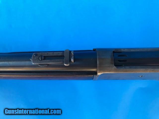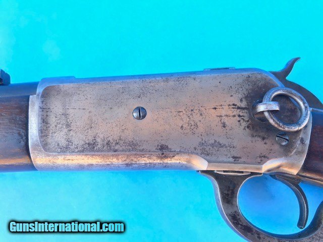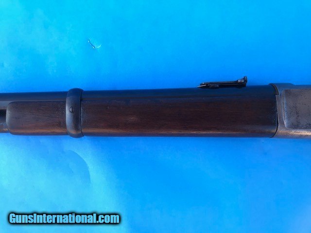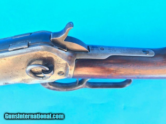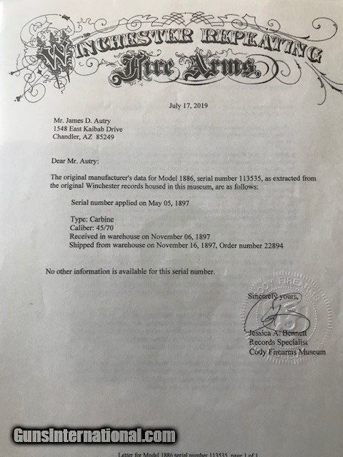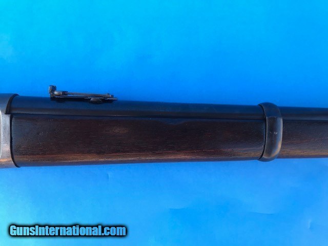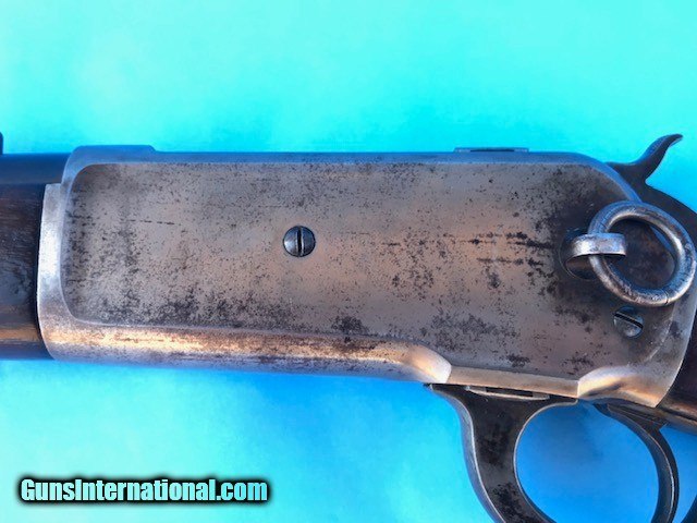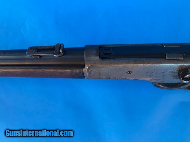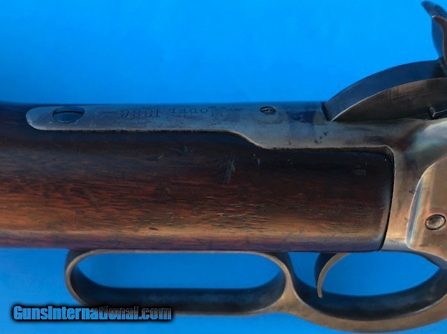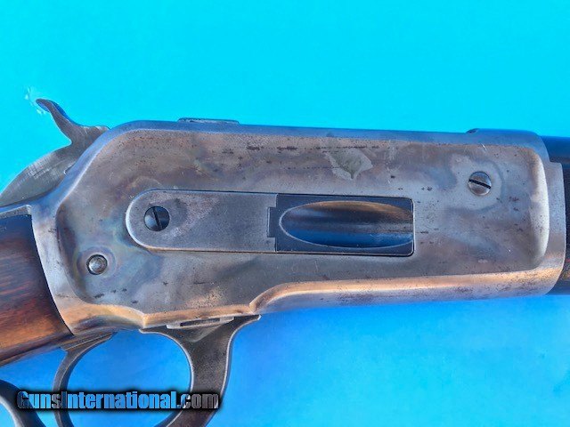 Description: Winchester Model 1886 Carbine .45-70 Caliber Serial #113581 Manufactured in 1897 Condition: 1886 in the very desirable .45-70 caliber. John Madl confirms that there were only 1,911 .45-70 Carbine ever produced. 90% toned barrel and tube blue with original front post and rear ladder sight. The receiver is nickel patina color with some traces of grey clouds around the saddle ring. The right side has 10% of some good colors. The forearm fits pretty good just a little low at the receiver. The buttstock has a real good fit around the butt plate. It’s just a tiny bit low around the upper tang on the left and right sides but doesn’t distract from the carbine at all. The Bore is 9.5 and is bright and shiny, the action is crisp. Complete with Cody letter. SOLD Antique: Yes |