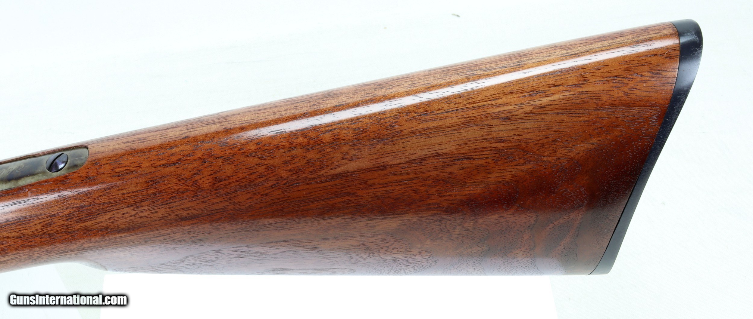 Description: Winchester Model 1886 Lever Action Rifle in .45-70. SN #25902. Mfg. in 1888. LOP 13 1/8". 26" Octagon Barrel with an EXCELLENT Bright Bore with STRONG RIFLING. The Barrel haas been Re-Barreled at some point in the past. The Blued / Case Colored Metal and the Straight Walnut Stock and Forend have been FULLY RESTORED by SHOOTER'S EXCHANGE and LOOK GREAT. Full Tube Magazine. Open Sights. Plastic Winchester Buttplate. Case Colored Receiver, Lever, Hammer and Metal Forend Cap. Model was made from 1886 to 1935. Weight: 9.5 lbs. Trigger Pull: 3 1/2 lbs. AS AN ANTIQUE, NO FFL IS REQUIRED TO PURCHASE. More photos available upon request. Ships to Lower 48 W/ Insurance $85.00. ALSO AVAILABLE FOR INTERNATIONAL SALES AND SHIPPING. SOLD Curio/Relic: Yes Antique: Yes Rifle Caliber: .45-70 Government Manufacturer: Winchester Model: 1886 Serial Number: 25902 Barrel Length: 26" Octagon Condition: Excellent Metal Condition: Refinished Wood Condition: Refinished Bore Condition: Excellent Action: Lever LOP: 13 1/8 Finish: Blue / Case Colored Weight: 9.5 lbs. Manufacture Date: 1888 |
