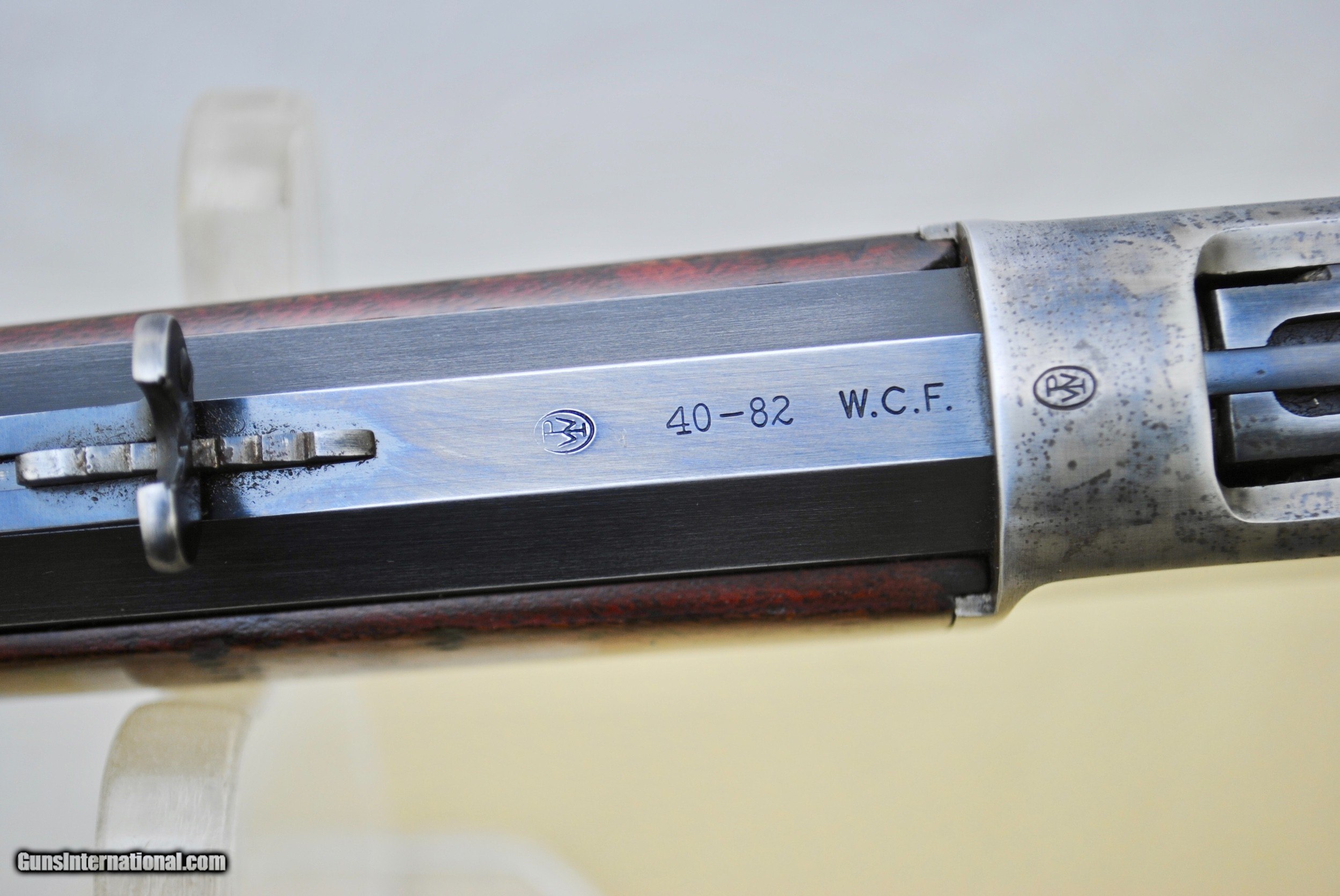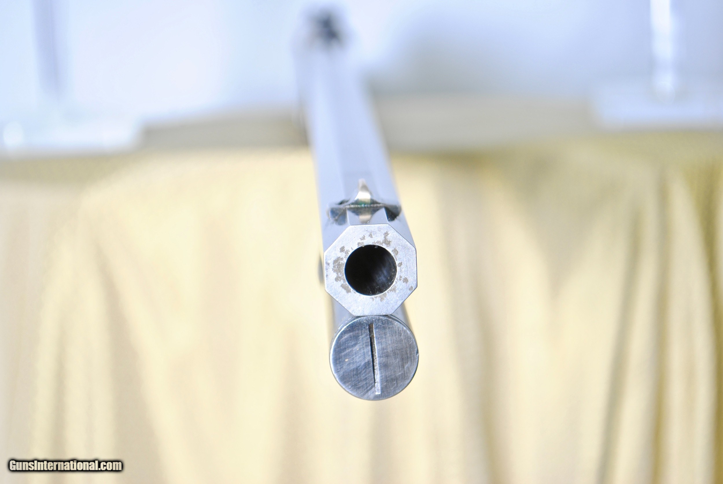 Description: SALE PENDING. Here is a Winchester Model 1886 made in 1906 in 40-82 WCF. Excellent case color. Barrel blue at 97%. Octogon 26" barrel with sharp edges. Lettering and proof marks as sharp as a new gun. Screw slots perfect. Bore is excellent with no pitts and strong lands and groves. Stock has original finish with a few light handeling marks. Shipping is $50. C&R OK for shipping. Weight of gun is 9 LBS. For inquiries please call Guy - 407-721-3748 SOLD |