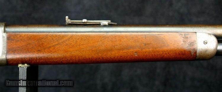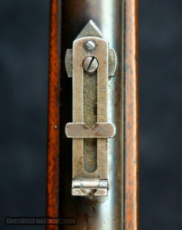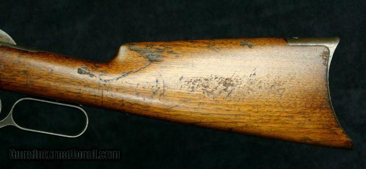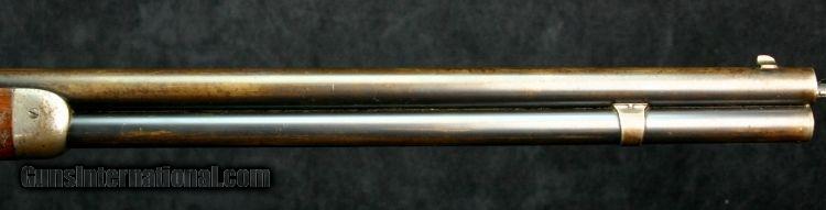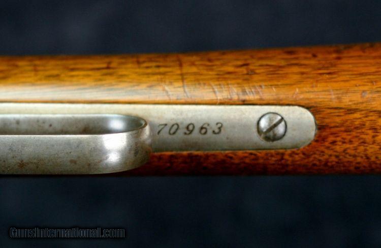 Description: .45-70, #70963, 26 inch round barrel, blue and case color finish, walnut stock and fore arm, 1886 marked ladder sight,1892 Condition: bore is bright, shows some wear and scattered black powder oxidation, 90% tube and barrel blue thinning in places, 80% "milky" case colors pn receiver/lever/hammer/fore arm cap/butt plate, wood is excellent with some fairly deep use marks, excellent mechanically, excellent marks. SOLD Antique: Yes |