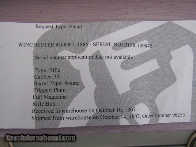 Winchester Model 1886 Rifle Special Order Cody Verified