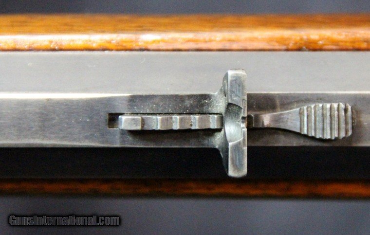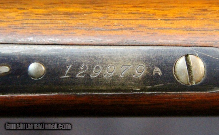 Description: .38-56, #129979, 26 Inch octagon tapered barrel, blue finish, walnut stock and forearm, original sights, 1903. Condition: excellent bright bore, 95% barrel and tube blue, 85% receiver blue thing in areas of hand contact, 50% case color on lever, 80% case color on hammer, excelllent wood, excellent mechanically, excellent marks. SOLD Curio/Relic: Yes |
