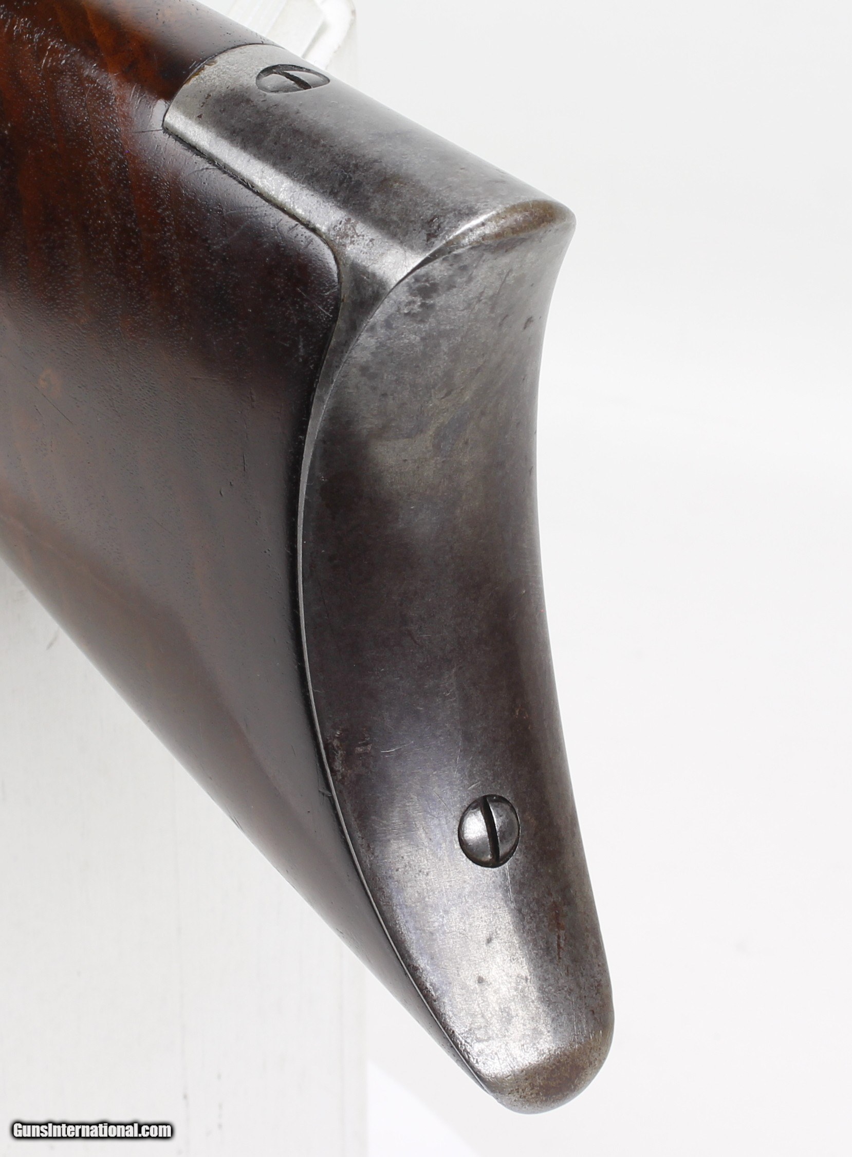 Description: Winchester Model 1886 Semi-Deluxe Rifle in .45-90. SN #84874. Mfg. in 1894. LOP 12 7/8". 26" round barrel with an excellent bore. The blued barrel and Case Colored receiver are in very good condition for it's age. The Higher Grade, checkered straight stock and forend are also in very good condition with some slight handling marks and light wear to the checkering. Full tube magazine. Top eject. Smooth action. A Cody Letter has been ordered on this rifle. Hard to find one in this nice of condition. This is an antique and requires no FFL to purchase. More pictures available upon request. SOLD Curio/Relic: Yes Antique: Yes Manufacturer: Winchester Model: 1886 Semi-Deluxe Serial Number: 84874 Caliber Info: .45-90 Bore: Excellent Condition: VG Metal Condition: VG Barrels: 26" Round Finish: Blue / Case Weight: 9.1 lbs |