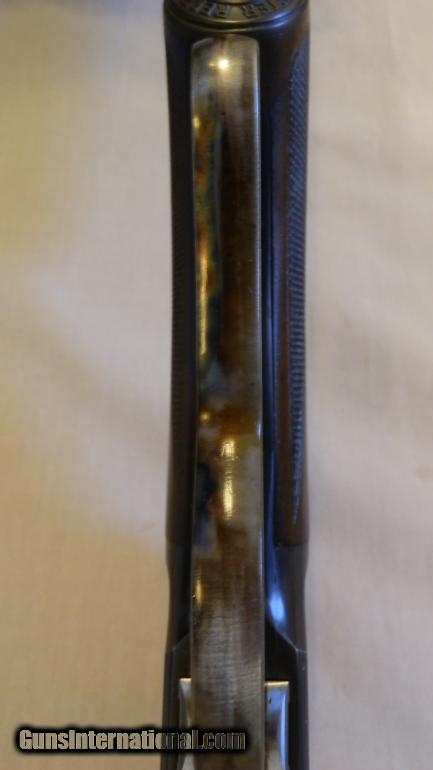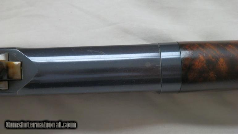 Description: Winchester Model 1886 Special Order Deluxe Lightweight takedown rifle in Very high condition. Made in 1906 Cal 45-70 Original 22" rapid taper Bbl. marked nickel steel with a scarce full magazine tube. Excellent bore. This rifle features a ivory bead Lyman front sight and sporting rear sight. The stock is original 2X DLX walnut with checkered and capped pistol grip with Winchester hard rubber butt plate. The wood has nearly all of the original varnish with sharp checkering. The barrel and receiver retain 98% of the bright original blue finish and nearly all the original vivid case colors on hammer and lever. This is a Excellent Model 1886 all original complete with a Cody firearms museum letter. SOLD Curio/Relic: Yes |