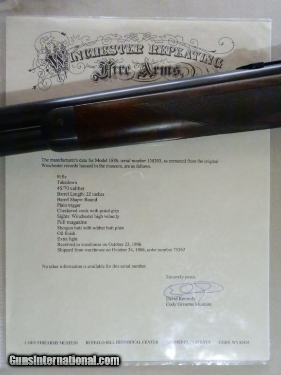 Winchester Model 1886 Special Order Deluxe Lightweight Takedown Rifle