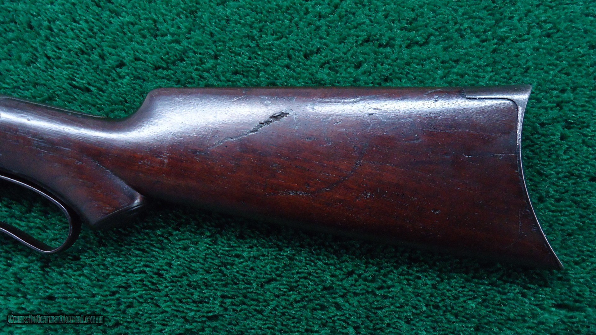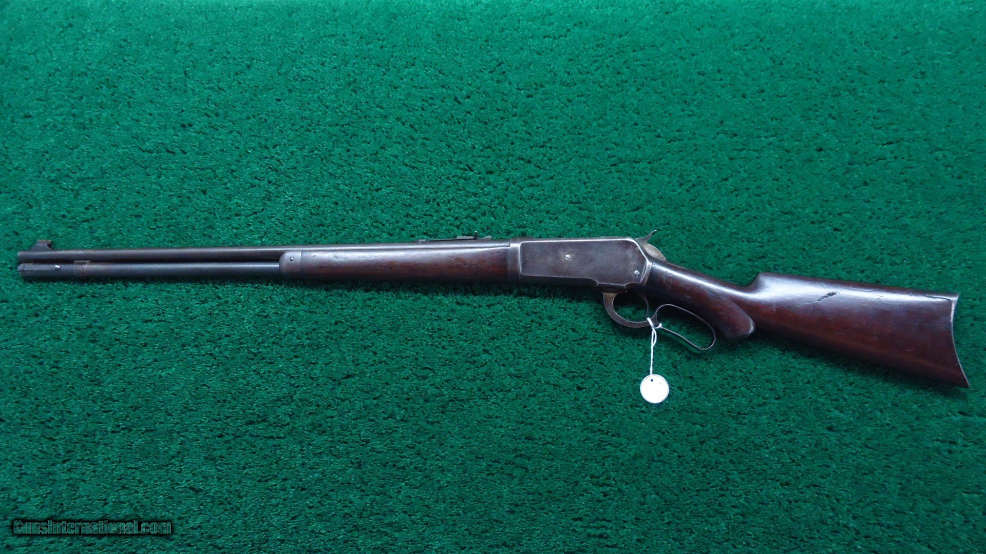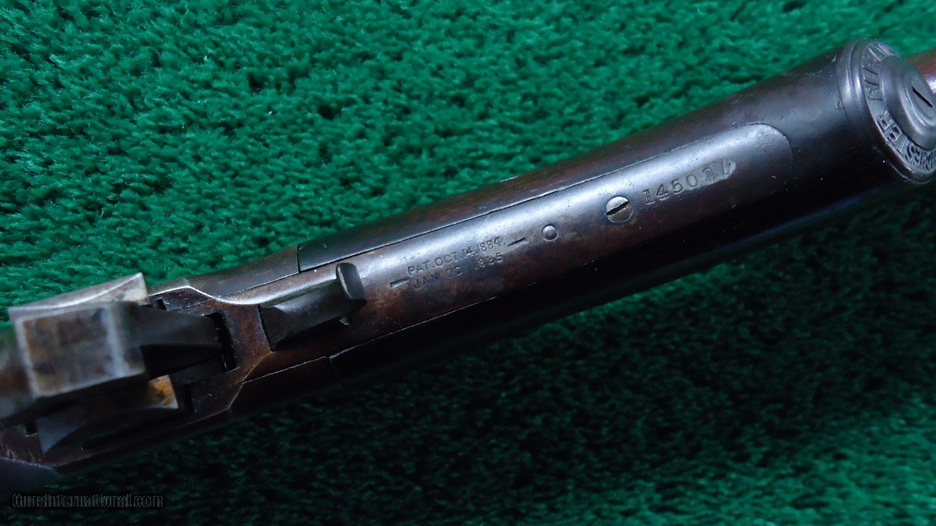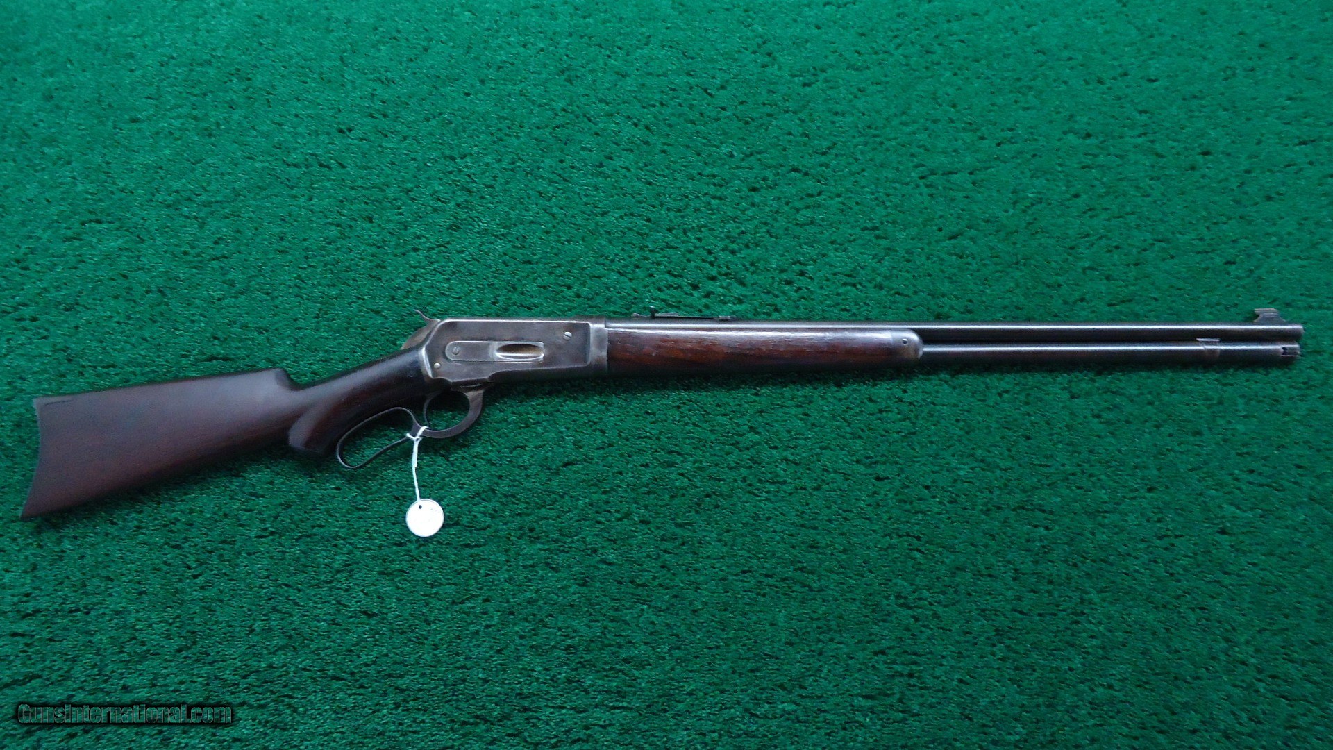 Description: 24 inch round barrel chambered in 33 WCF caliber. Unusual pistol grip stock that is not checkered. Full length mag tube. Scarce rifle style buttplate. Original rear sight and an of the period front sight. A fairly decent bore that would benefit from a good cleaning. Overall metal has turned a plum brown. Good markings and sharp corners. Stock has most original varnish and turning dark. A few light handling dings. Leroy Merz Antique Firearms specializes in antique and vintage Winchesters and other fine American firearms. Since 1965 Mr. Merz has taken part in the world of firearms and has been a contributor to many well known reference books. We have hundreds of additional guns in every price range at our home online. Search for Merz Antiques in google. SOLD Curio/Relic: Yes Rifle Caliber: .33 WCF |