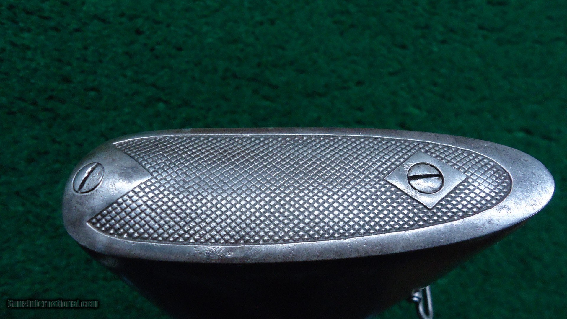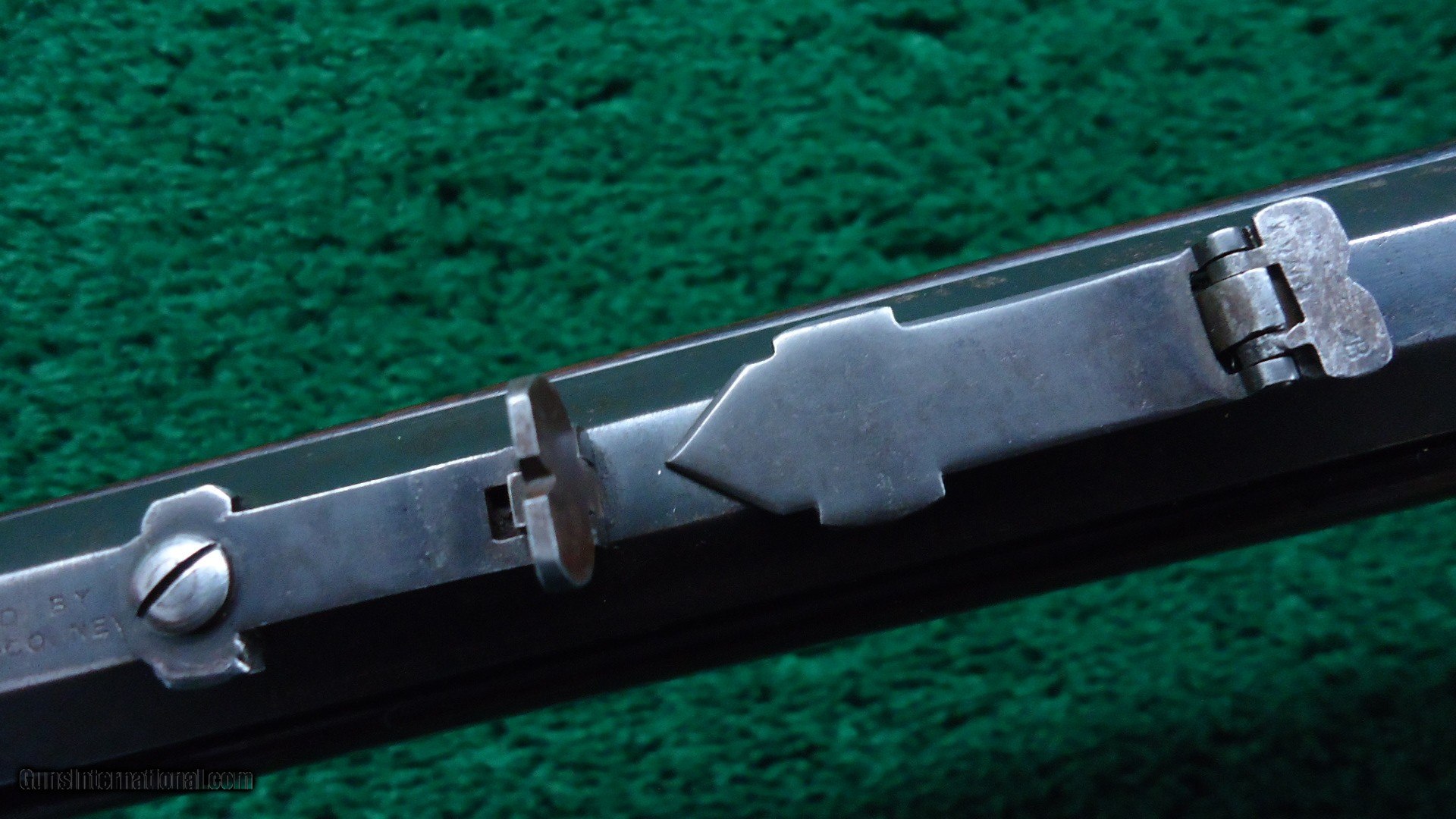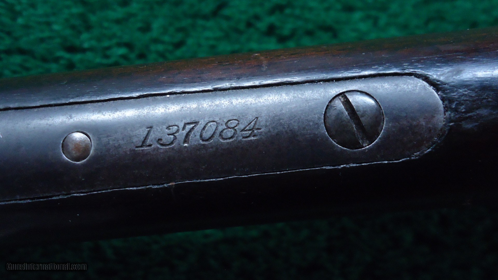 Description: Gun features a very unusual 26 inch half octagon barrel and full length magazine. Wood shows some minor use but is sound and solid with a steel shotgun style buttplate. Sling swivels. Original front sight and 3-leaf rear sight and an additional folding leaf sight has been installed forward of the original. Overall metal is in generally very good condition with about 20-30% blue turning a plum/brown. Good markings. Bore is very good with sharp rifling. Accompanied by a Winchester Research Form. Leroy Merz Antique Firearms specializes in antique and vintage Winchesters and other fine American firearms. Since 1965 Mr. Merz has taken part in the world of firearms and has been a contributor to many well known reference books. Just recently we mailed the 129th edition of our privately-published catalog. We have hundreds of additional guns in every price range at our home online. Search for Merz Antiques in google. SOLD Curio/Relic: Yes |