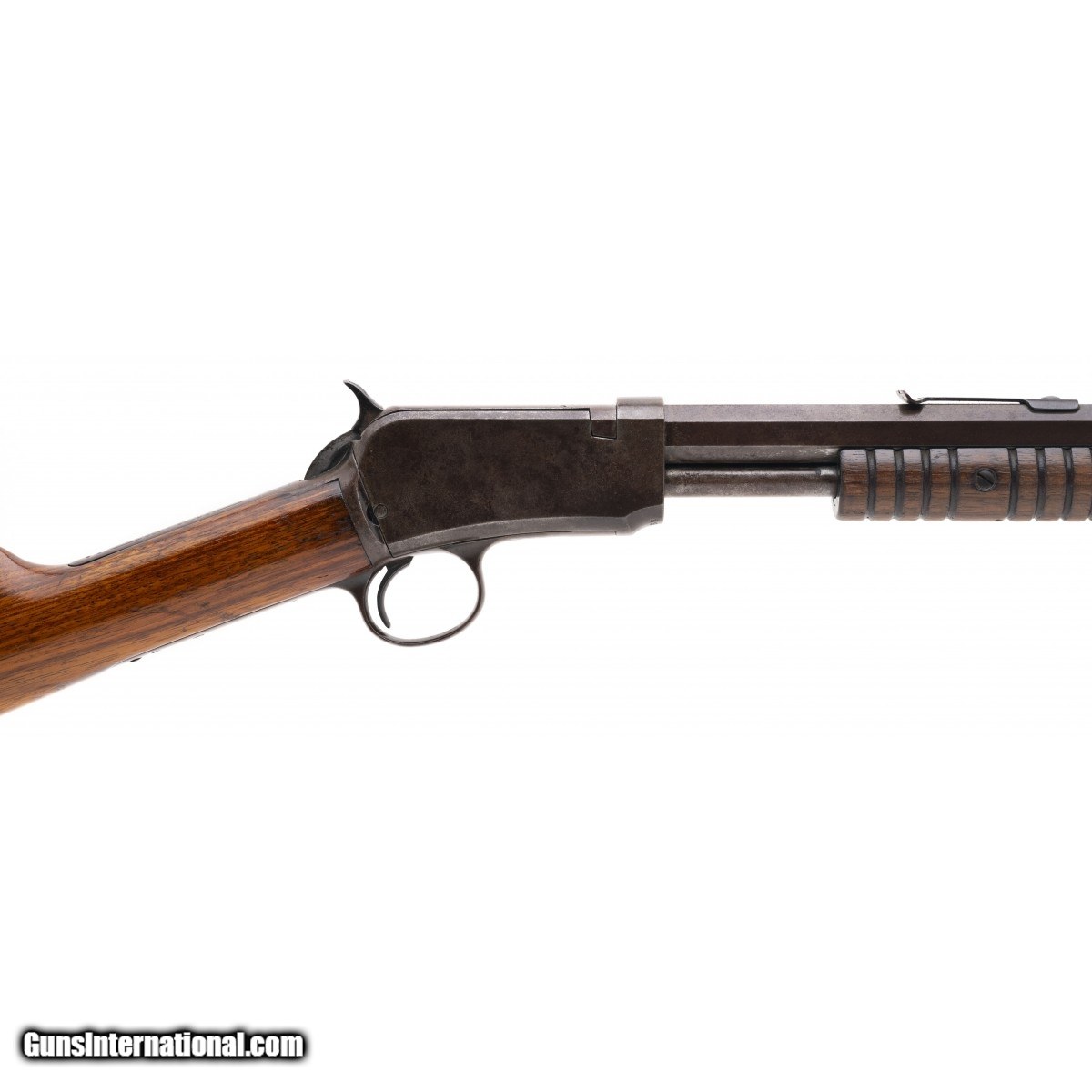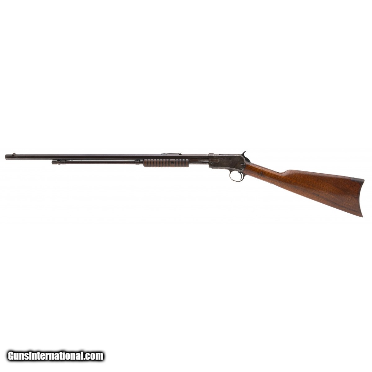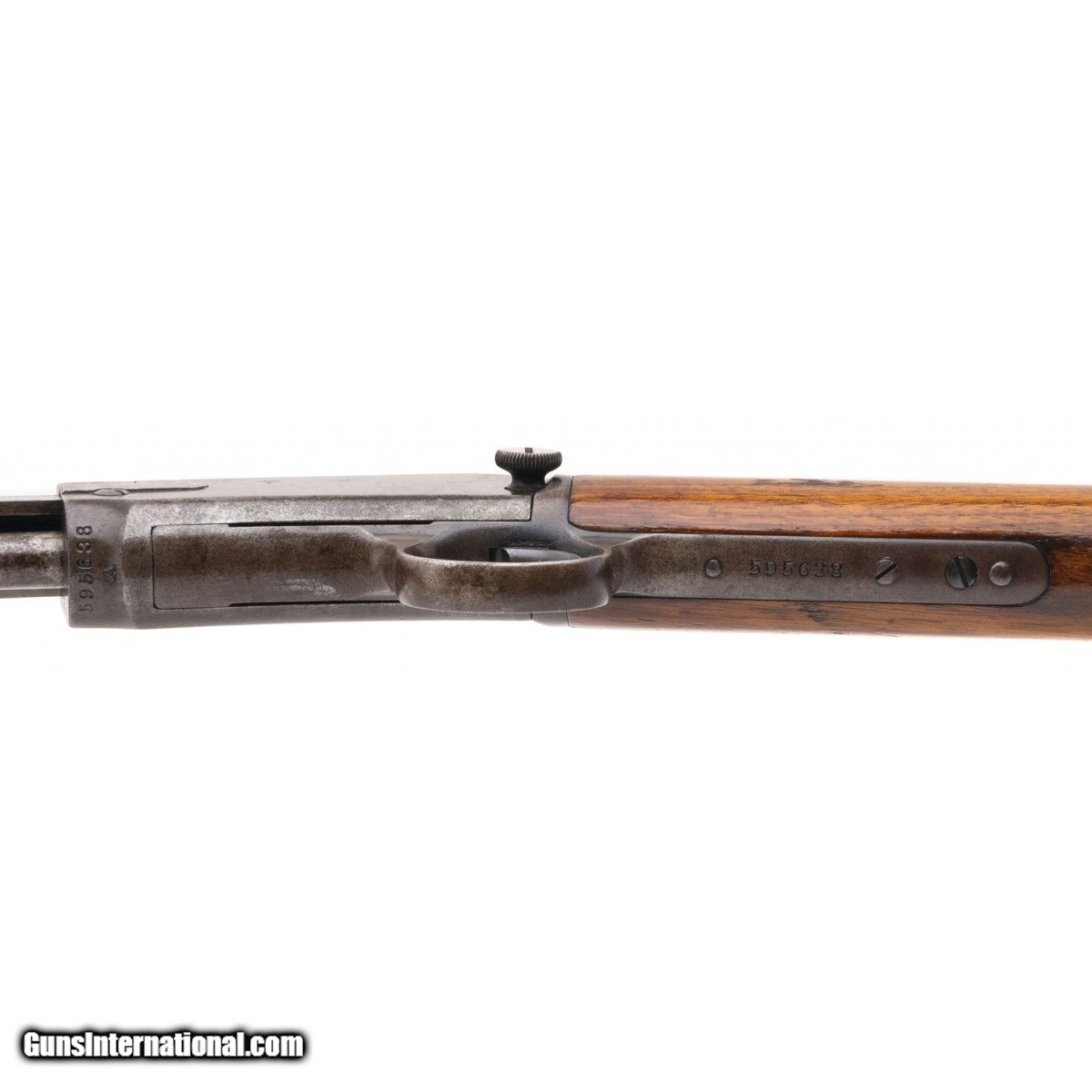 Description: " SN:595638. Made in 1916, .22 WRF, with a 24"" barrel. Bore is very good. Pre-war pump action rifle. Has a brown patina. Wood stock has been refinished and is in good condition. Overall in good condition. SOLD Curio/Relic: Yes |